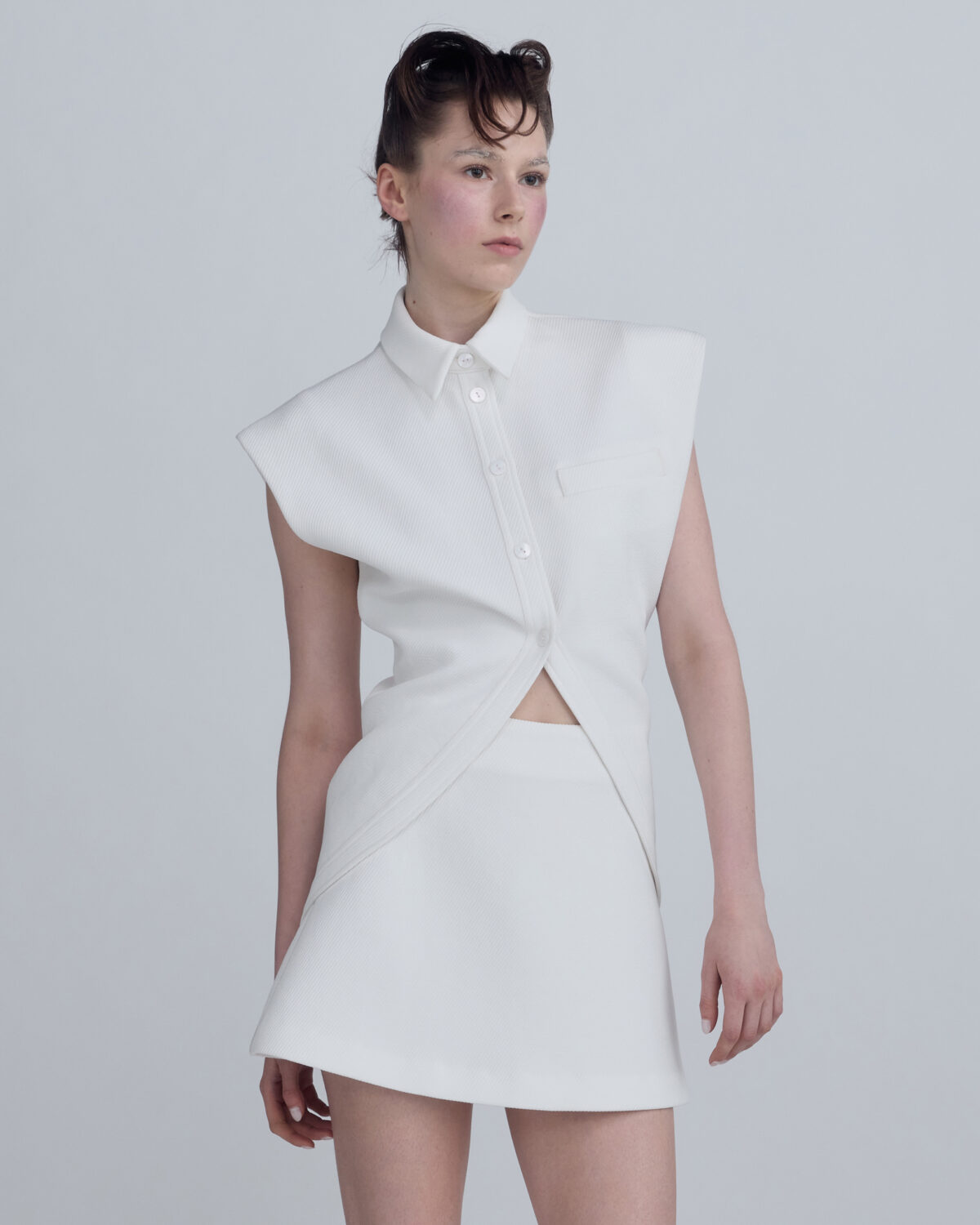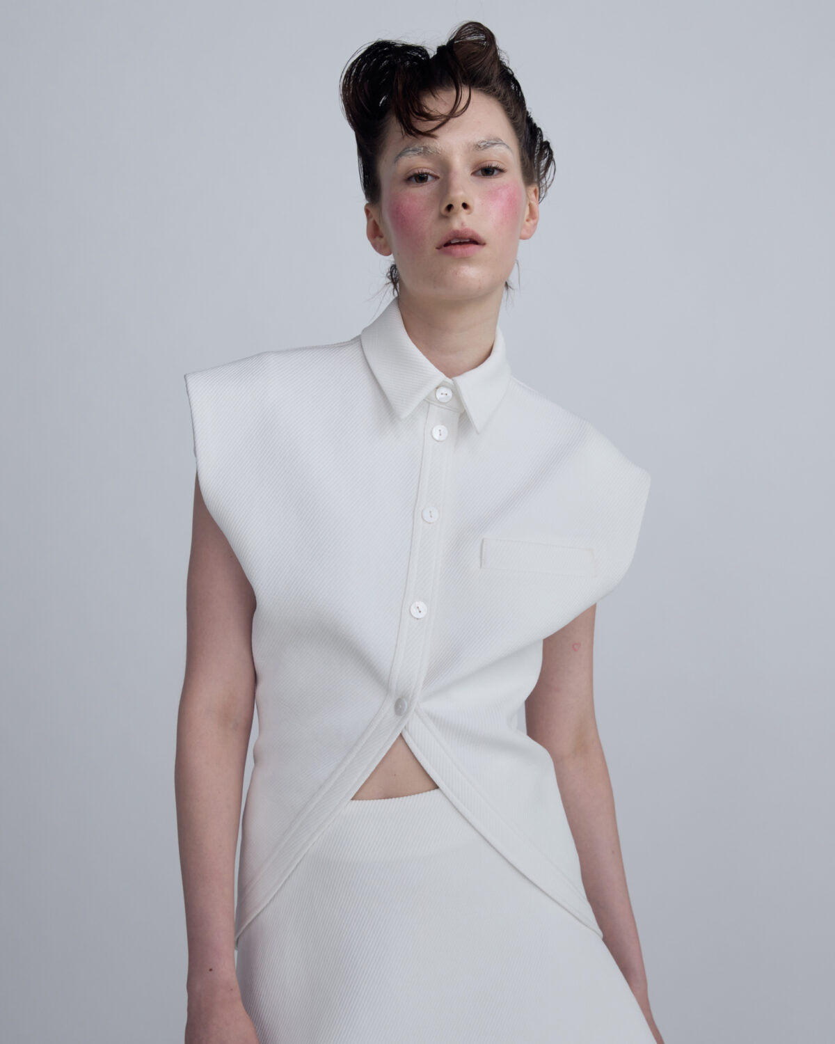 NEWVICKTEERUT Sleeveless Shirt with Crystal Buttons เสื้อเชิ้ต แขนกุด ตกแต่งกระดุมคริสตัล