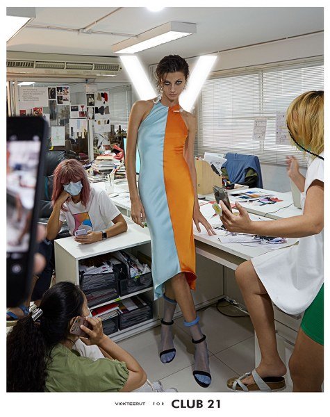 Defying convention, the exclusive collaboration between Vickteerut and Club 21 distills the brand’s modern, innovative DNA through a lens of timeless sophistication. Designed for the urban woman with an instinct for what’s next, the collection fuses refined craftsmanship with cutting-edge techniques. Architectural pleats, pearl-traced cutwork, sculptural draping, and precision tailoring echo classic artistry, while bold fabric splicing and laser-cut graphics inject a strikingly modern edge—where tradition meets the future of fashion.