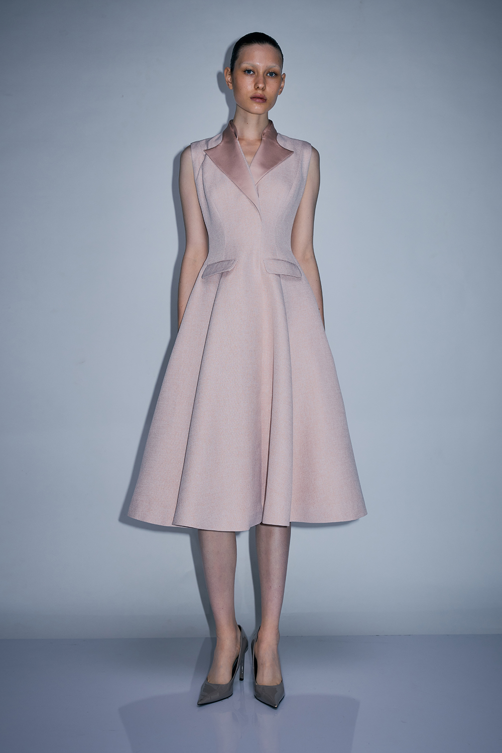 NEWVICKTEERUT Suit Collar Sleeveless Flare Dress เดรสแขนกุด ปกสูท ทรงบาน