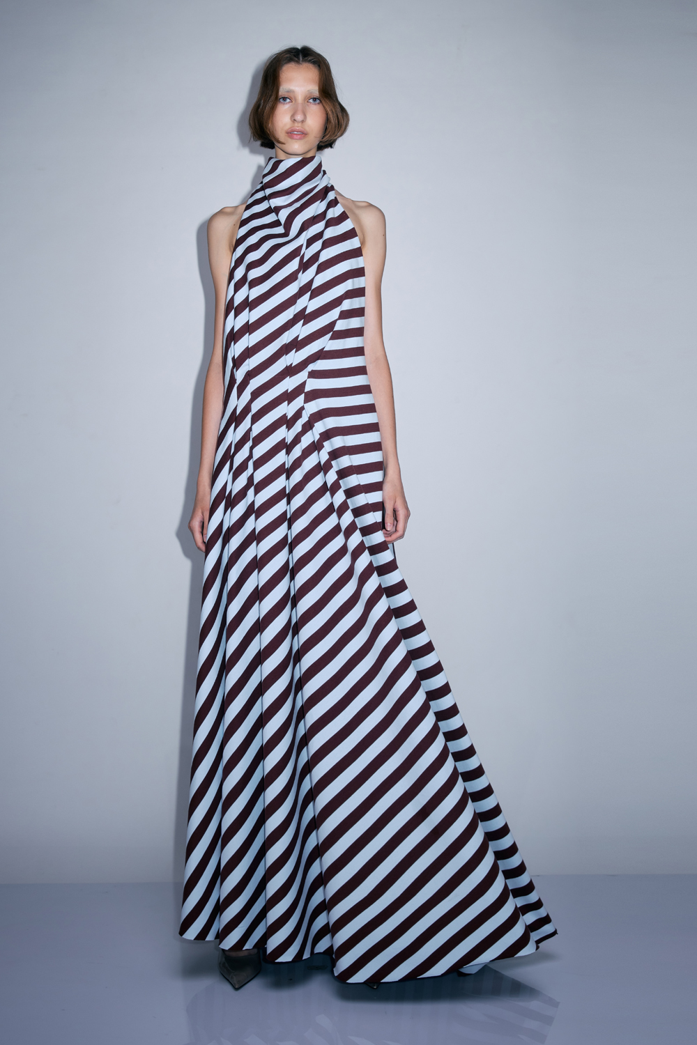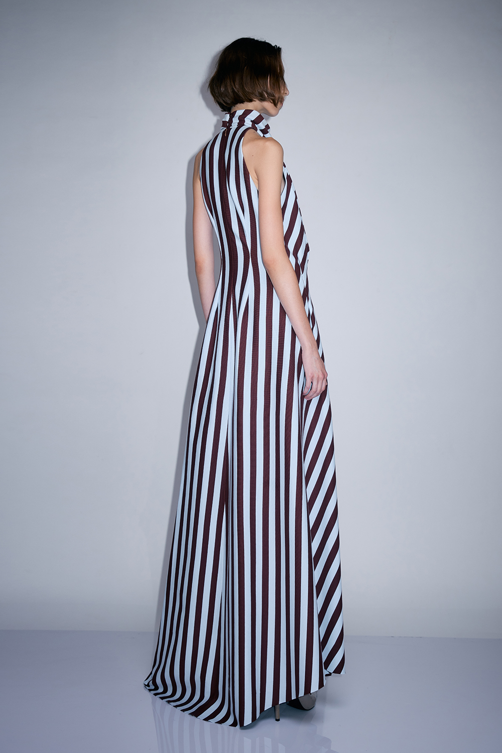 NEWVICKTEERUT Sleeveless Draped Striped Gown เดรสแขนกุด ลายทาง จับเดรป