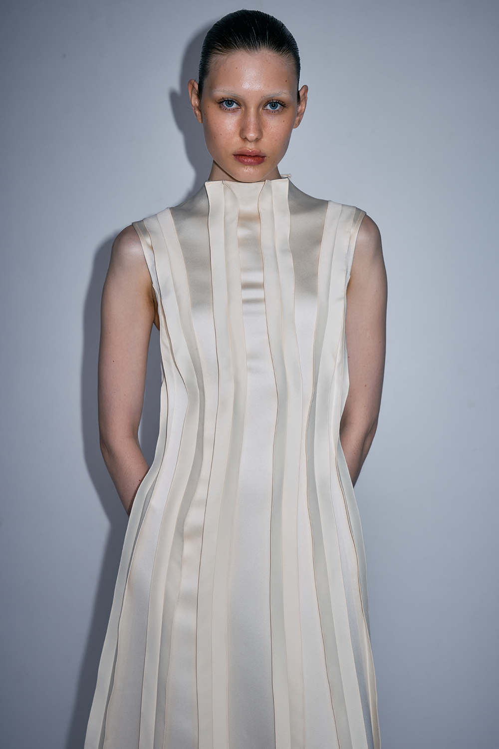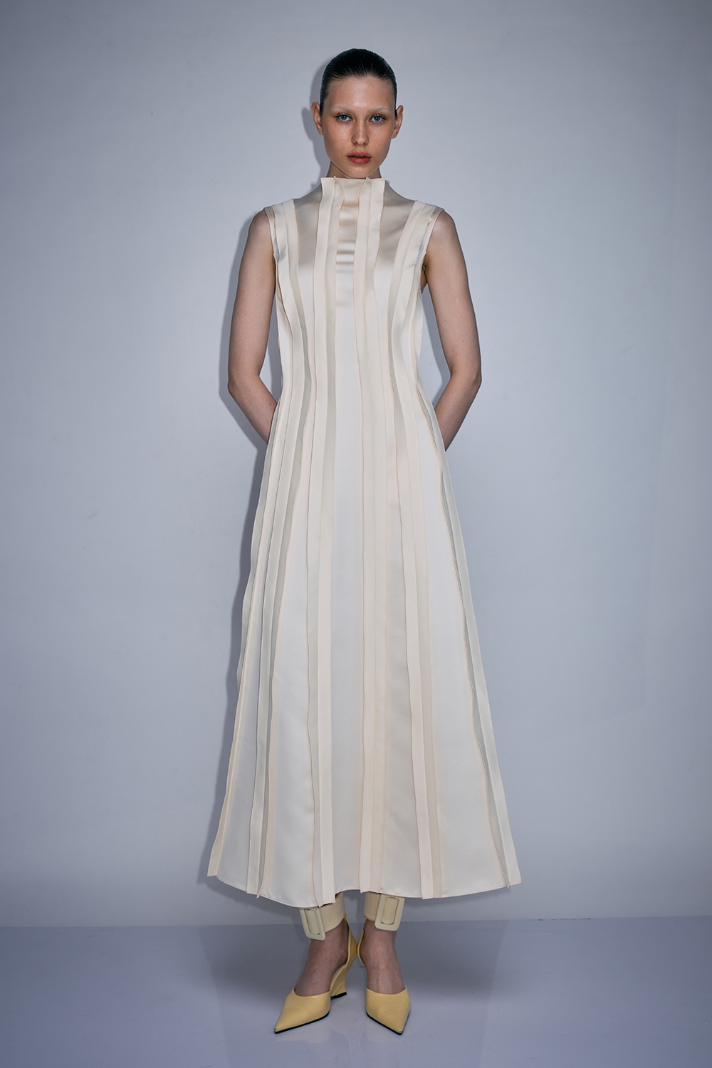 NEWVICKTEERUT Oversized Pointed Collar Midi Dress เดรสปกแหลม แขนกุด ตกแต่งดีเทลบุนวม