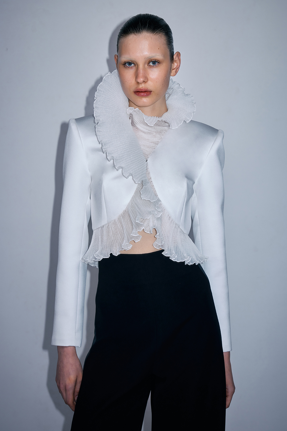 NEWVICKTEERUT Long Sleeve Jacket with Pleated Ruffle เสื้อแจ๊คเก็ต แขนยาว ตกแต่งระบายอัดพลีท