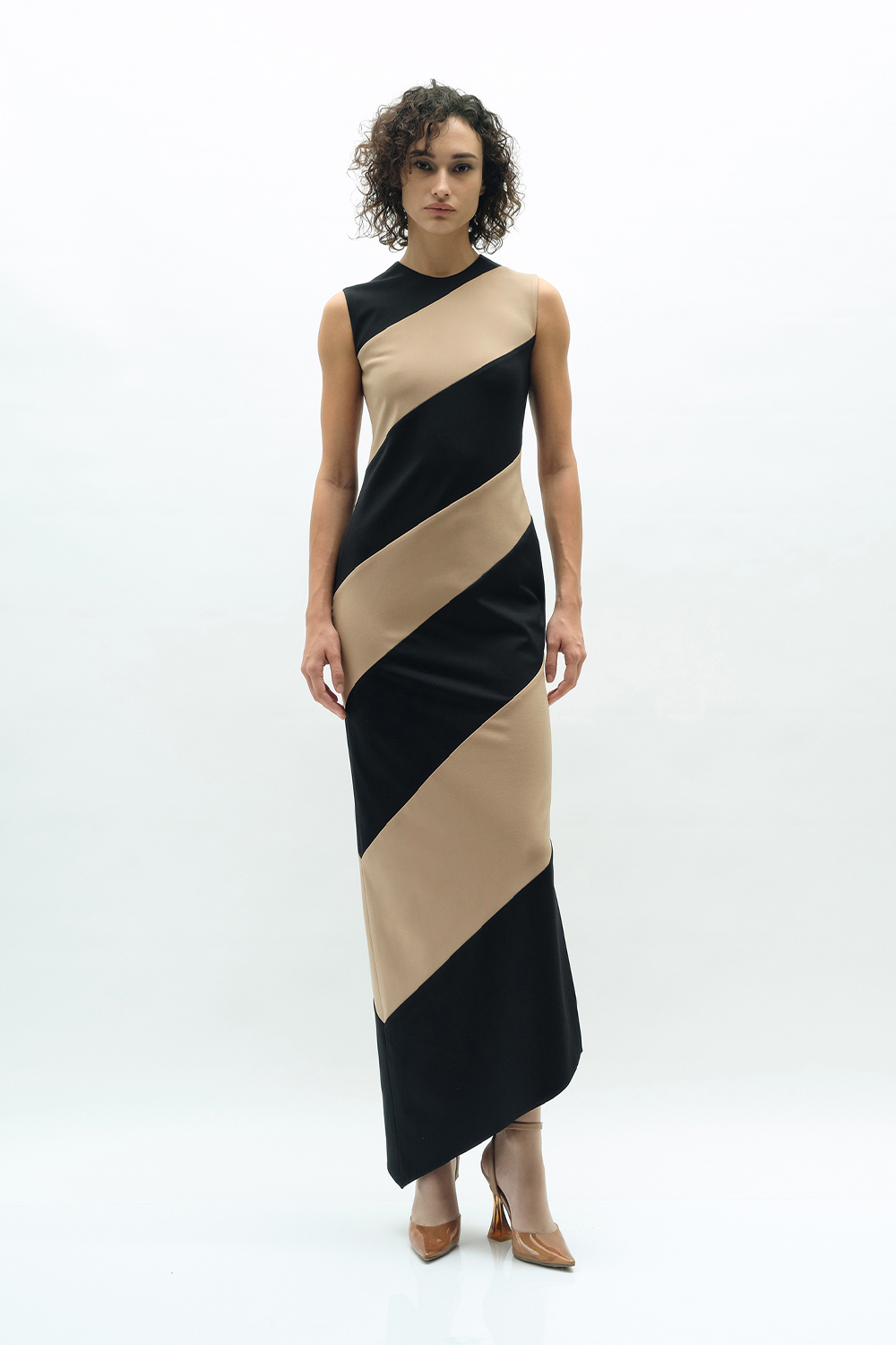 NEWVICKTEERUT Sleeveless Colour Block Sheath Dress เดรสแขนกุด ทรงสอบ ตัดต่อลายผ้า