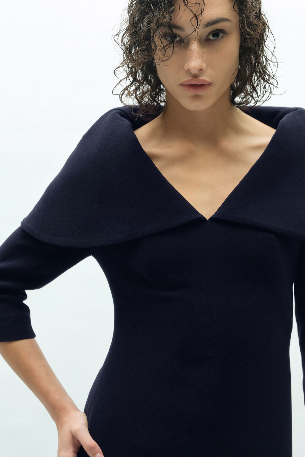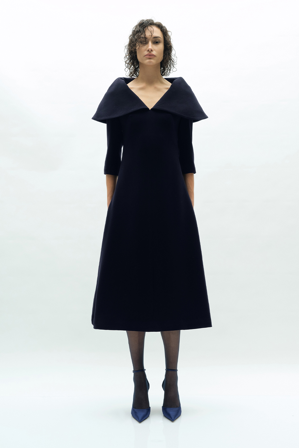 NEWVICKTEERUT Three-Quarter Sleeve Flared Dress with Cape Collar เดรสทรงบาน แขนสามส่วน ปกเคป
