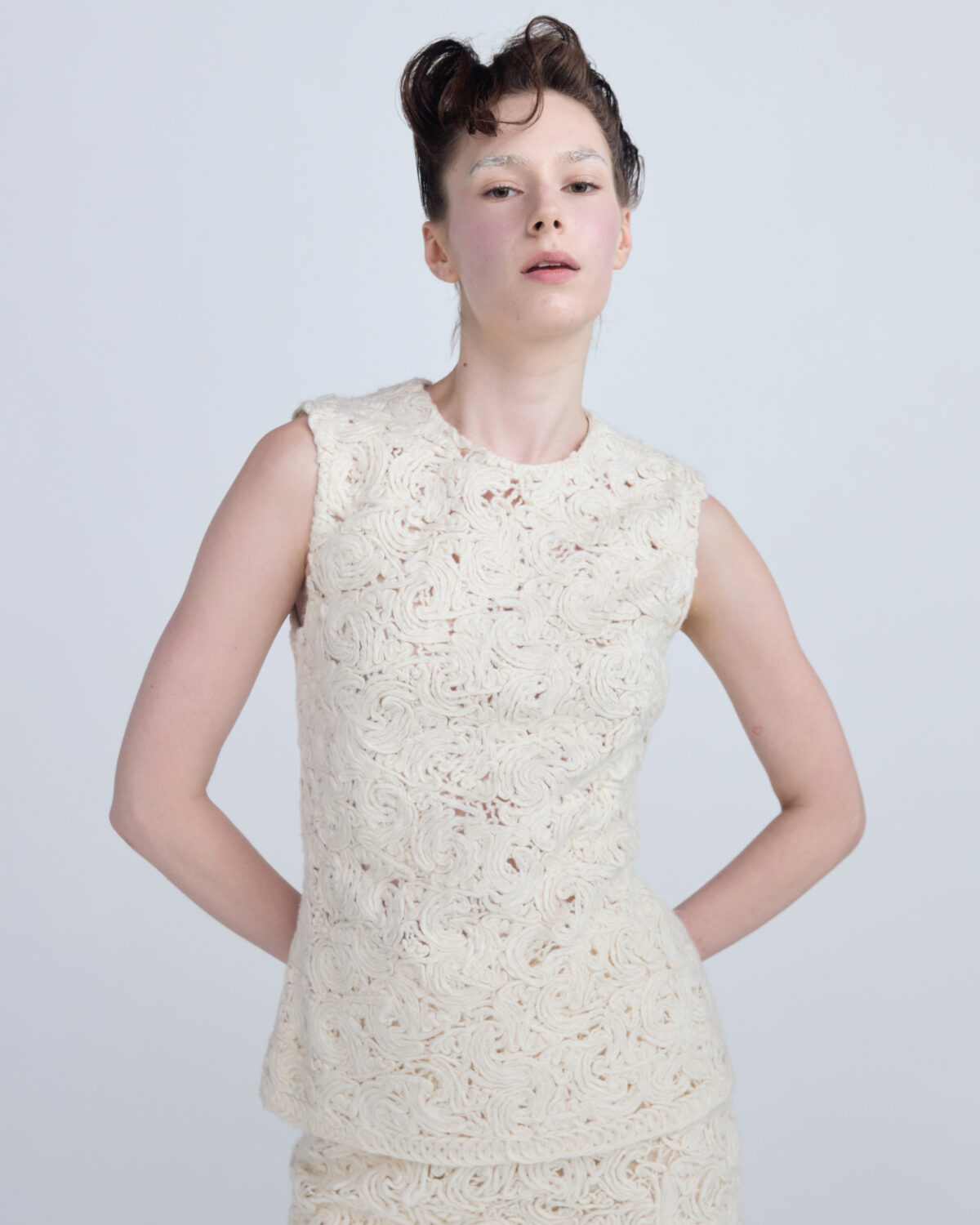 NEWSALEVICKTEERUT Sleeveless Ruffle-Neck Pleated Blouse เสื้ออัดพลีท แขนกุด คอระบาย