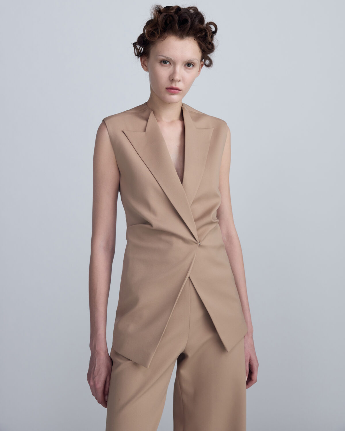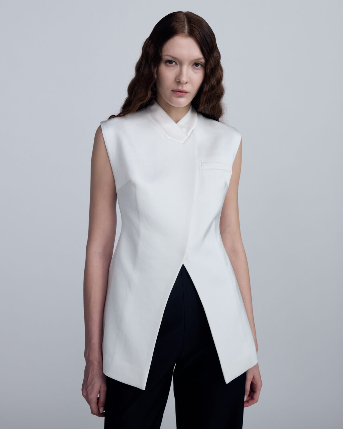 NEWSALEVICKTEERUT Sleeveless Peak-Lapel Jacket with Open Placket เสื้อแจ๊คเก็ต แขนกุด ปกสูท สาบแยก