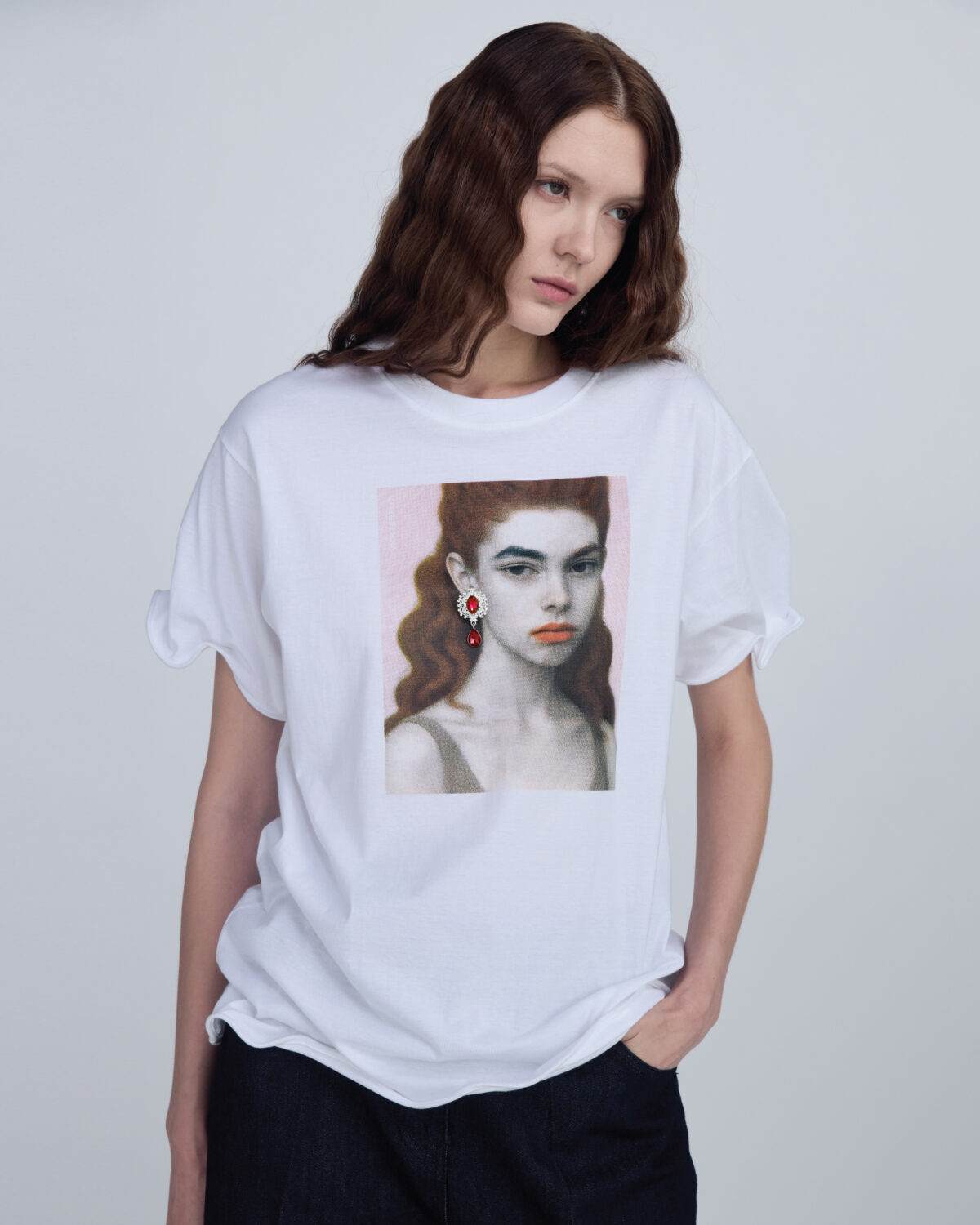 NEWSALEVICKTEERUT Printed T-Shirt with Boned Hem เสื้อยืด พิมพ์ลาย ดามโครงที่ชาย