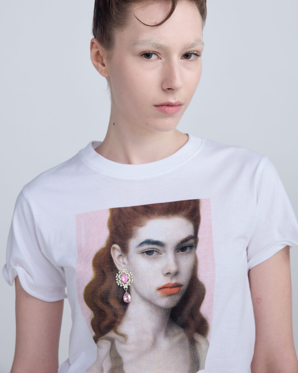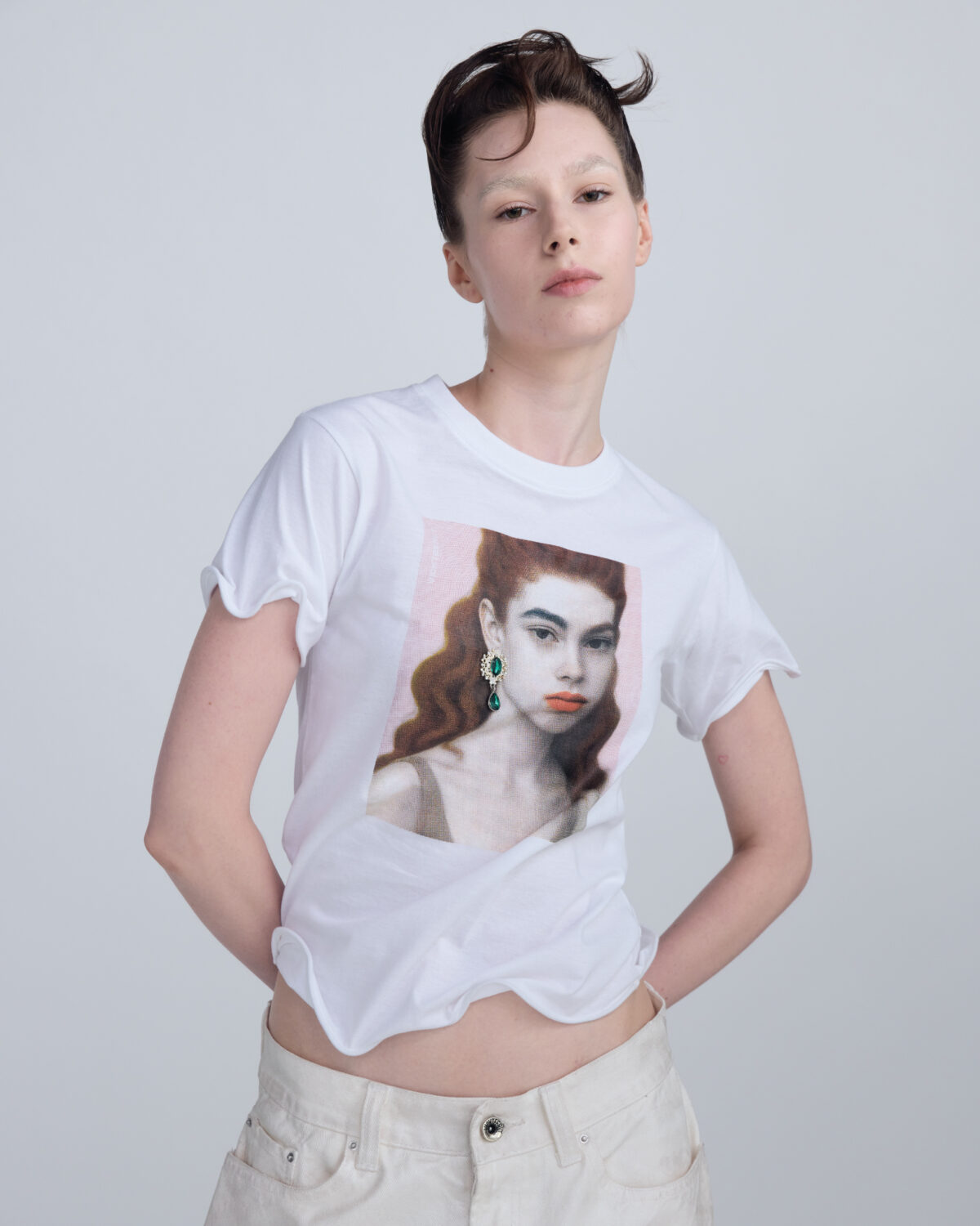 NEWSALEVICKTEERUT Printed T-Shirt with Boned Hem เสื้อยืด พิมพ์ลาย ดามโครงที่ชาย