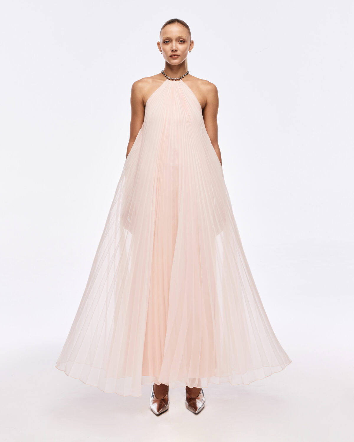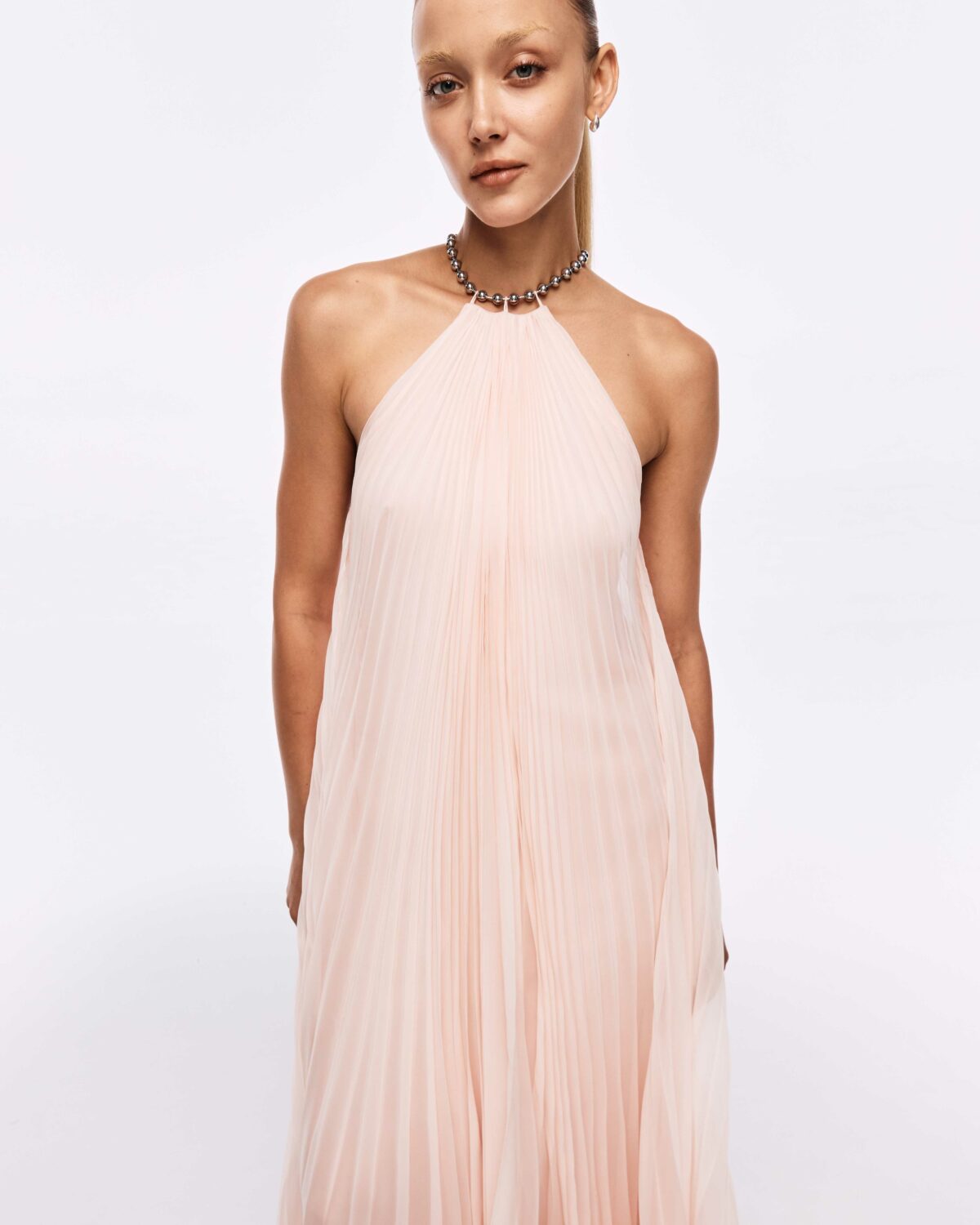 SALEVICKTEERUT Halter Neck Pleated Dress with Metal Chain Detail เดรสอัดพลีท คล้องคอ ตกแต่งโซ่โลหะ