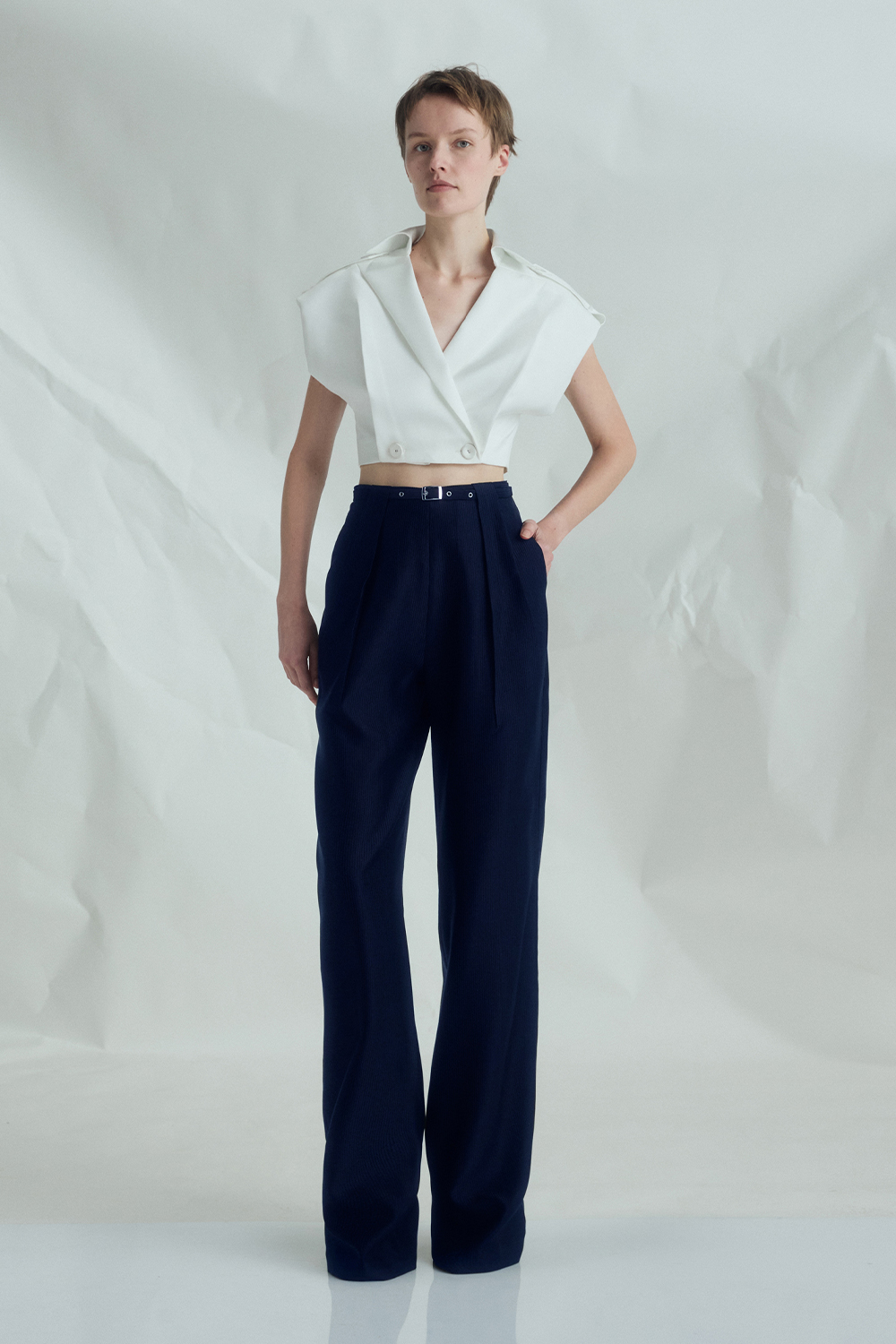 NEWVICKTEERUT Front Pleat Trousers with Belt Detail กางเกงขายาว จีบหน้า ตกแต่งเข็มขัด