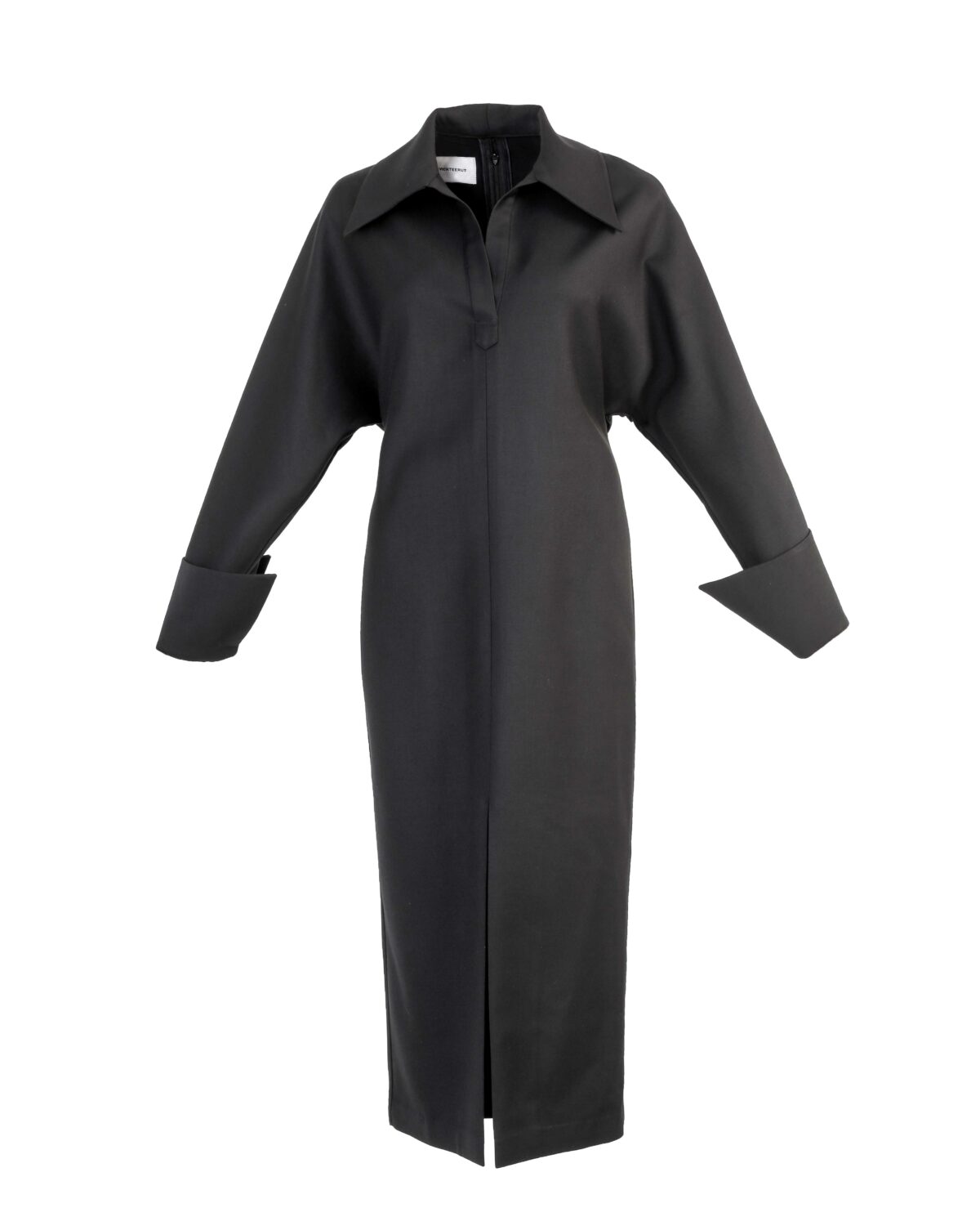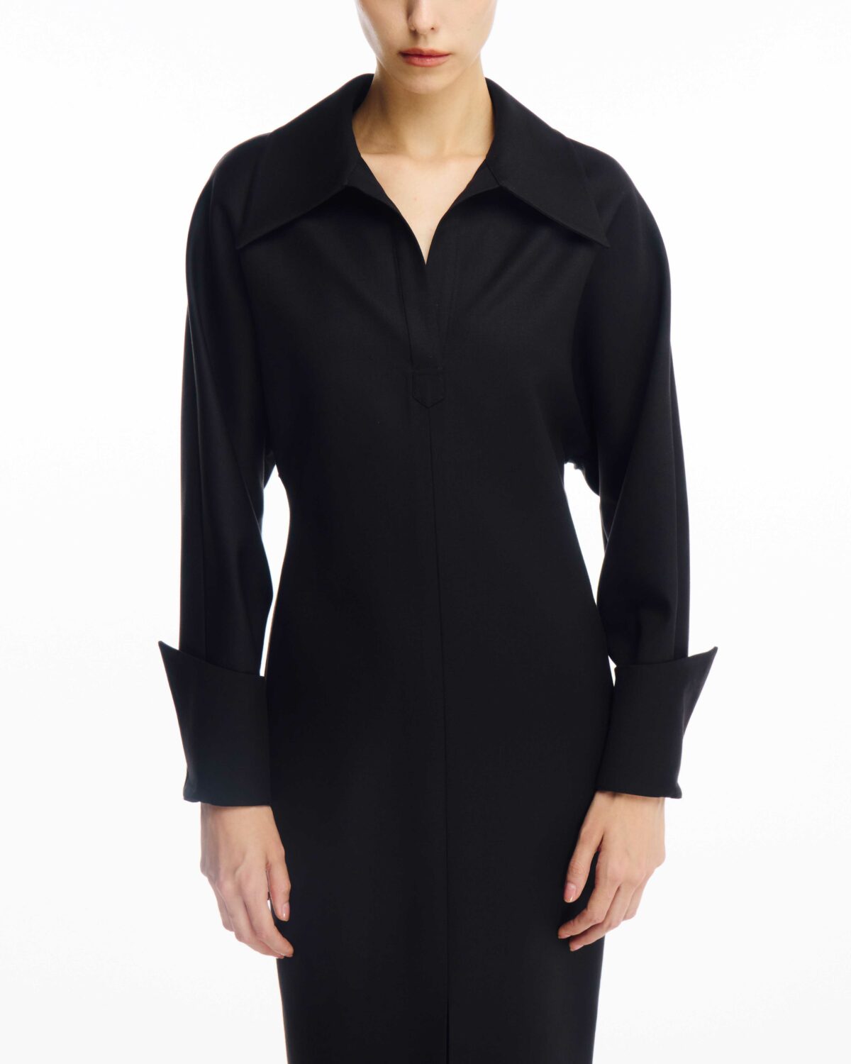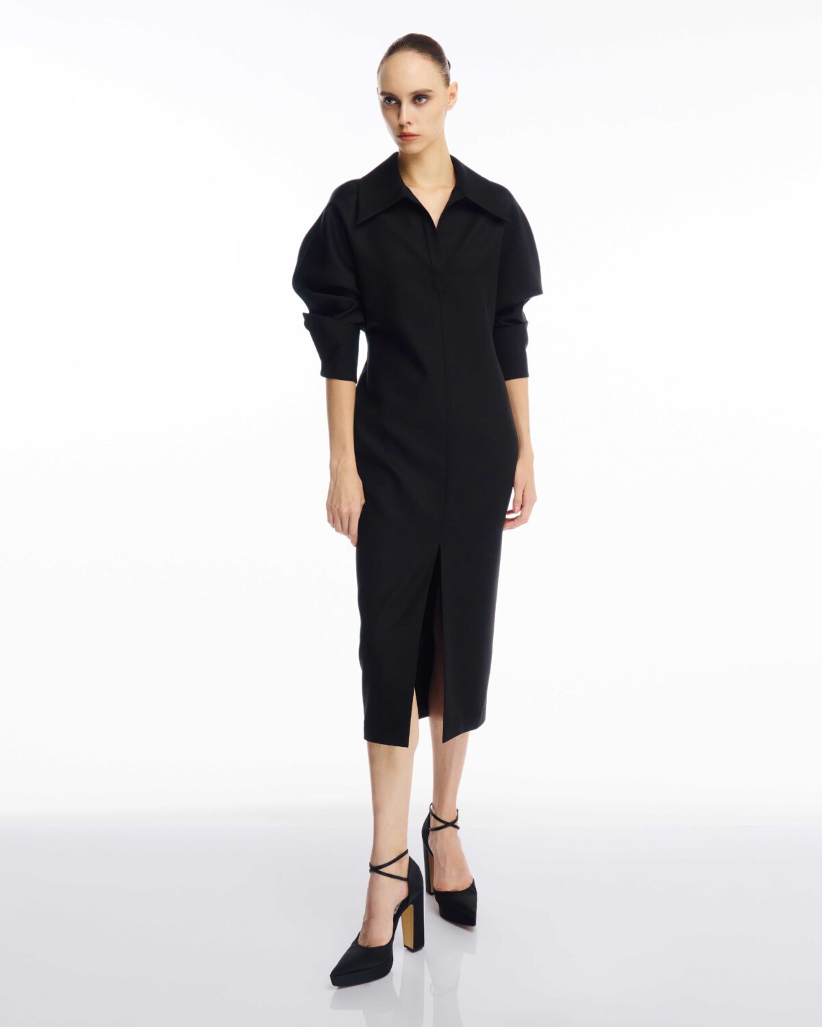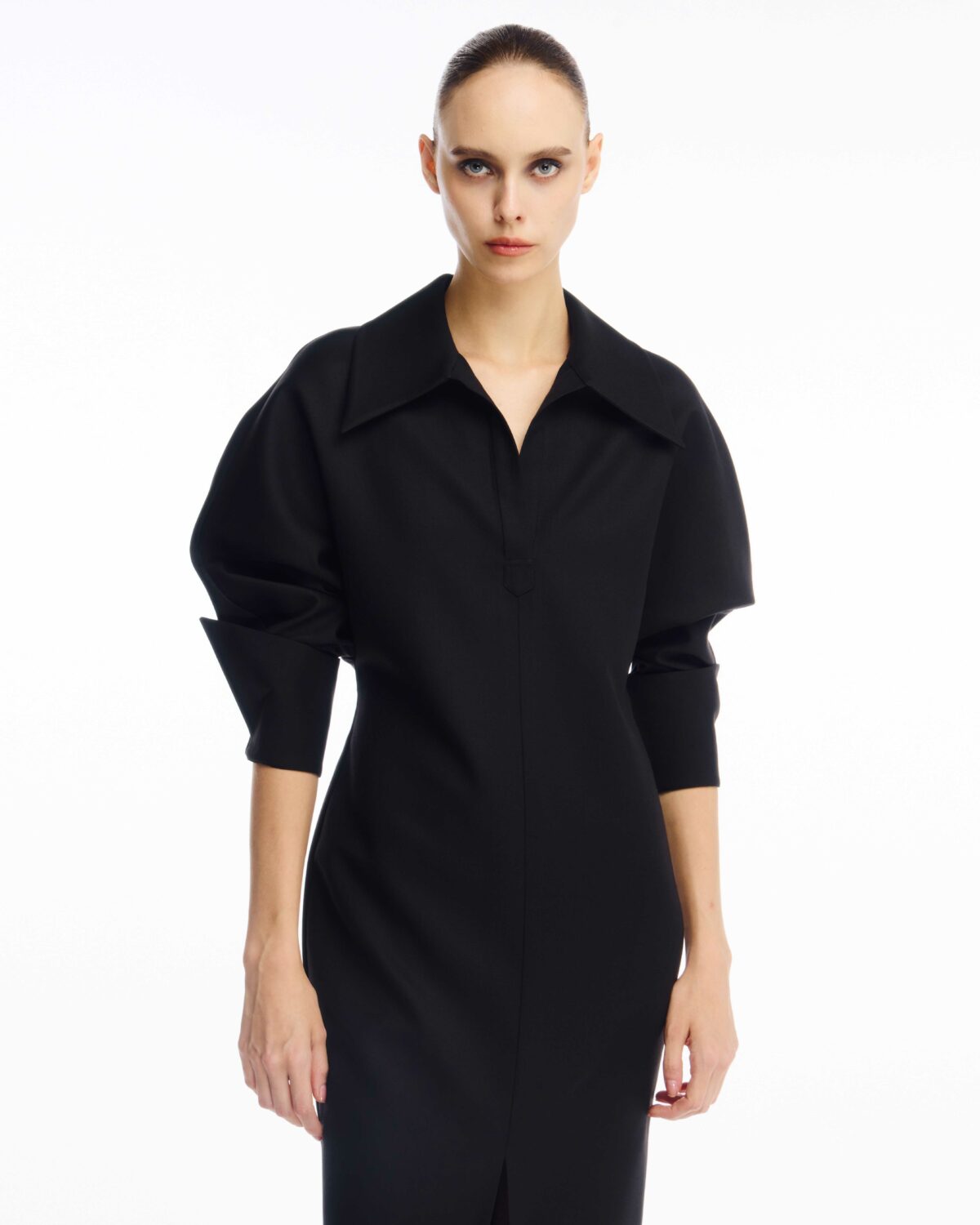 VICKTEERUT Batwing Sleeve Sheath Dress with Double Cuff Detail เดรสเข้ารูป แขนค้างคาว คอปก ปลายแขนเบิ้ล