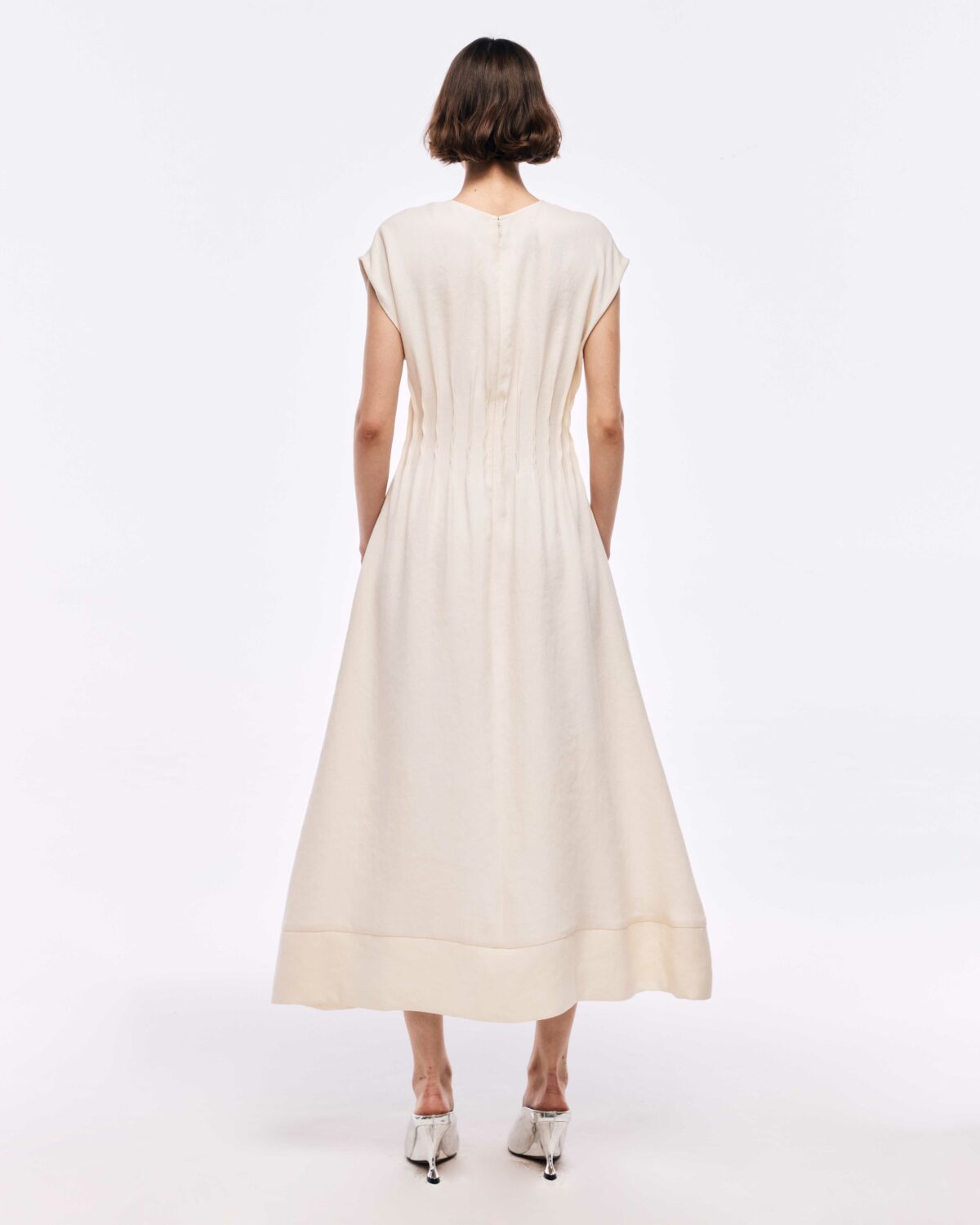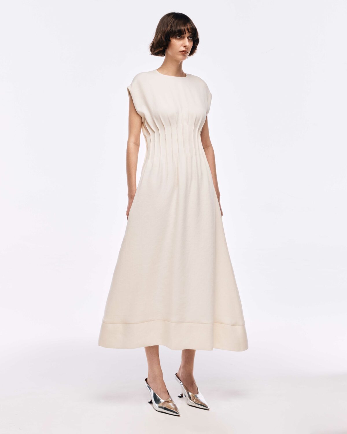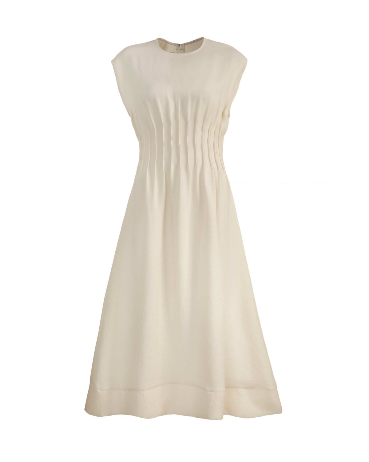VICKTEERUT Cap Sleeve Tuck Pleat Dress เดรสแขนเต่อ ตีเกล็ด ทรงบาน