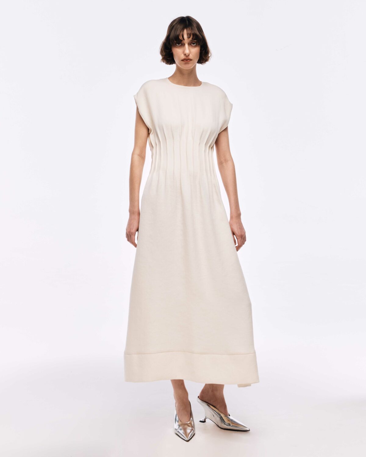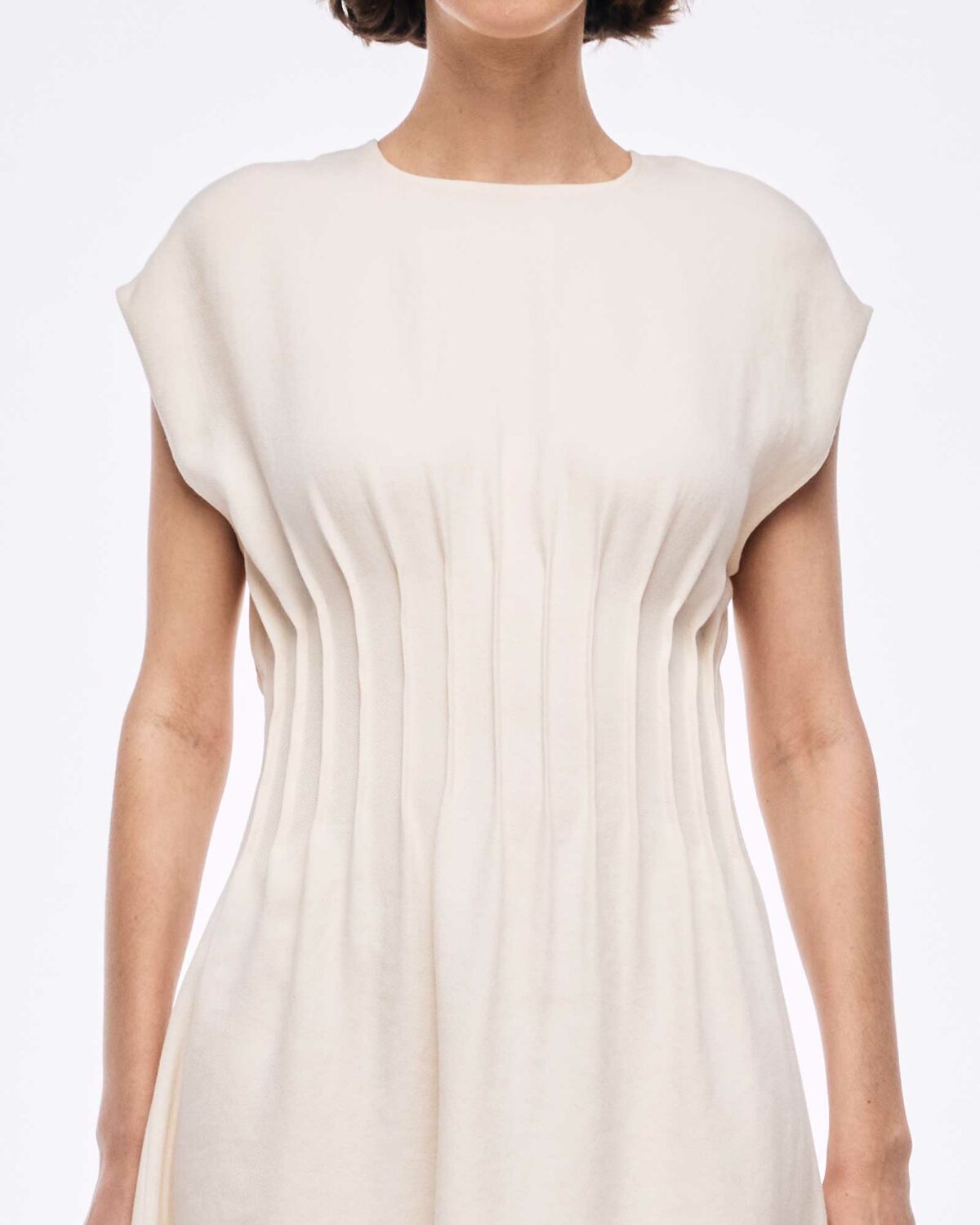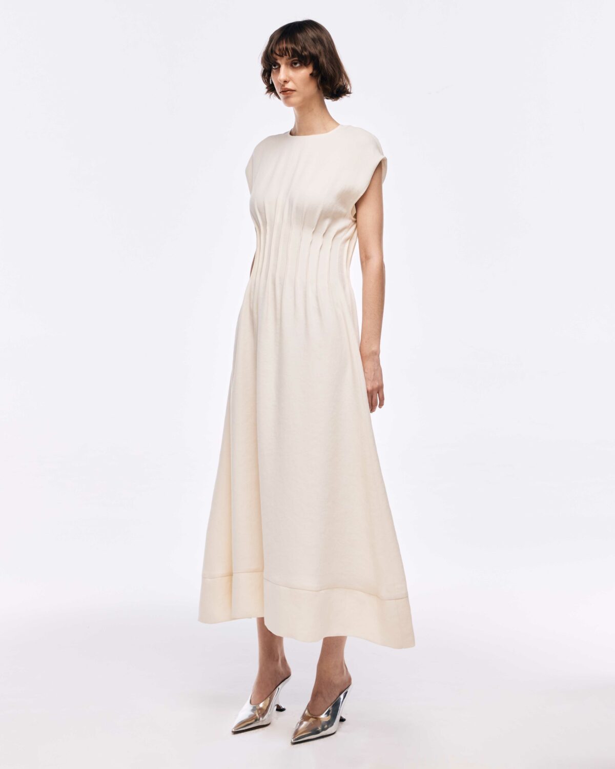 VICKTEERUT Cap Sleeve Tuck Pleat Dress เดรสแขนเต่อ ตีเกล็ด ทรงบาน