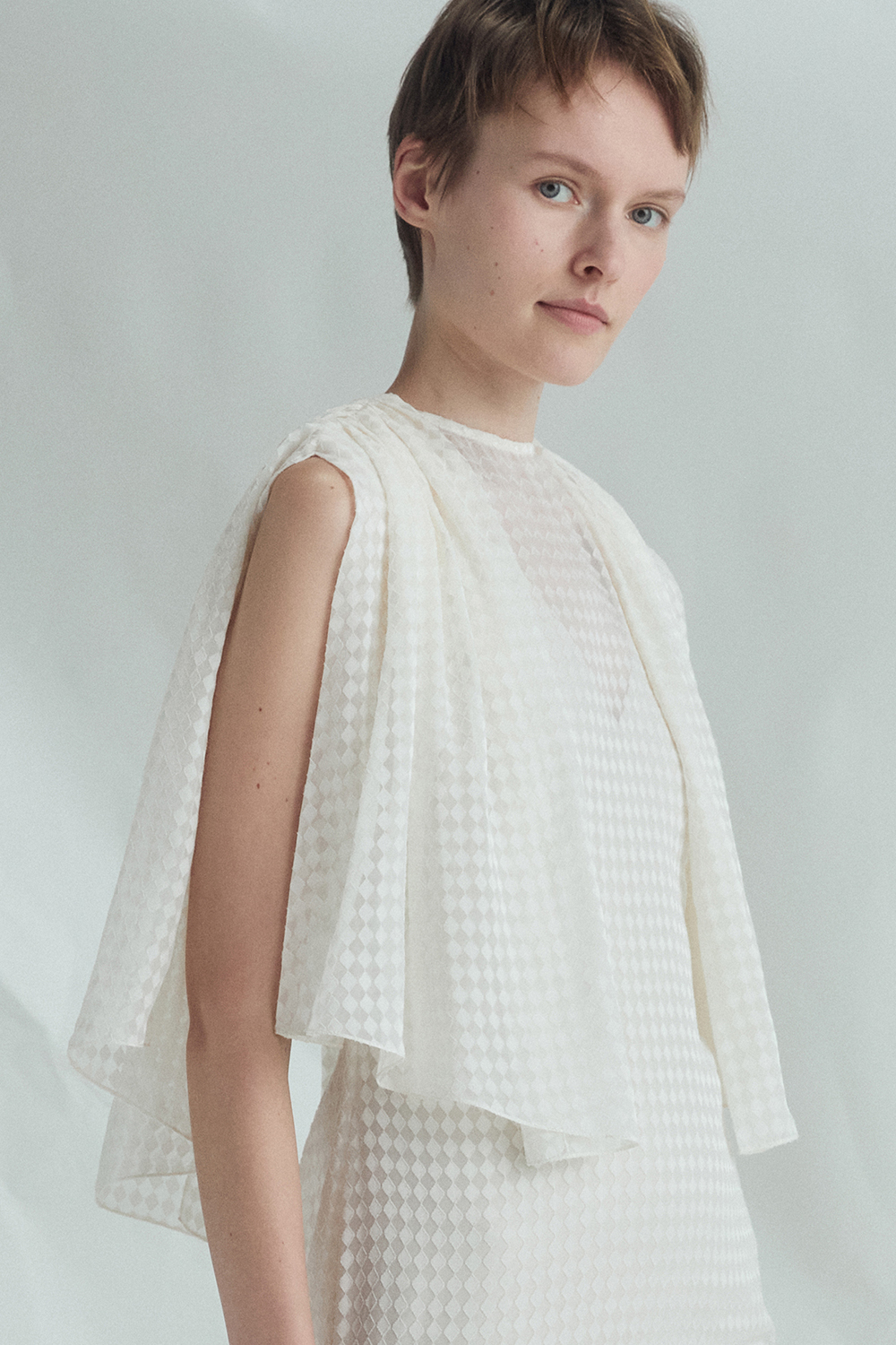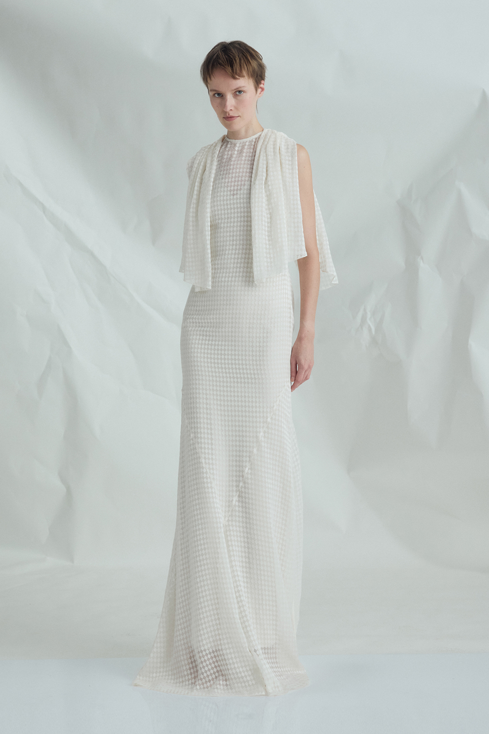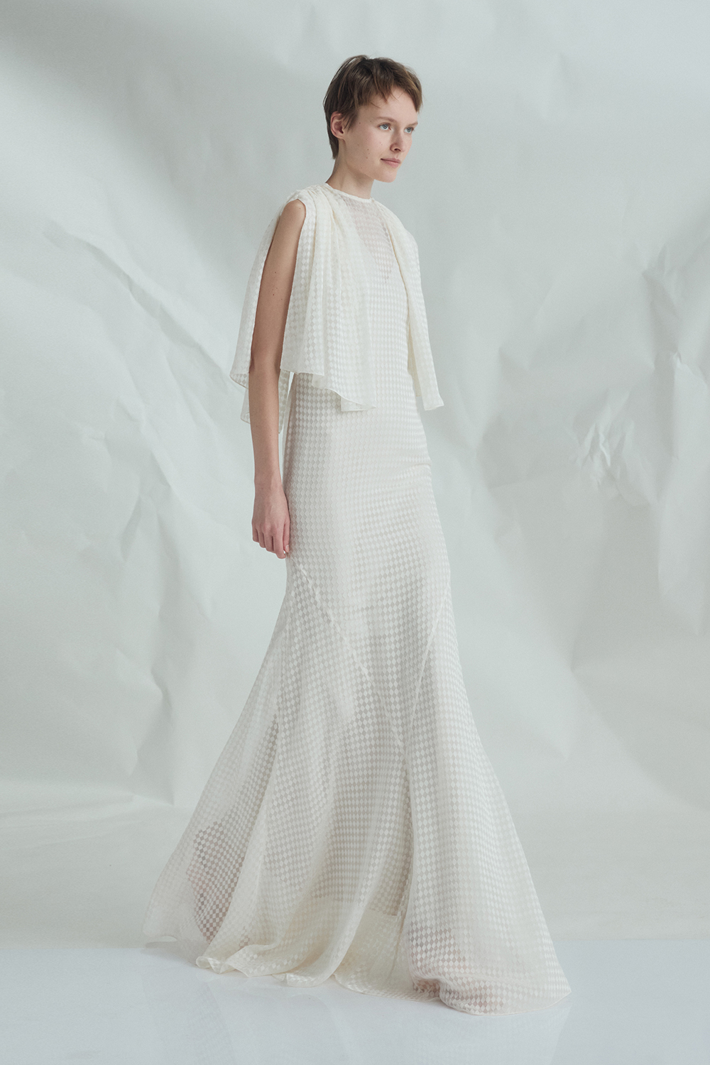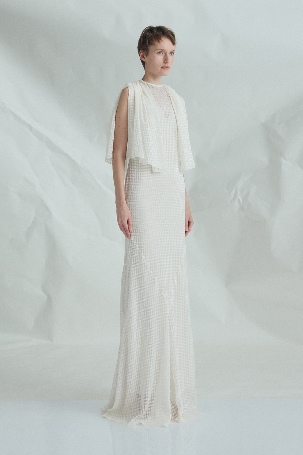 VICKTEERUT Cape-Sleeve Chiffon Burnout Gown เดรสยาว แขนเคป ผ้าชีฟองเบิร์นเอาท์