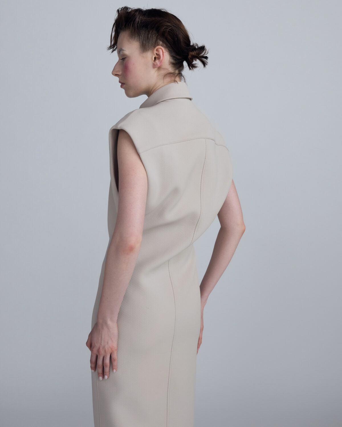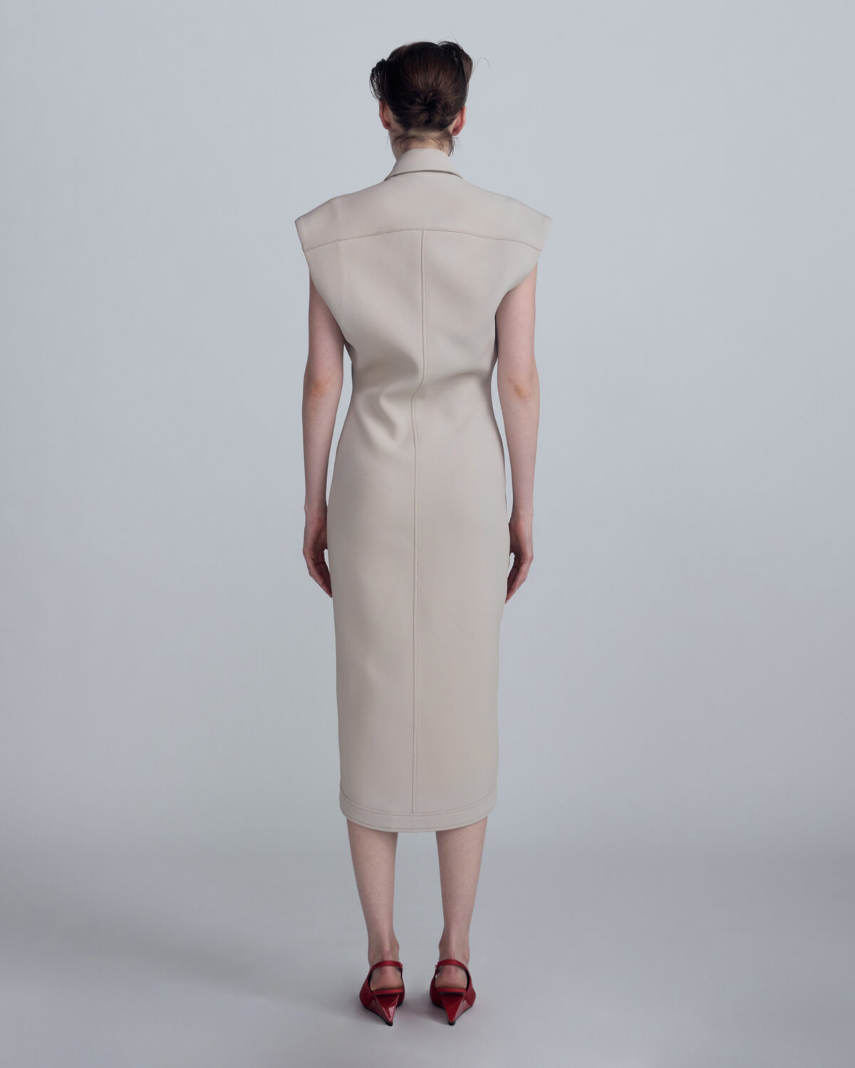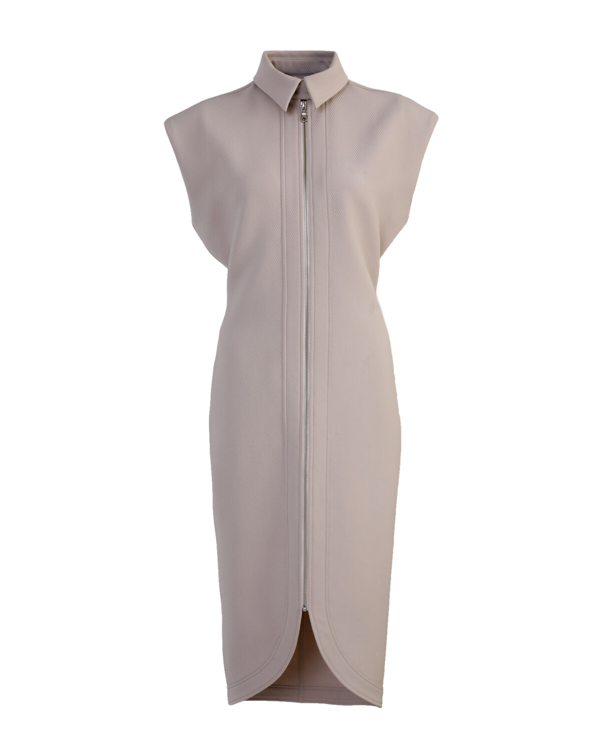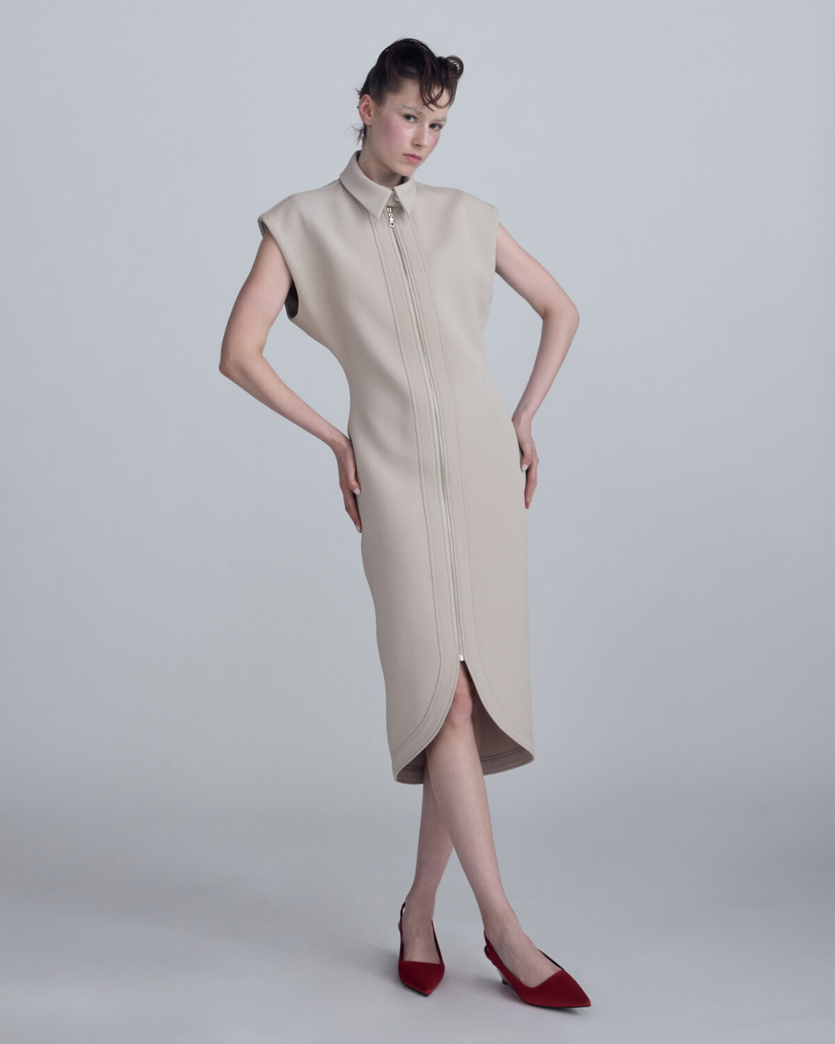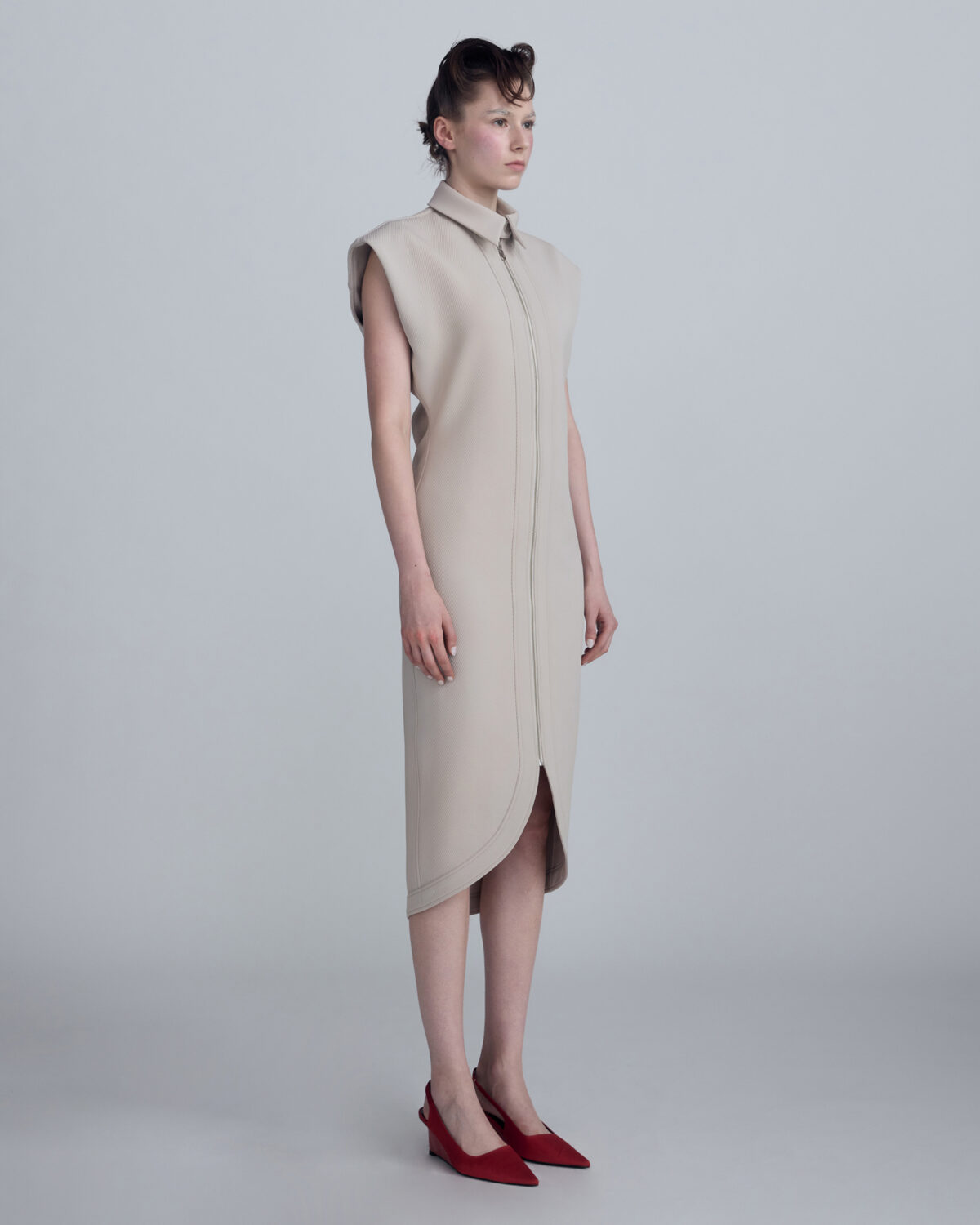VICKTEERUT Capped Sleeve Shirt Collar dress with Front Zip and Split Placket Detail เดรสแขนเต่อ ปกเชิ้ต สาบแยก ตกแต่งซิปหน้า