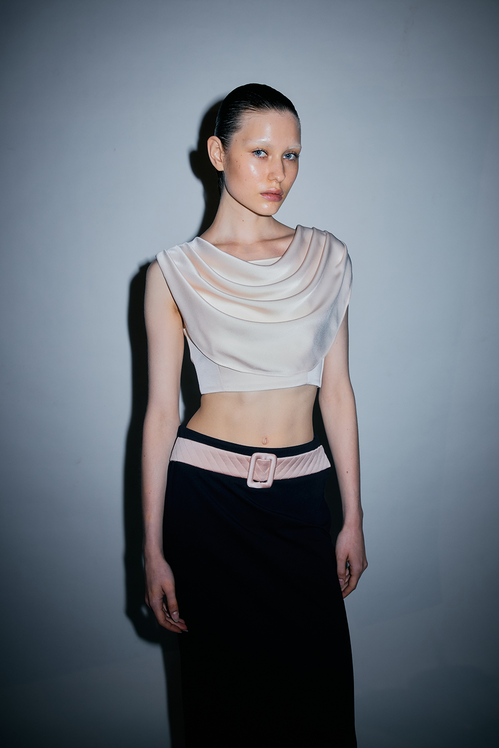 VICKTEERUT Cowl Neck Cropped Blouse เสื้อแขนกุด เสื้อตัวสั้น คอถ่วง