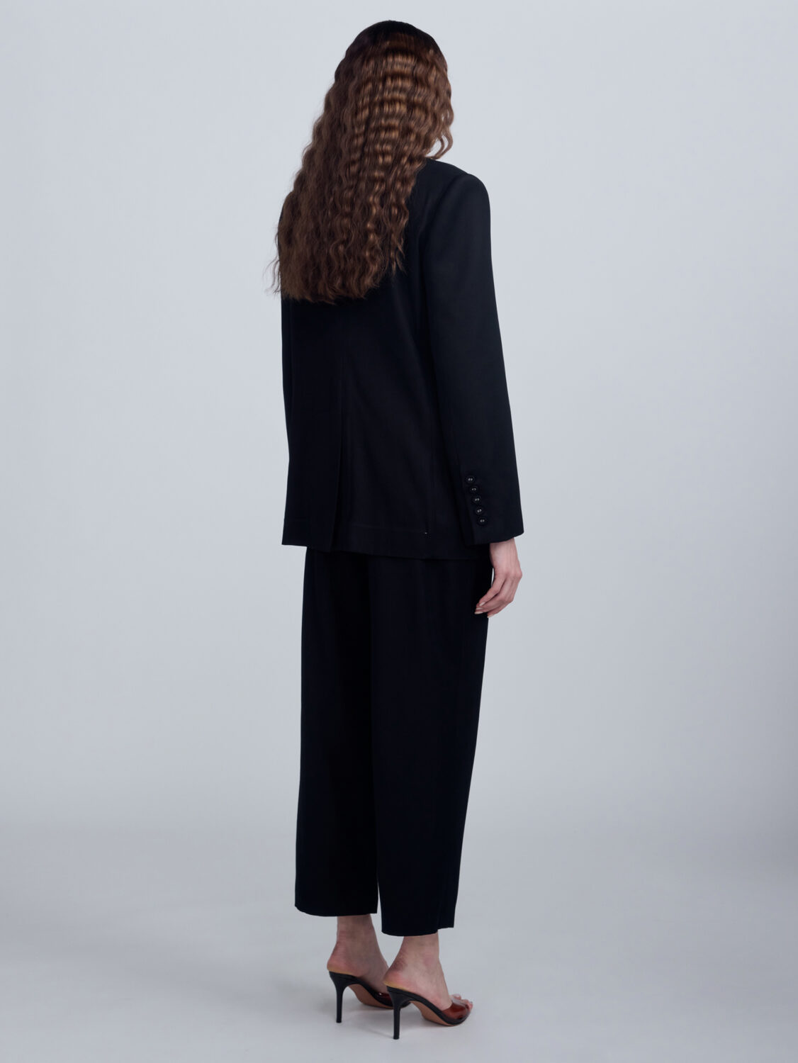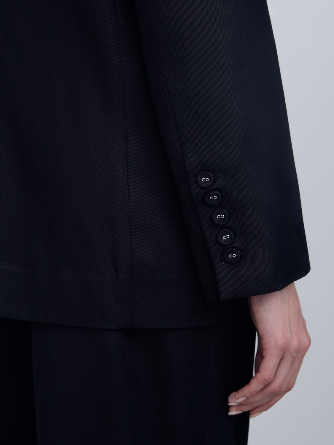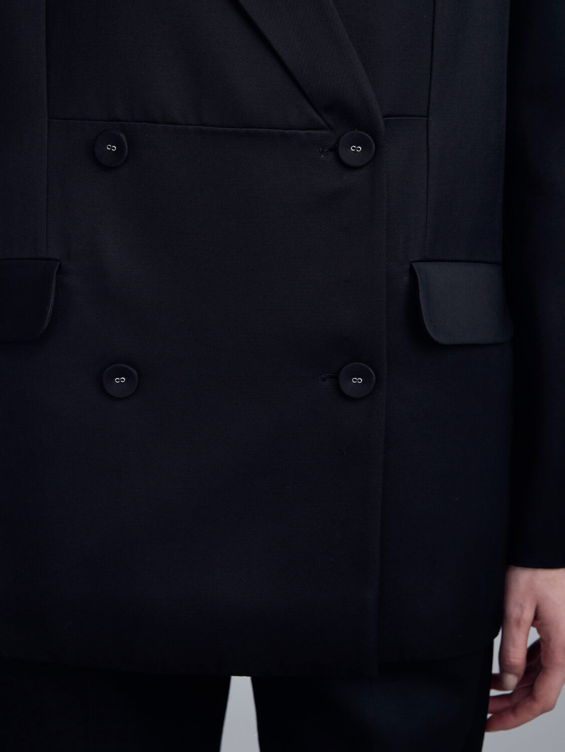 VICKTEERUT Double-Breasted Peak-Lapel Blazer with Detachable Ostrch Feather Pin เบลเซอร์ กระดุมสองแถว พร้อมเข็มกลัดขนนกกระจอกเทศ