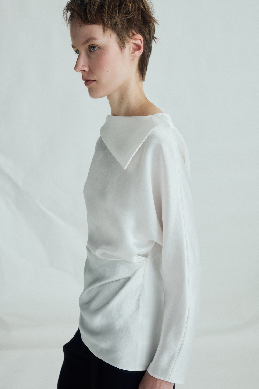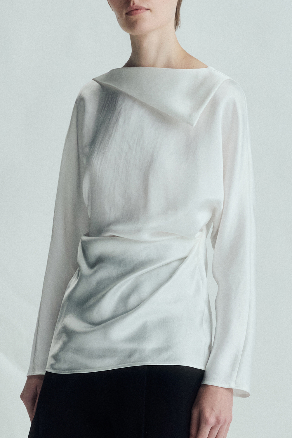 VICKTEERUT Folded-Neckline Long Sleeve Blouse เสื้อแขนยาว ปกพับ จับเดรป