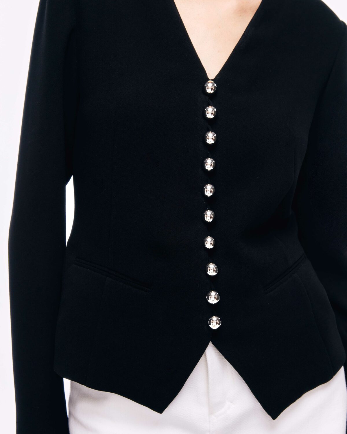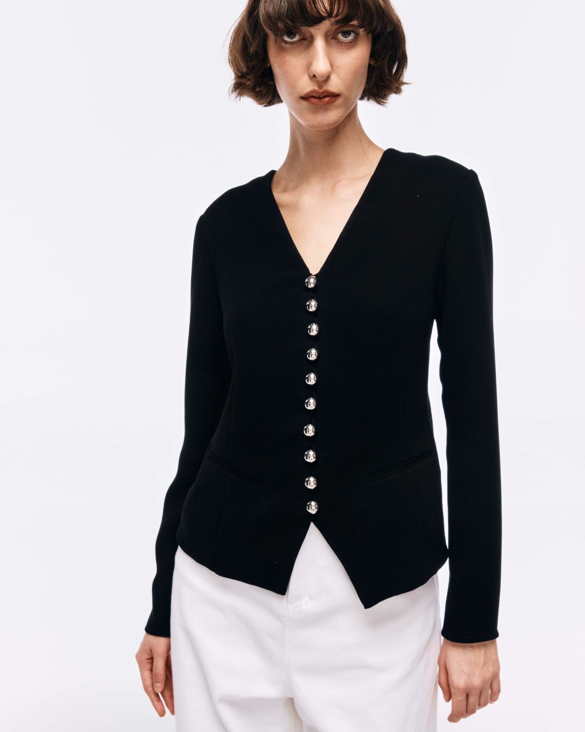 VICKTEERUT Front Button Long Sleeve V Neck Blouse เสื้อแขนยาว คอวี กระดุมหน้า