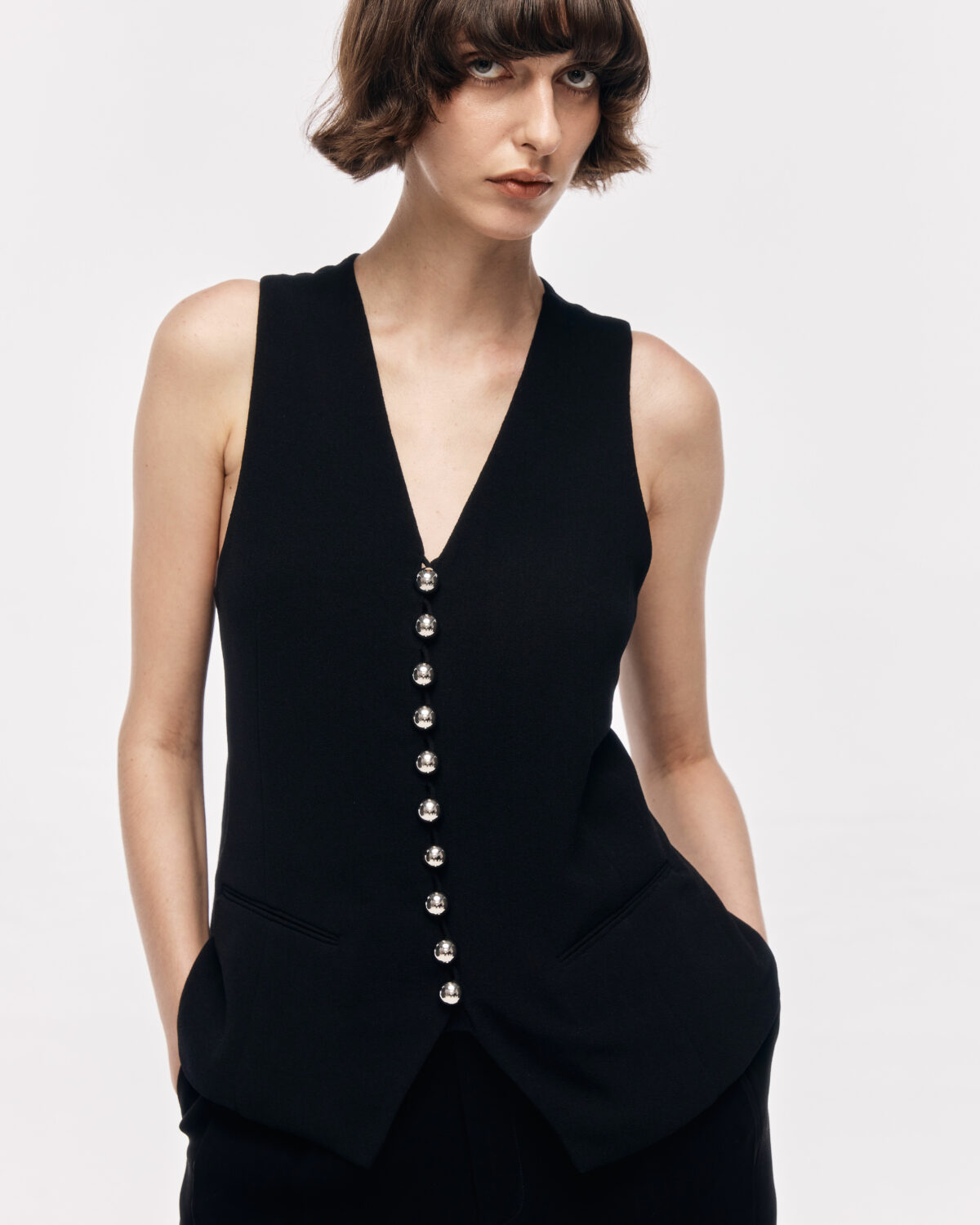 เสื้อกั๊ก ตกแต่ง กระดุมหน้า