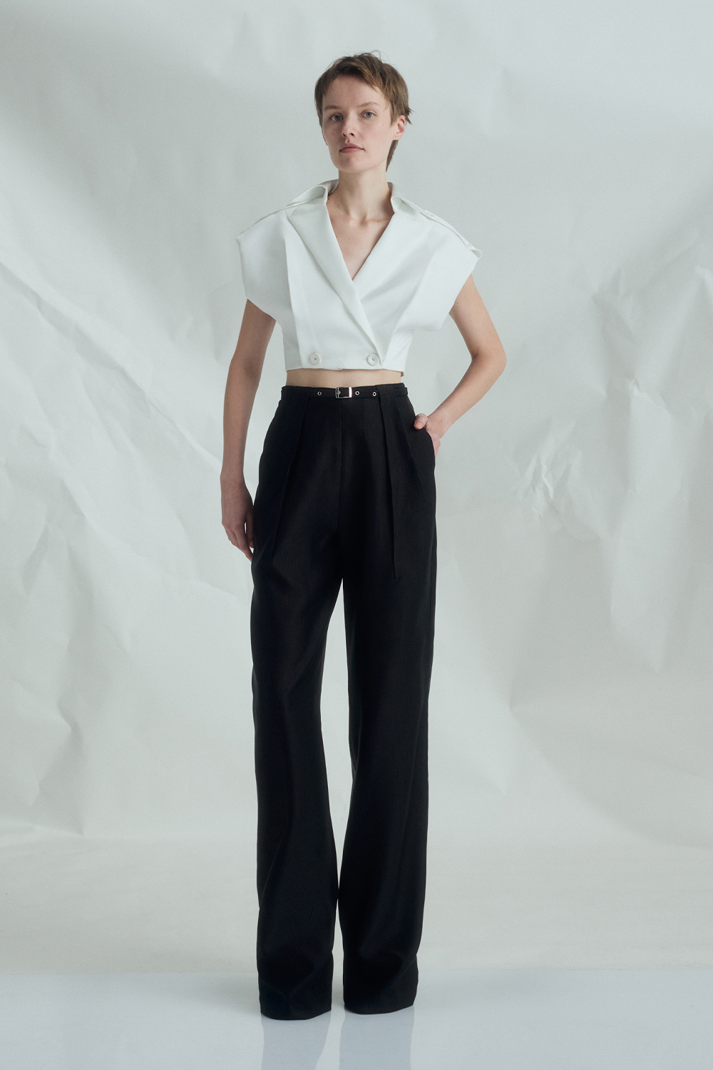 VICKTEERUT Front Pleat Trousers with Belt Detail กางเกงขายาว จีบหน้า ตกแต่งเข็มขัด