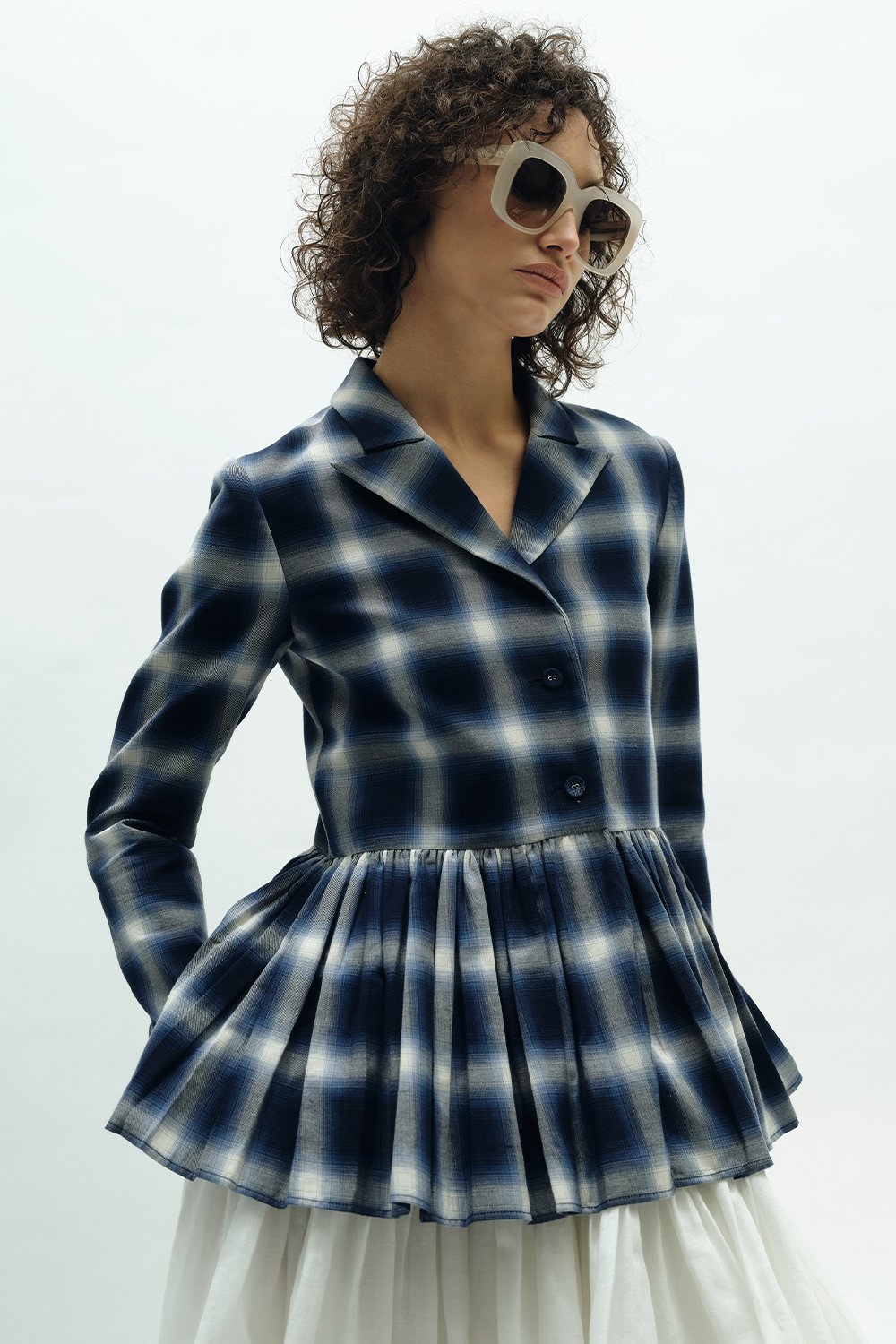 VICKTEERUT Long Sleeve Blouse with Suit Collar and Pleated Hem เสื้อแขนยาว ปกสูท ชายระบายอัดพลีท