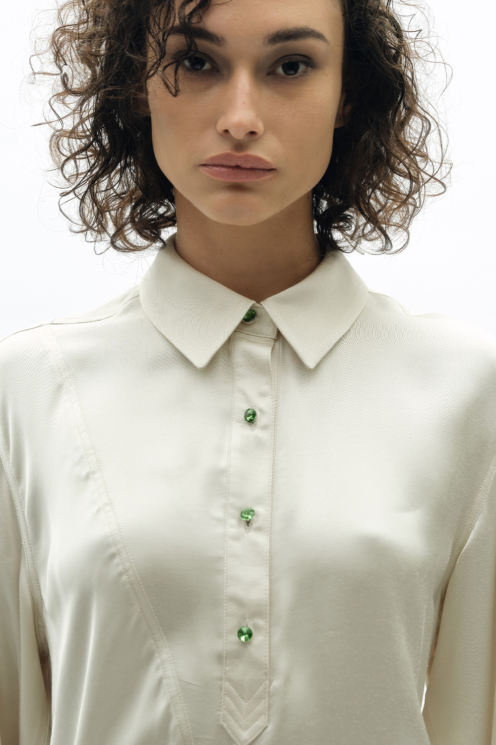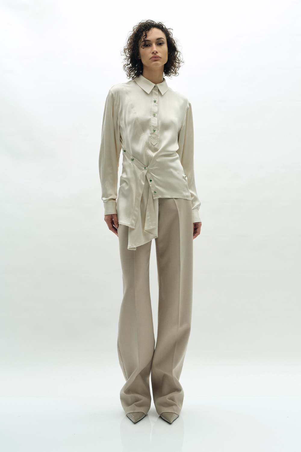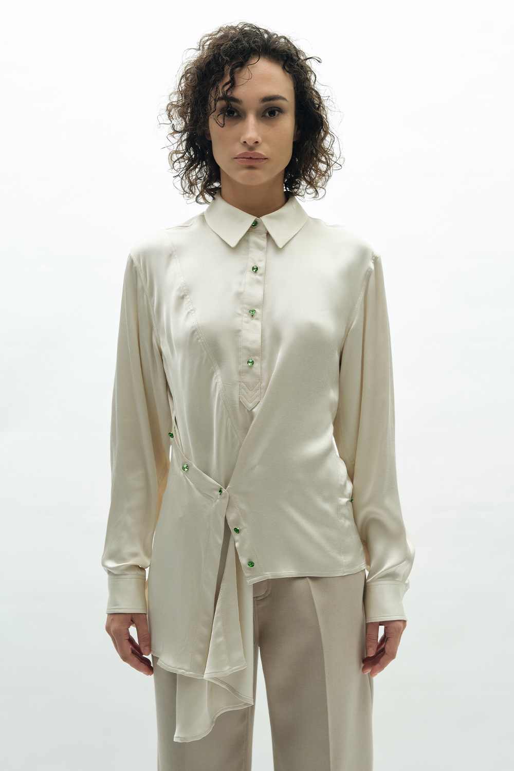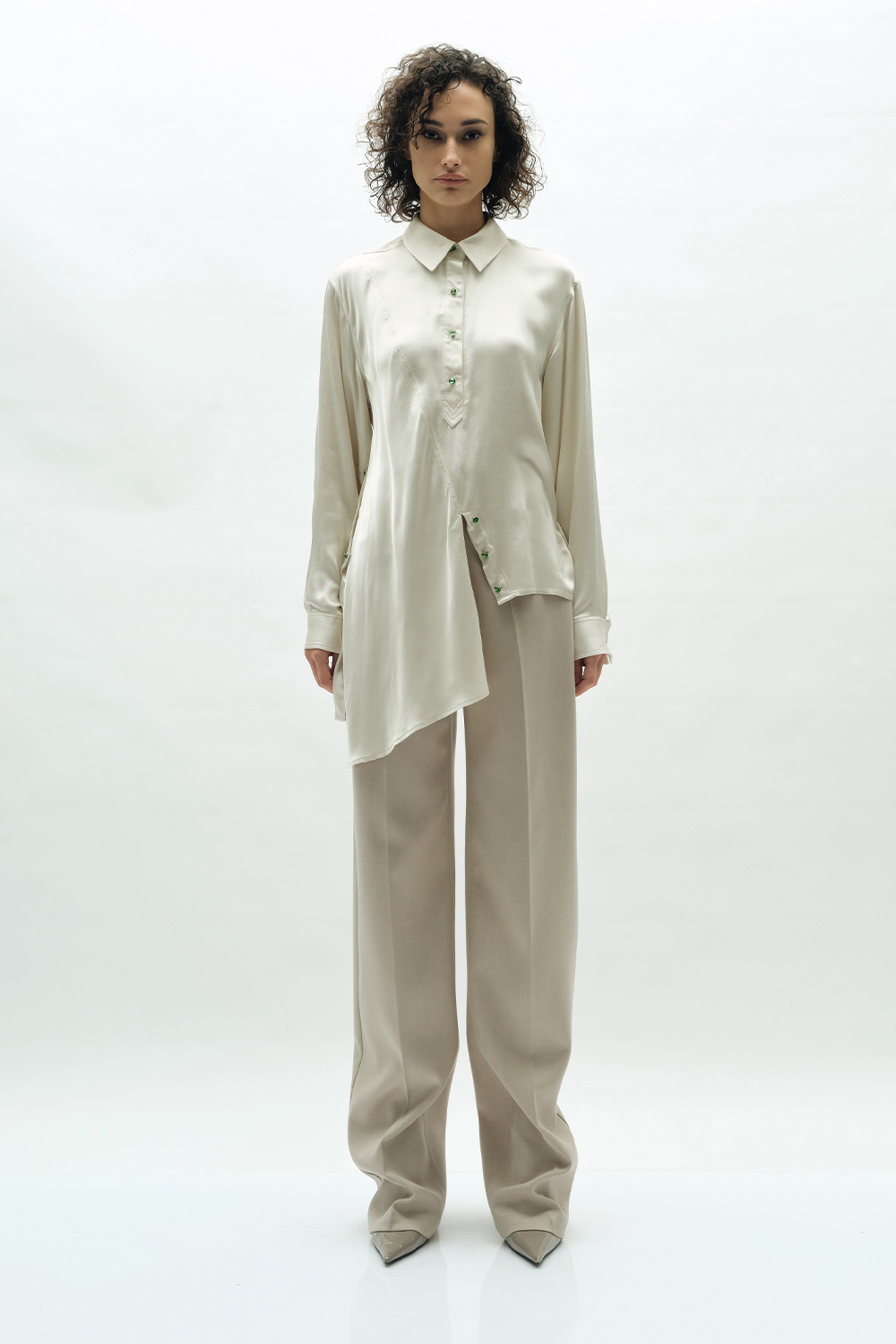 VICKTEERUT Long Sleeve Deconstructed Satin Shirt เสื้อเชิ้ต แขนยาว ดีคอนสตรัคชั่น