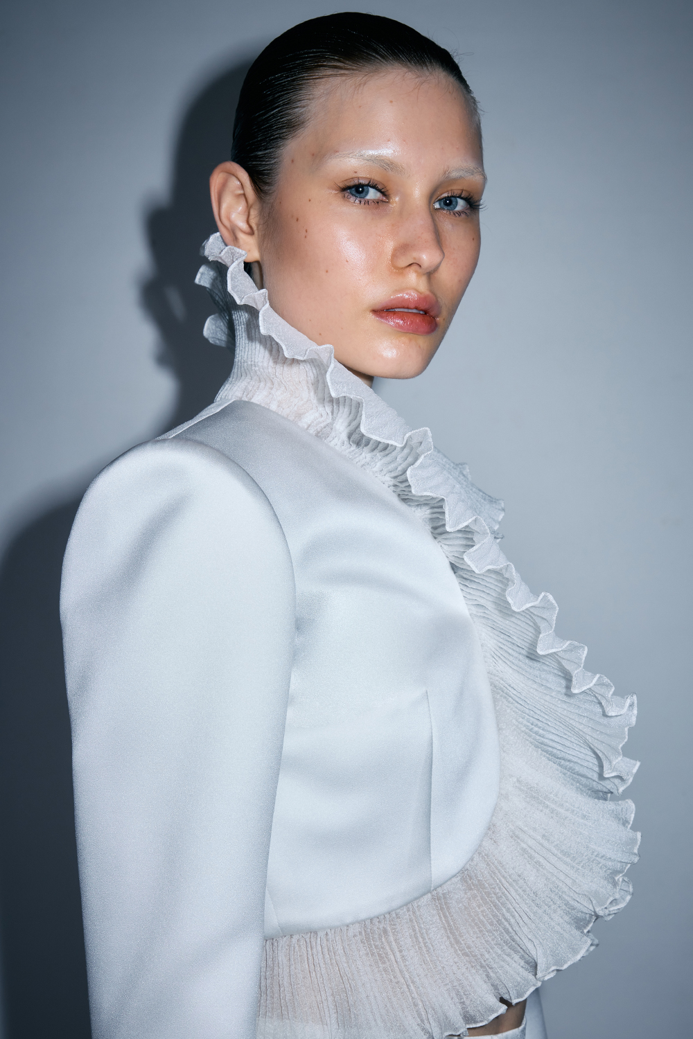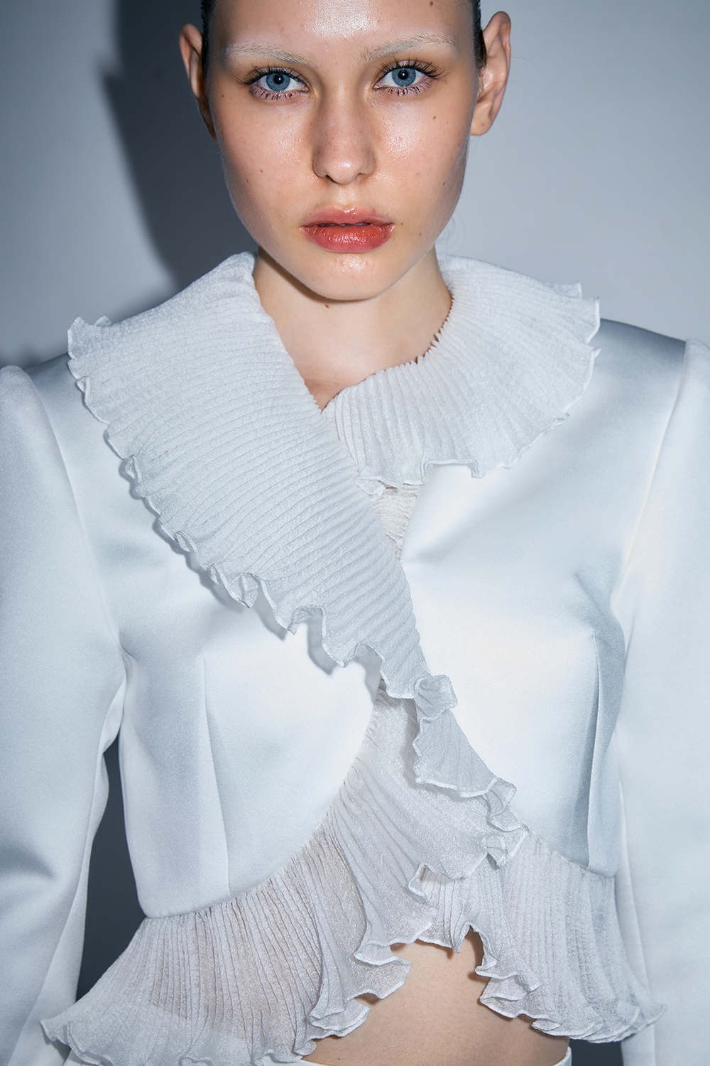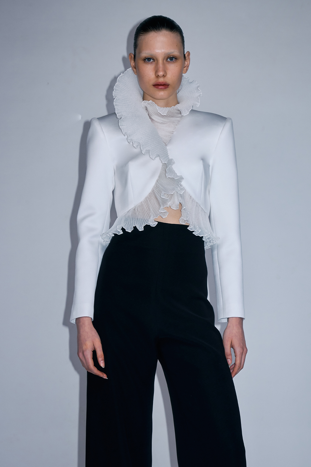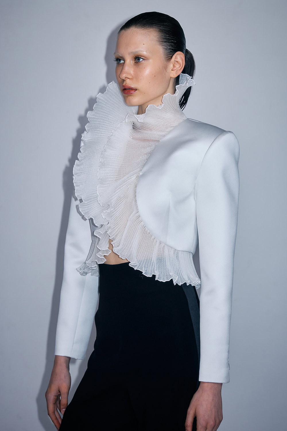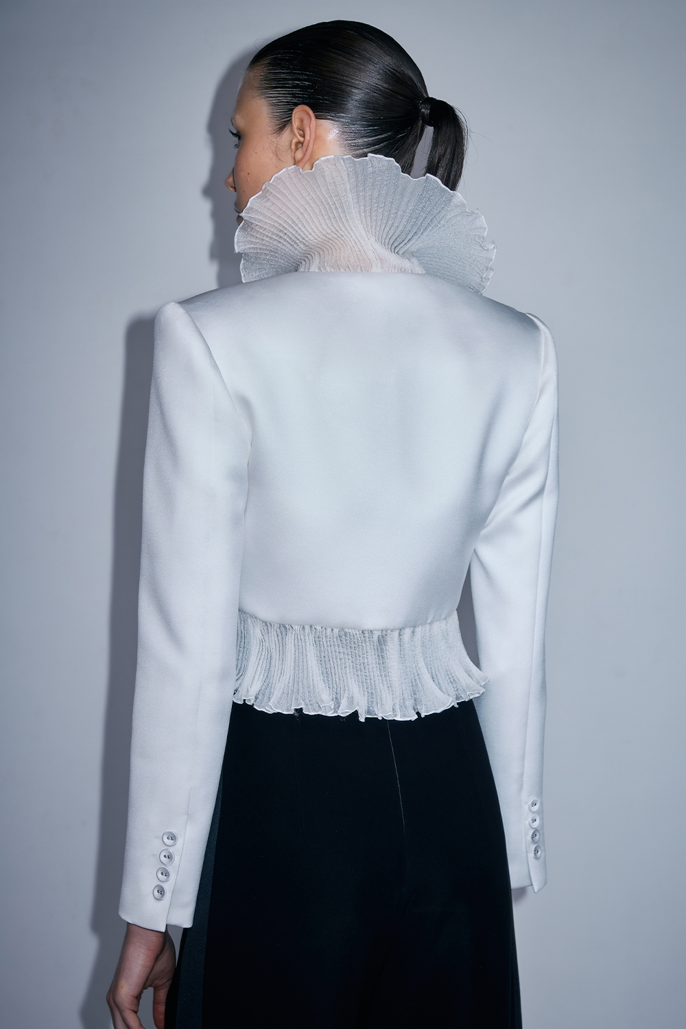 VICKTEERUT Long Sleeve Jacket with Pleated Ruffle เสื้อแจ๊คเก็ต แขนยาว ตกแต่งระบายอัดพลีท