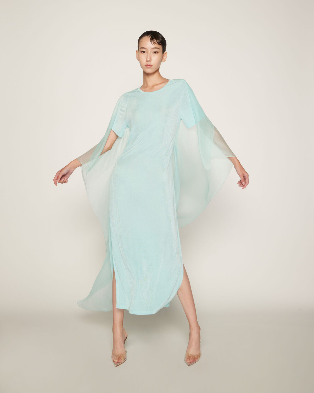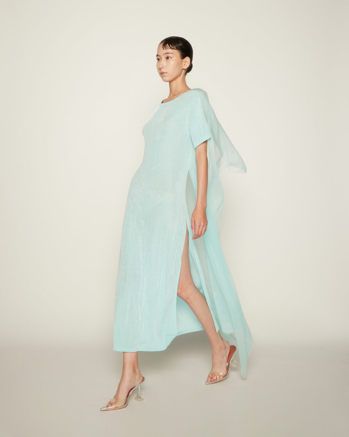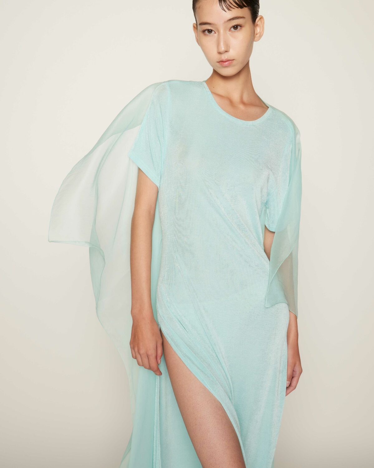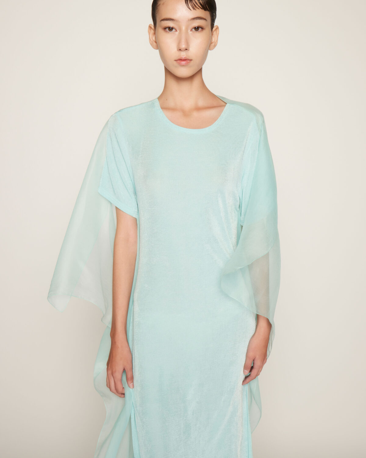 Vickteerut Short Sleeve Jersey Dress with Silk Back เดรสแขนสั้น ตัดต่อไหมชีฟอง