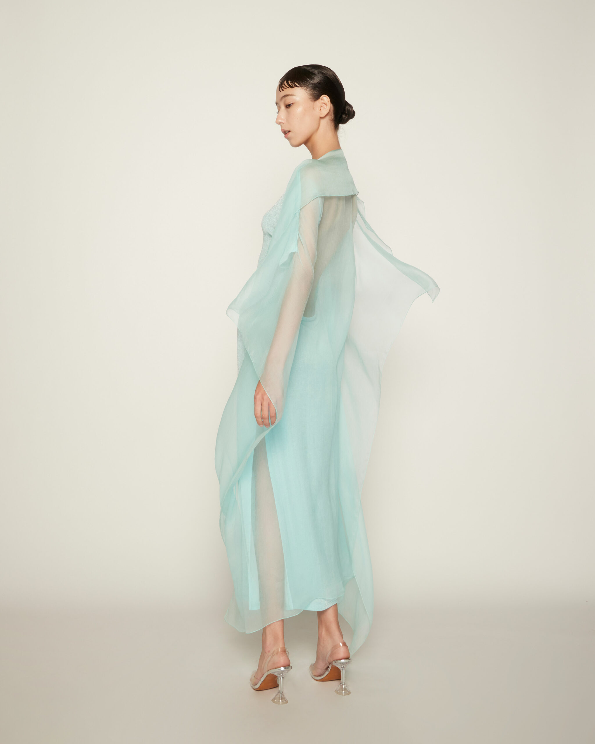 เดรสแขนสั้น ตัดต่อไหมชีฟอง