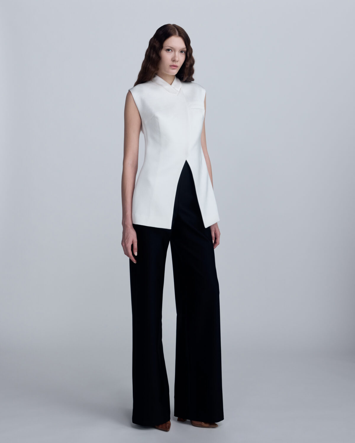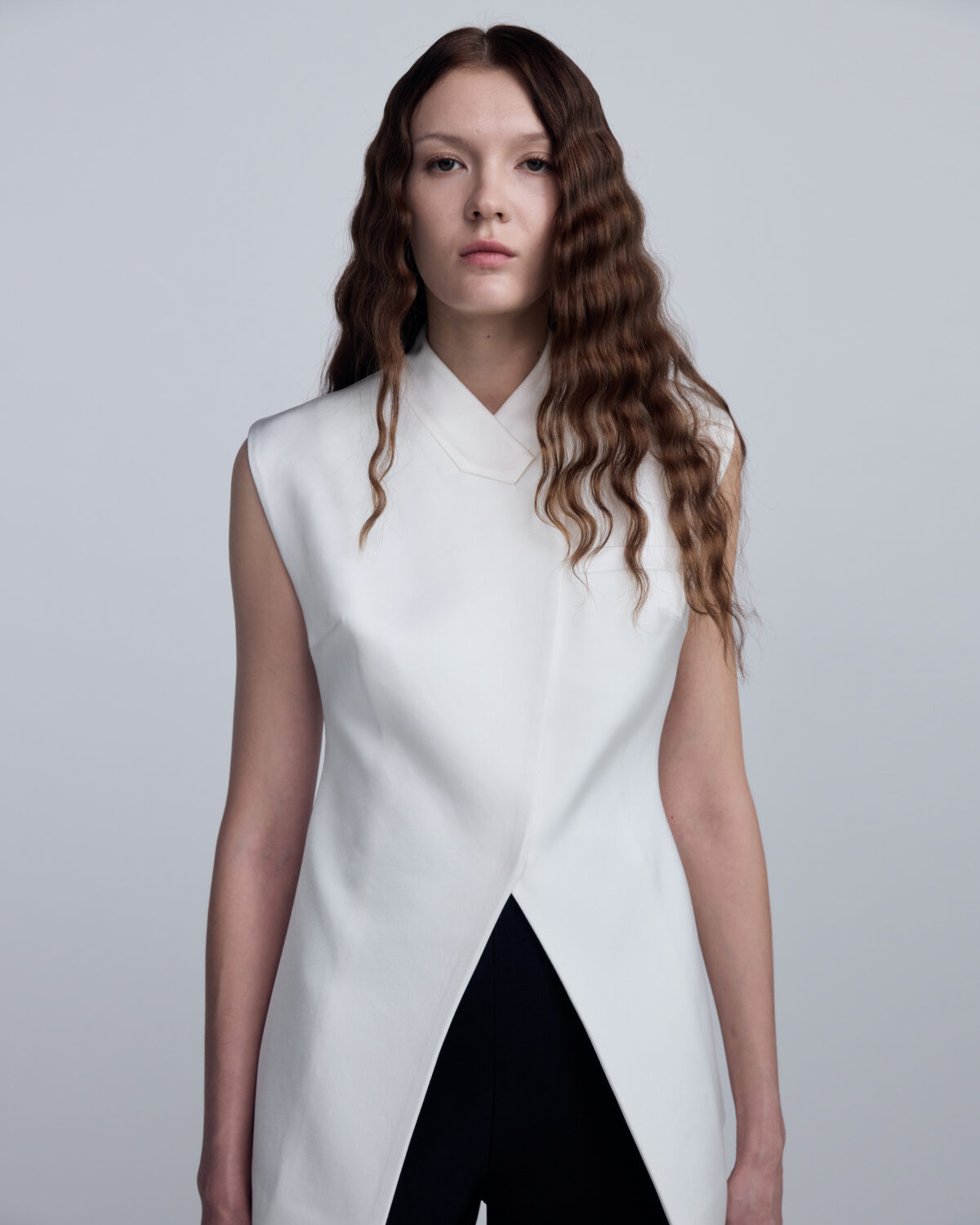 VICKTEERUT Sleeveless Blazer with Stand-Up Collar and Open Placket เสื้อเบลเซอร์ แขนกุด ปกตั้ง สาบแยก