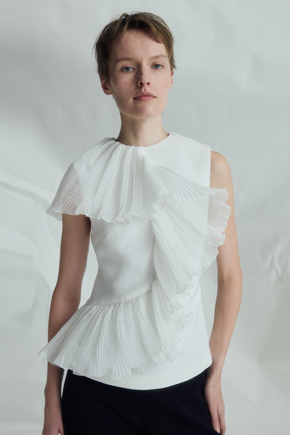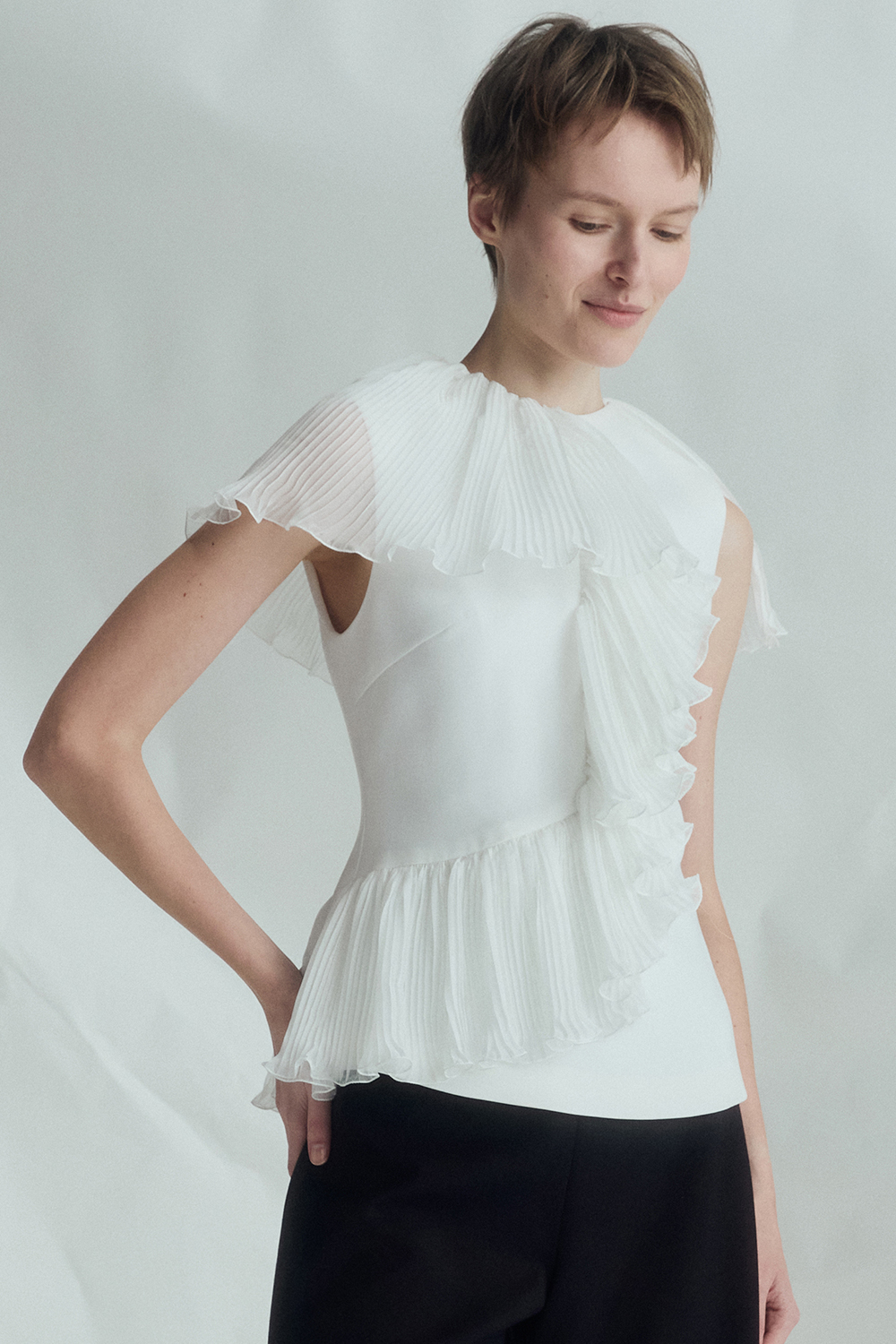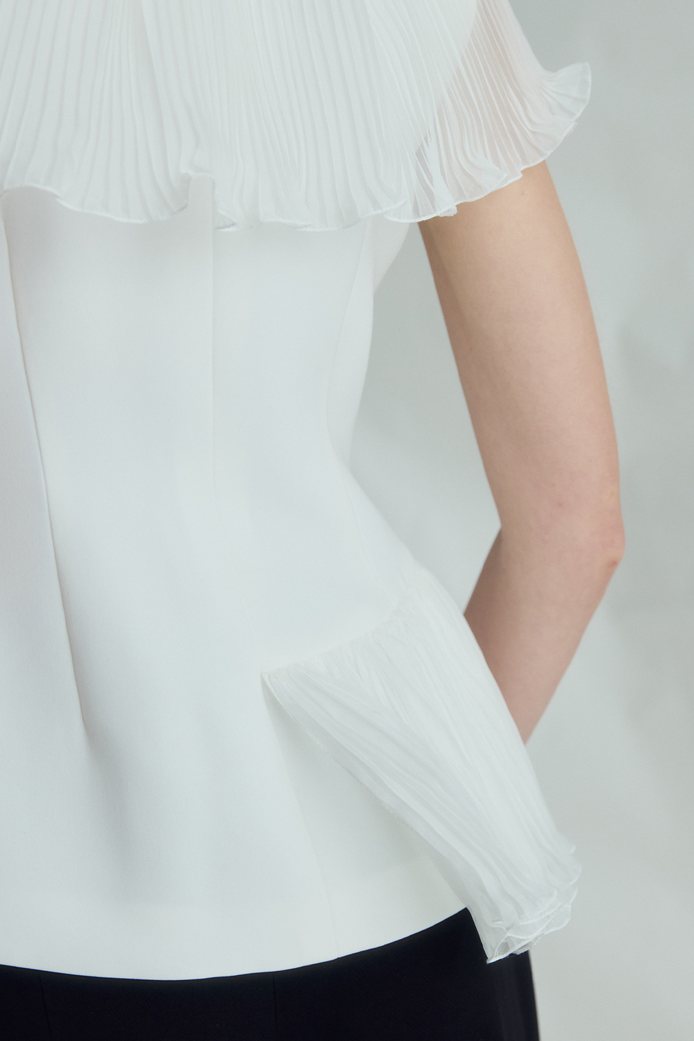 VICKTEERUT Sleeveless Blouse with Pleat Ruffle Detail เสื้อแขนกุด ตกแต่งระบายอัดพลีท