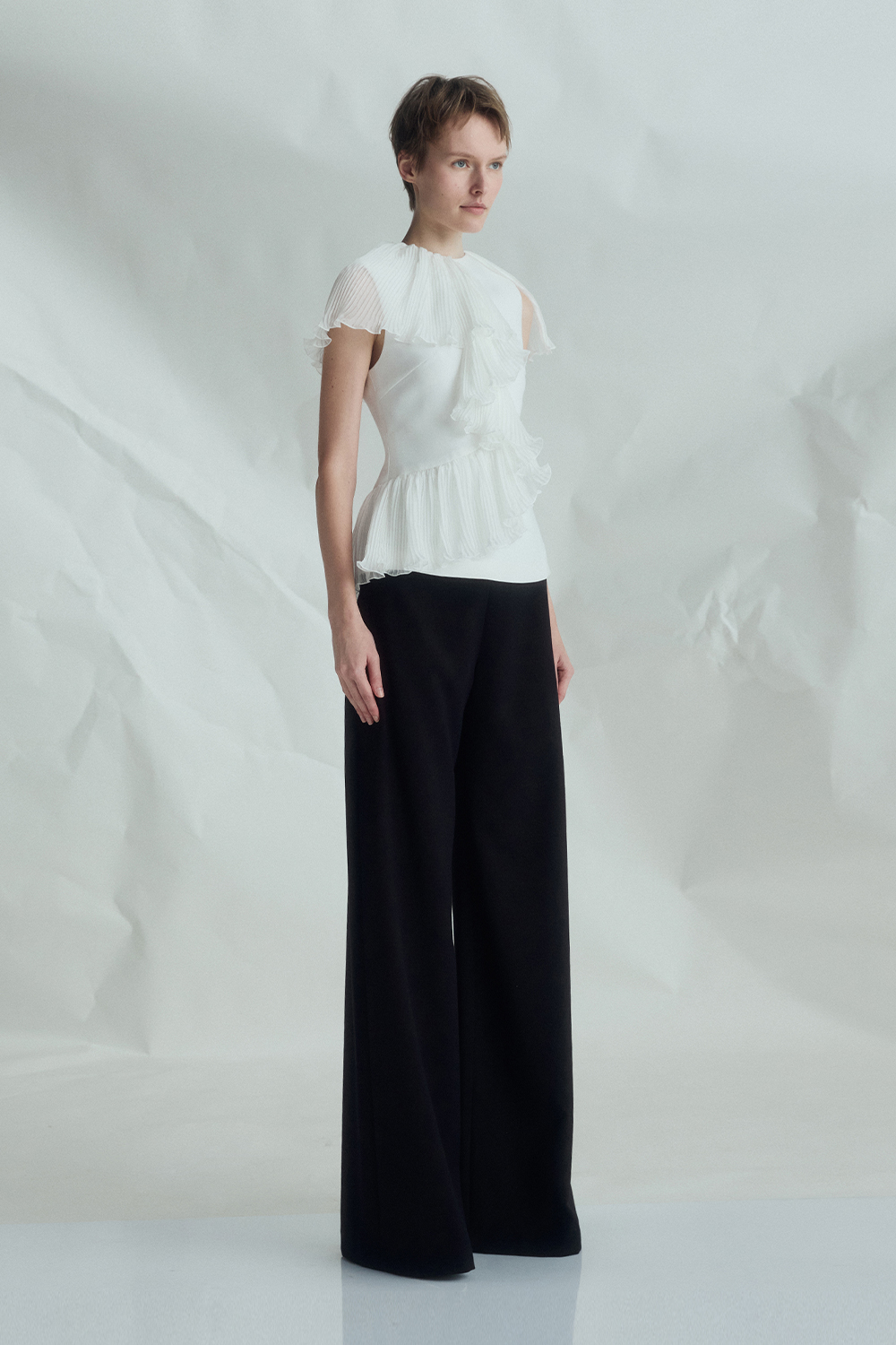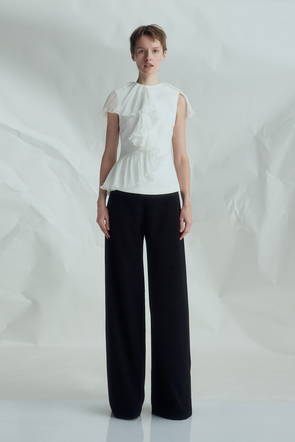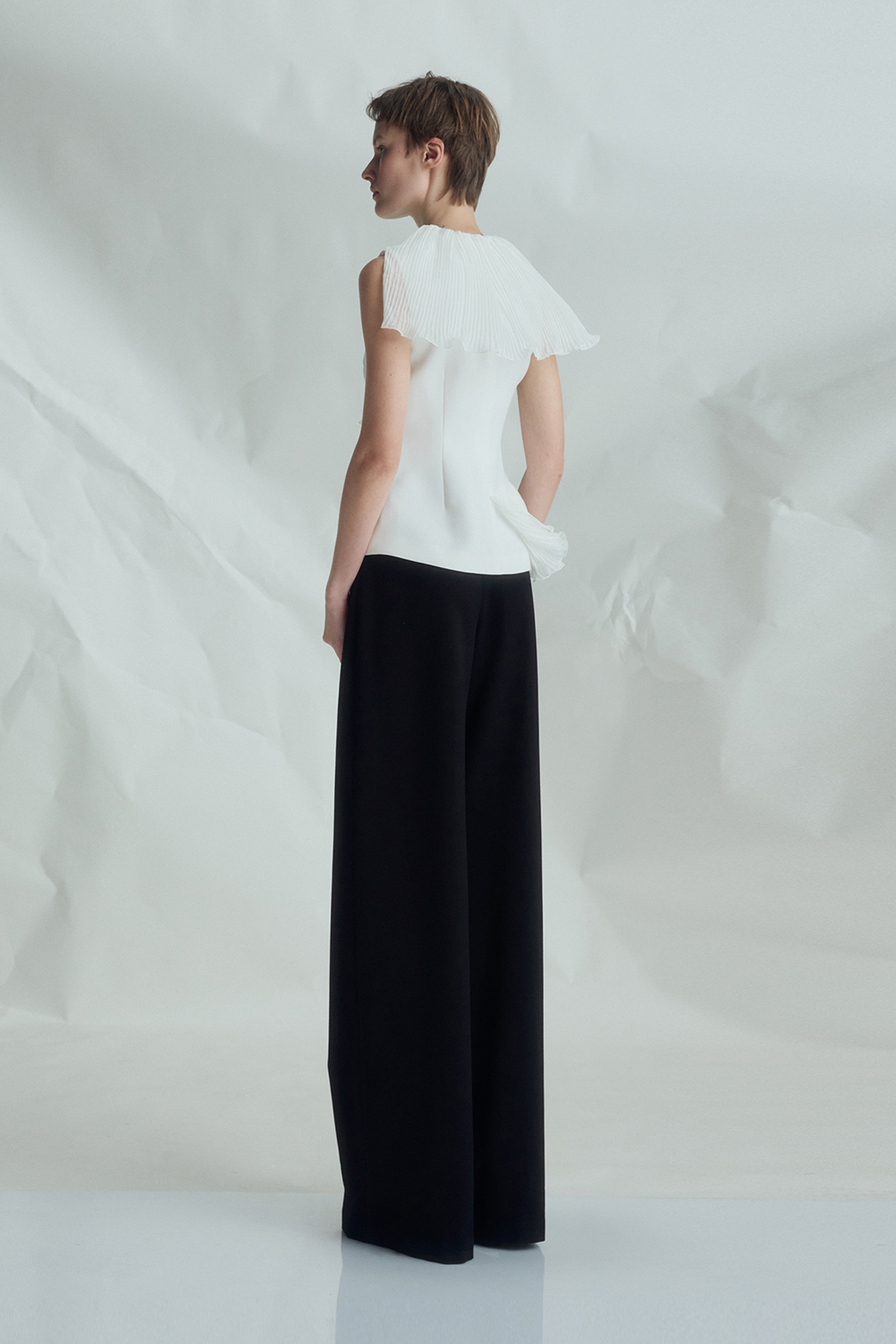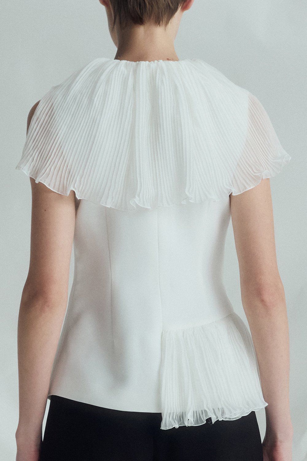 VICKTEERUT Sleeveless Blouse with Pleat Ruffle Detail เสื้อแขนกุด ตกแต่งระบายอัดพลีท
