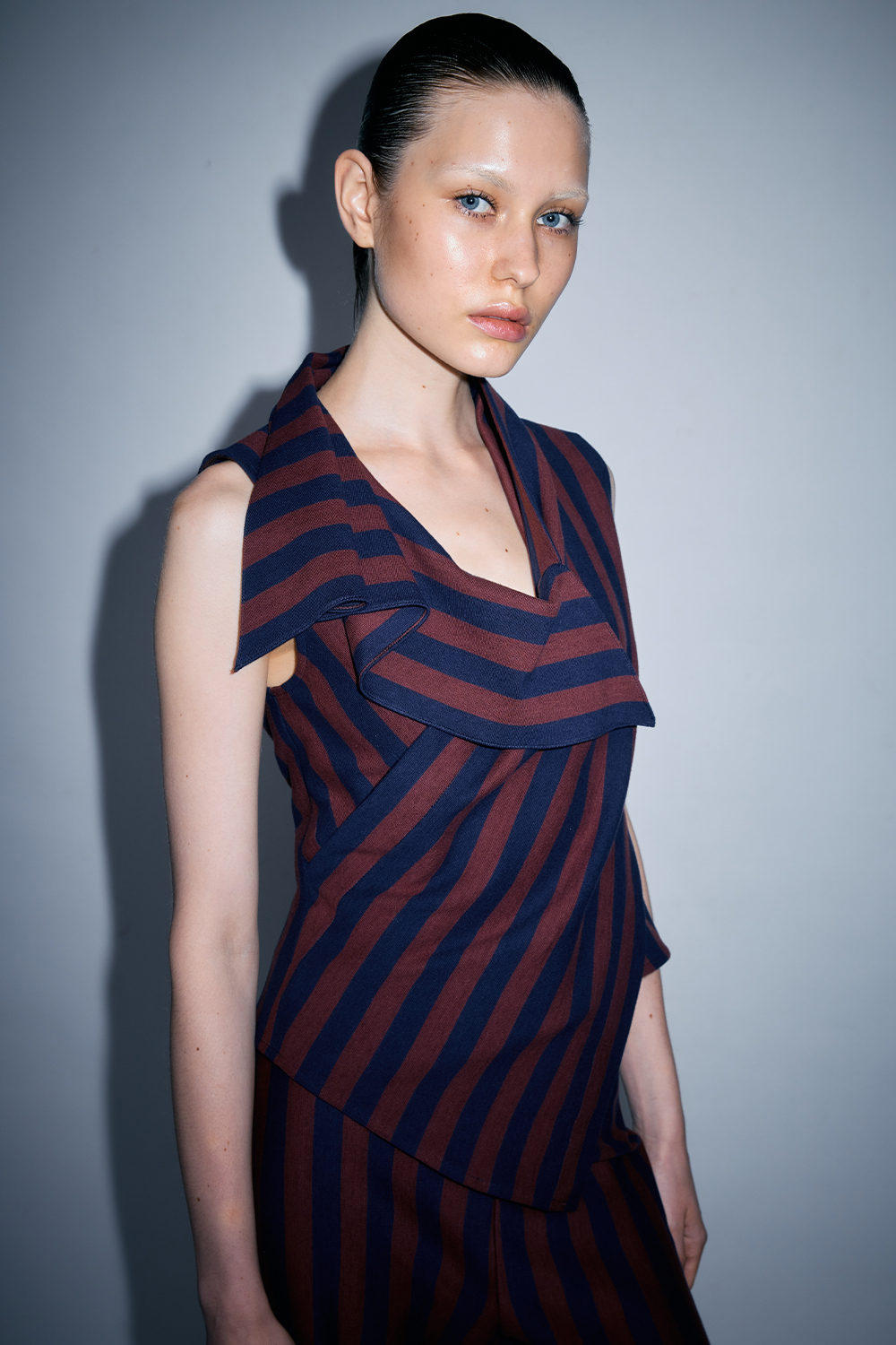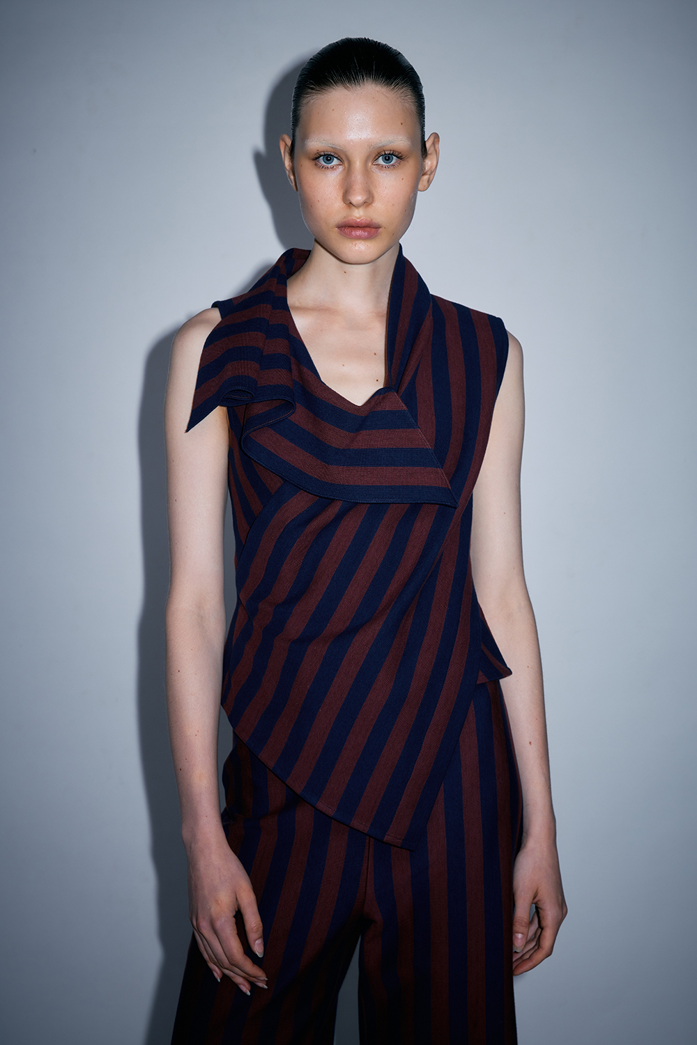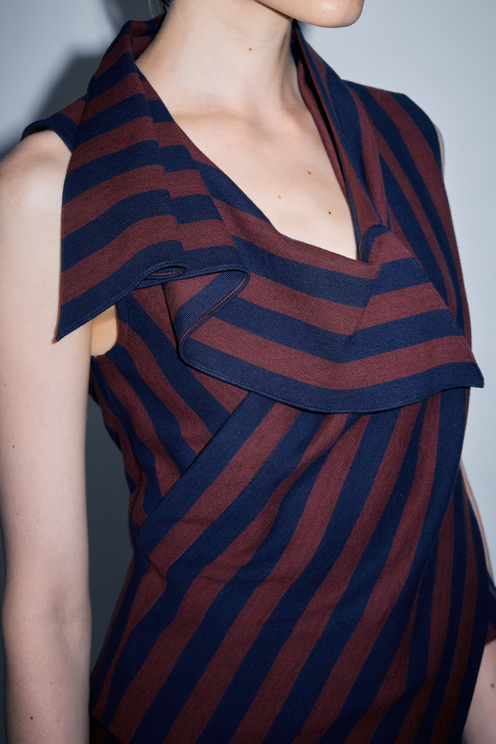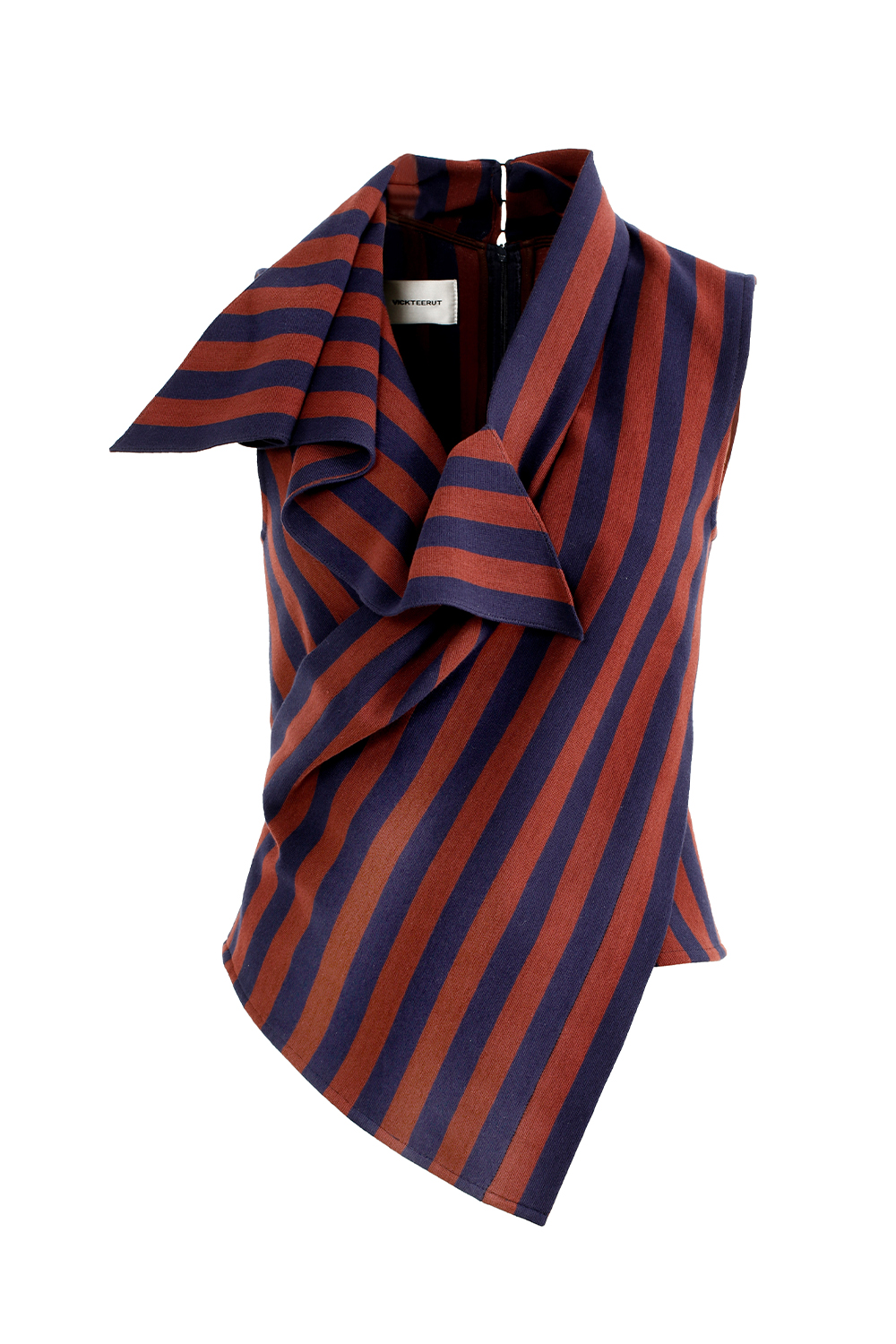 VICKTEERUT Sleeveless Draped Striped Blouse เสื้อแขนกุด ลายทาง จับเดรป