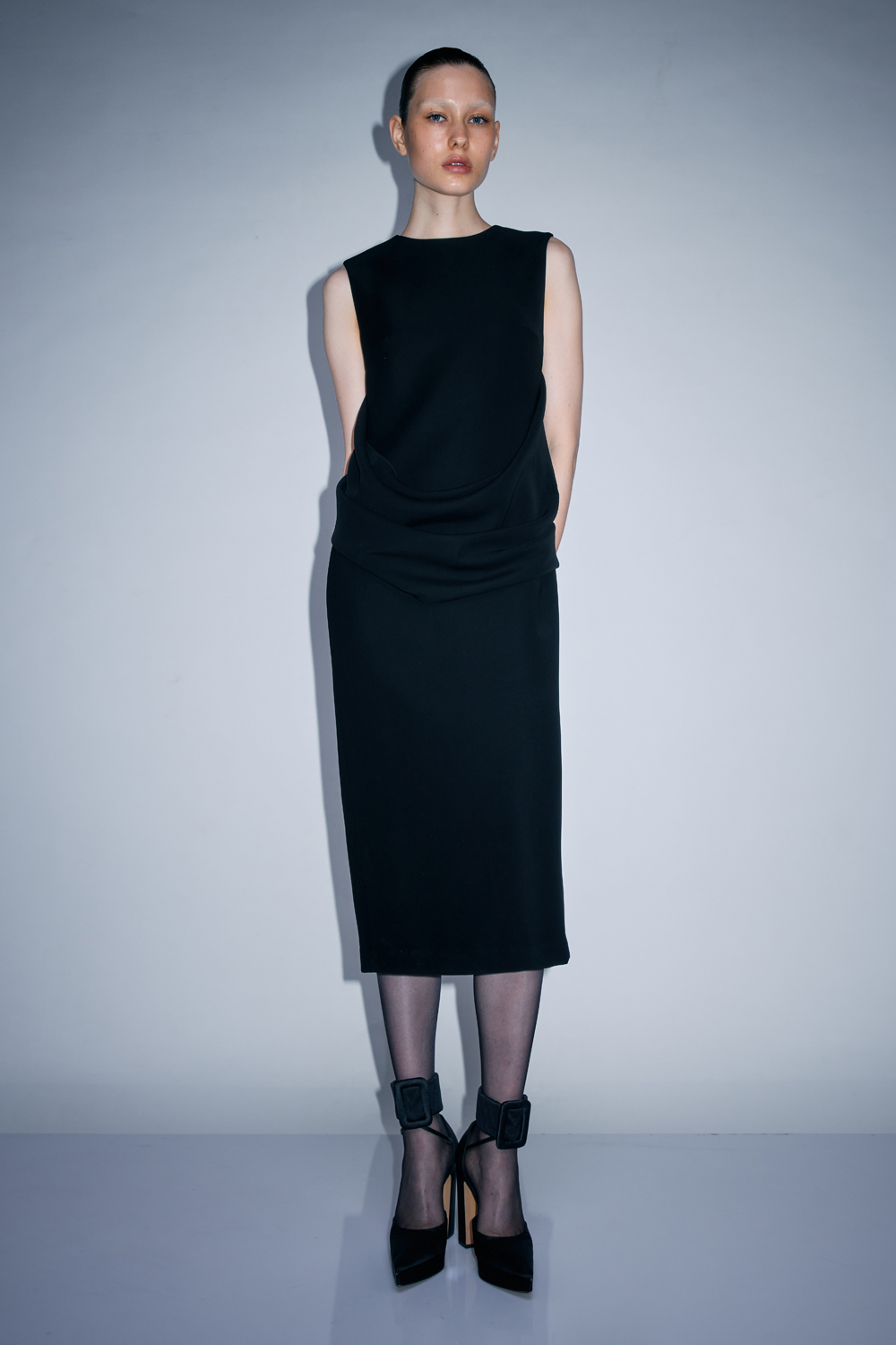 VICKTEERUT Sleeveless Dress with Drape Panel เดรสแขนกุด ตกแต่งดีเทลเดรป