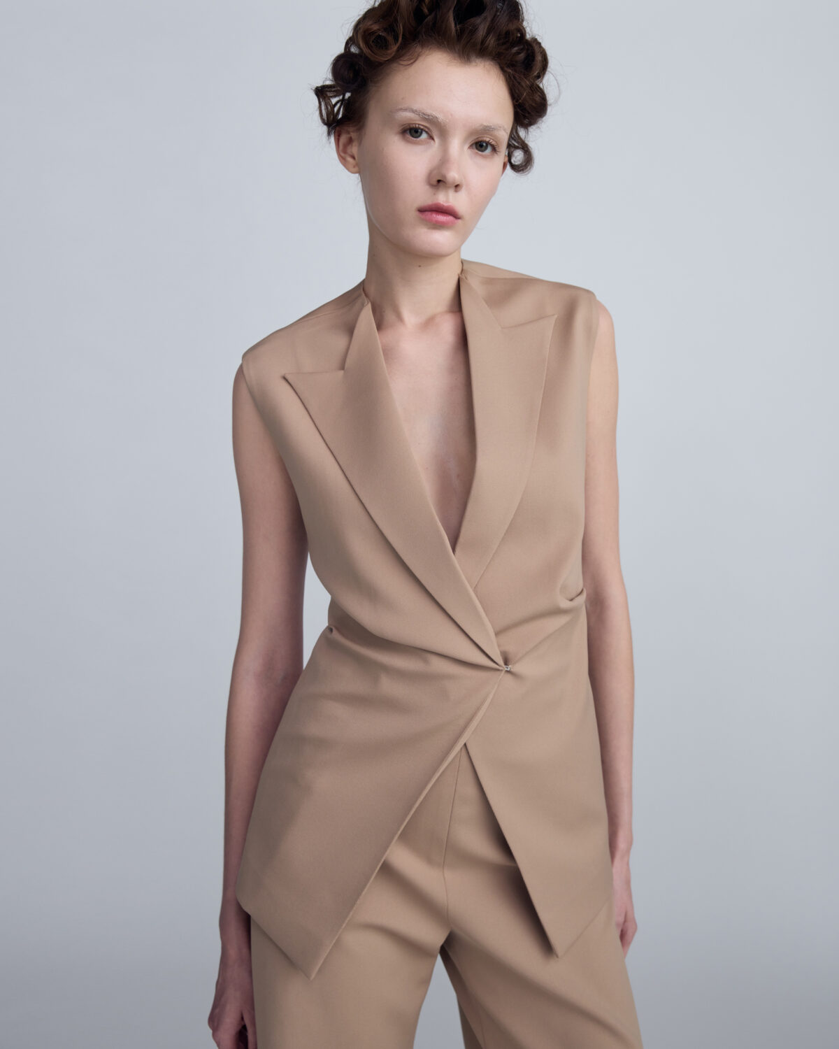 VICKTEERUT Sleeveless Peak-Lapel Jacket with Open Placket เสื้อแจ๊คเก็ต แขนกุด ปกสูท สาบแยก
