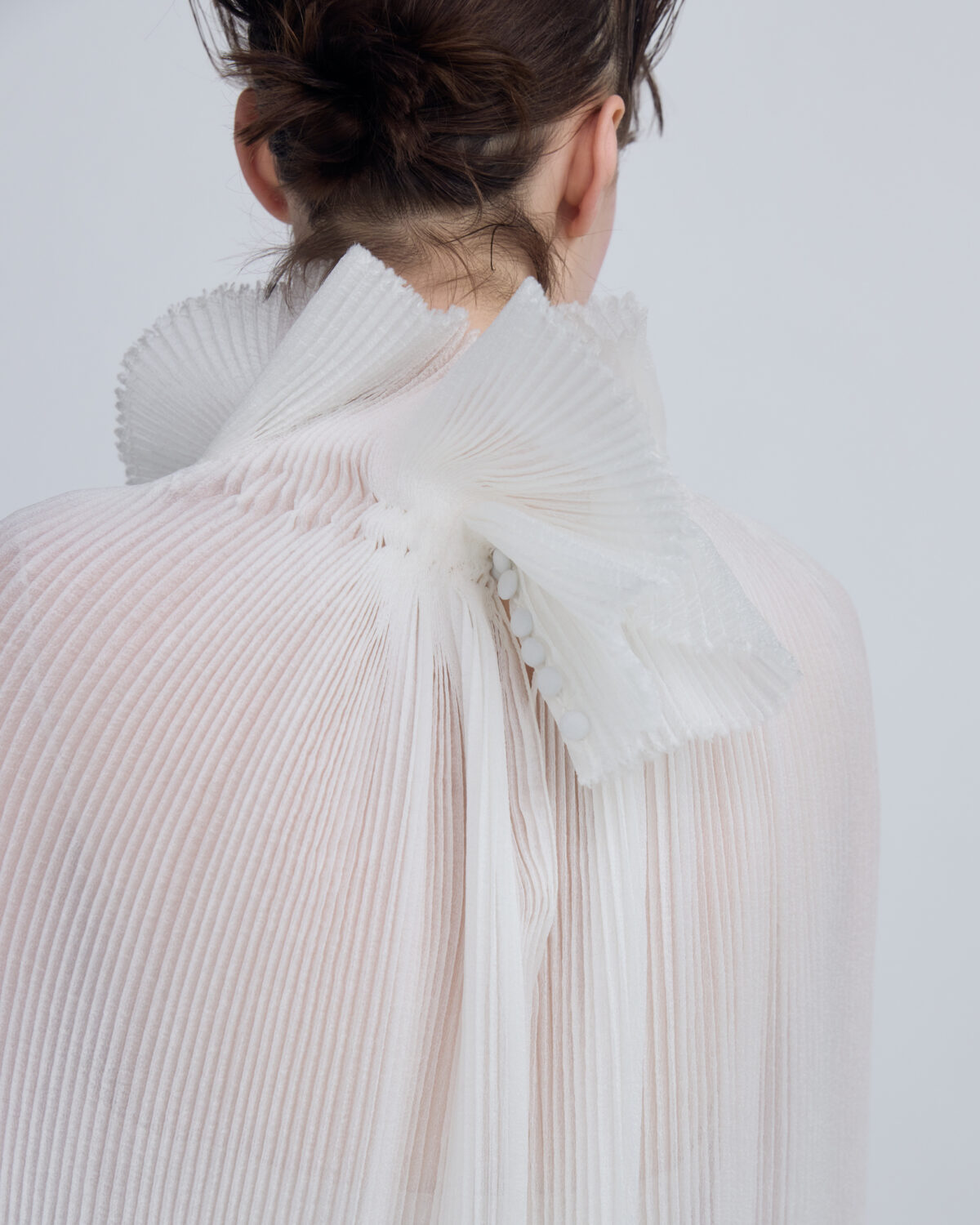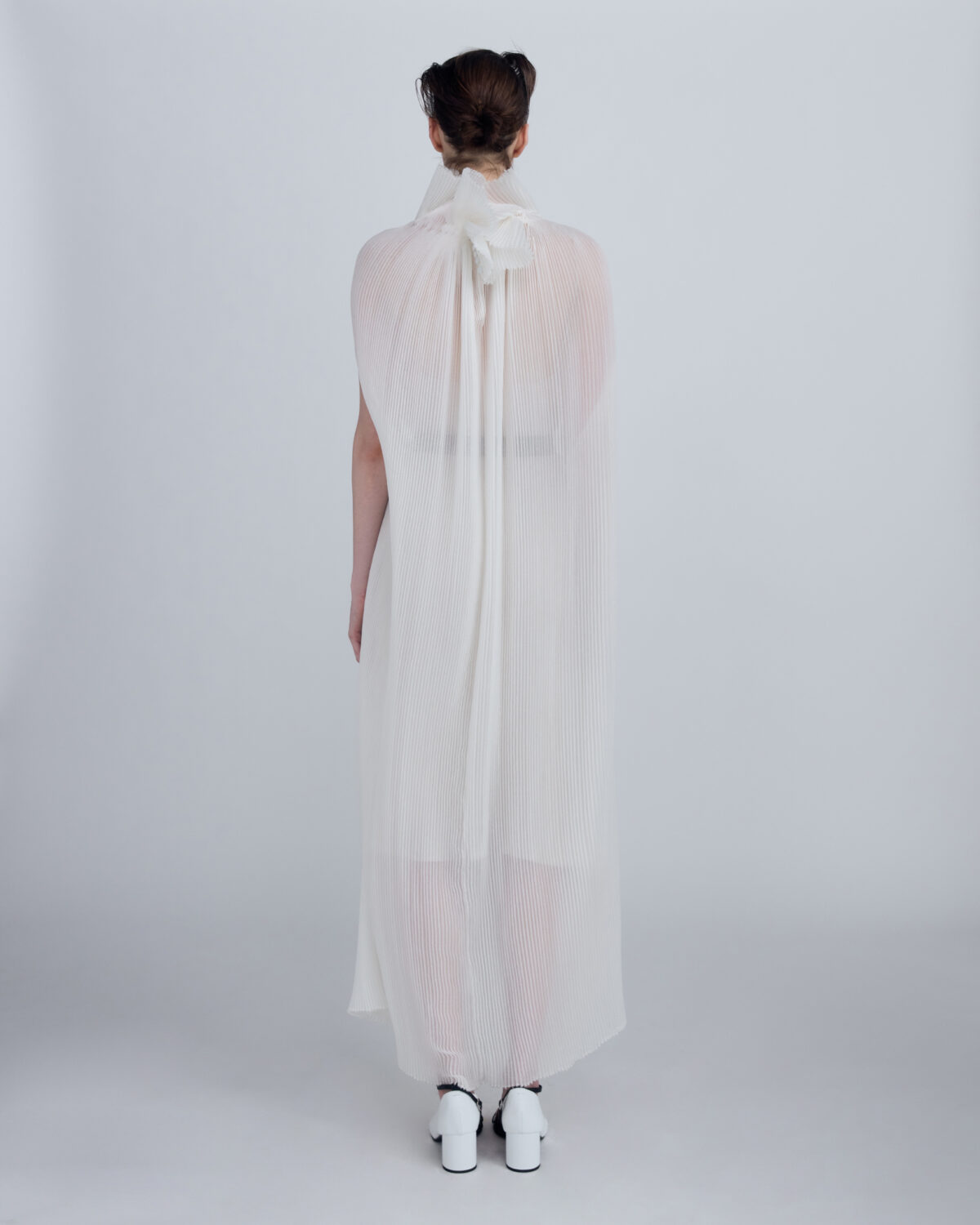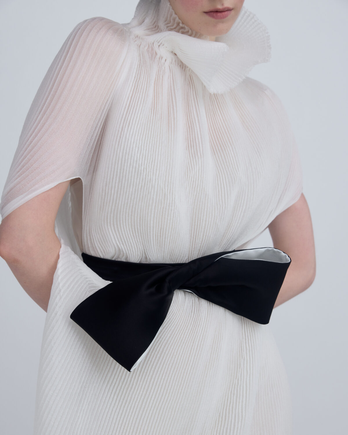 VICKTEERUT Sleeveless Ruffle Neck Pleated Dress with Bow Belt เดรสแขนกุด อัพพลีท คอระบาย ตกแต่งเข็มขัดโบว์