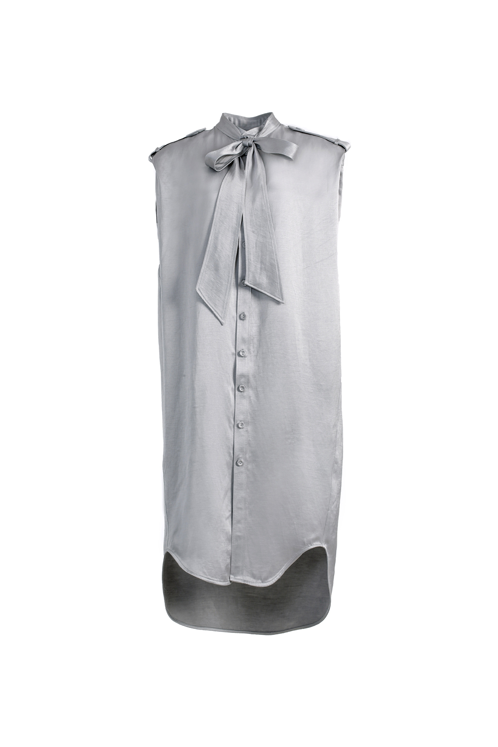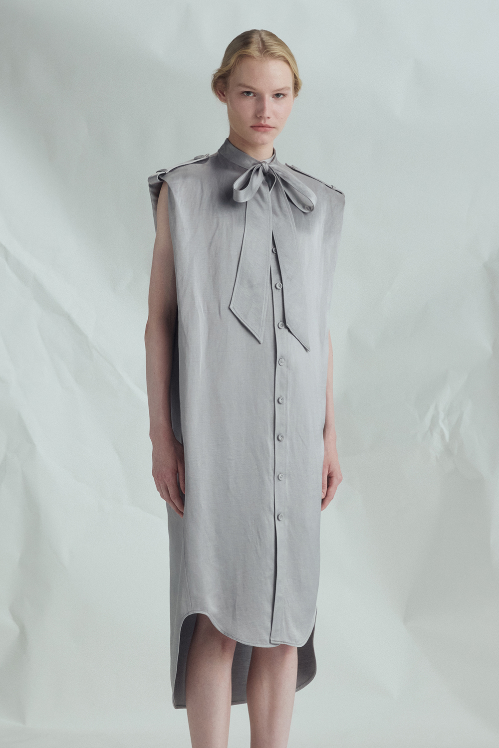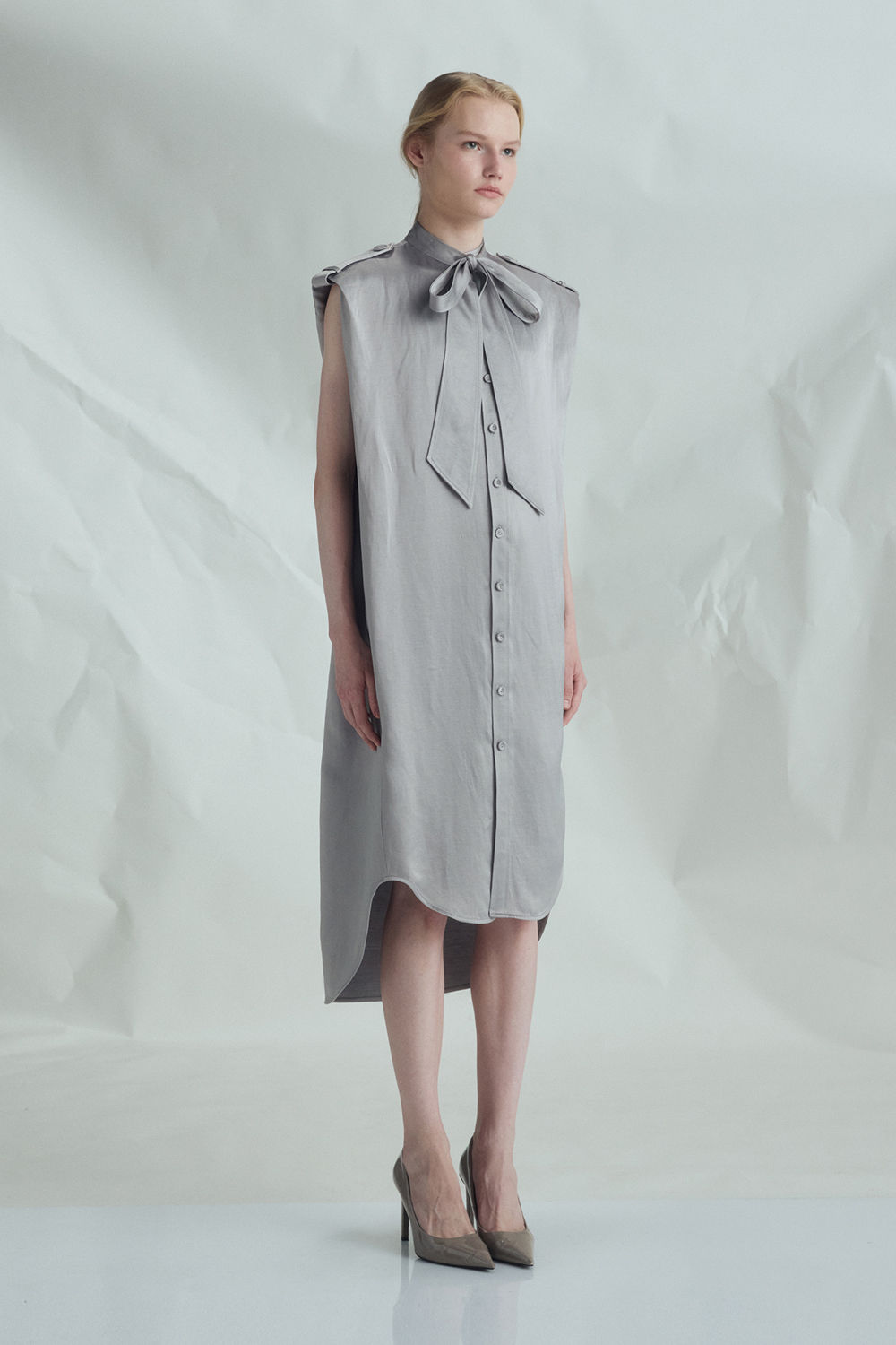 VICKTEERUT Sleeveless Shift Dress with Pussy-Bow Detail เดรสแขนกุด ทรงตรง คอตกแต่งโบว์