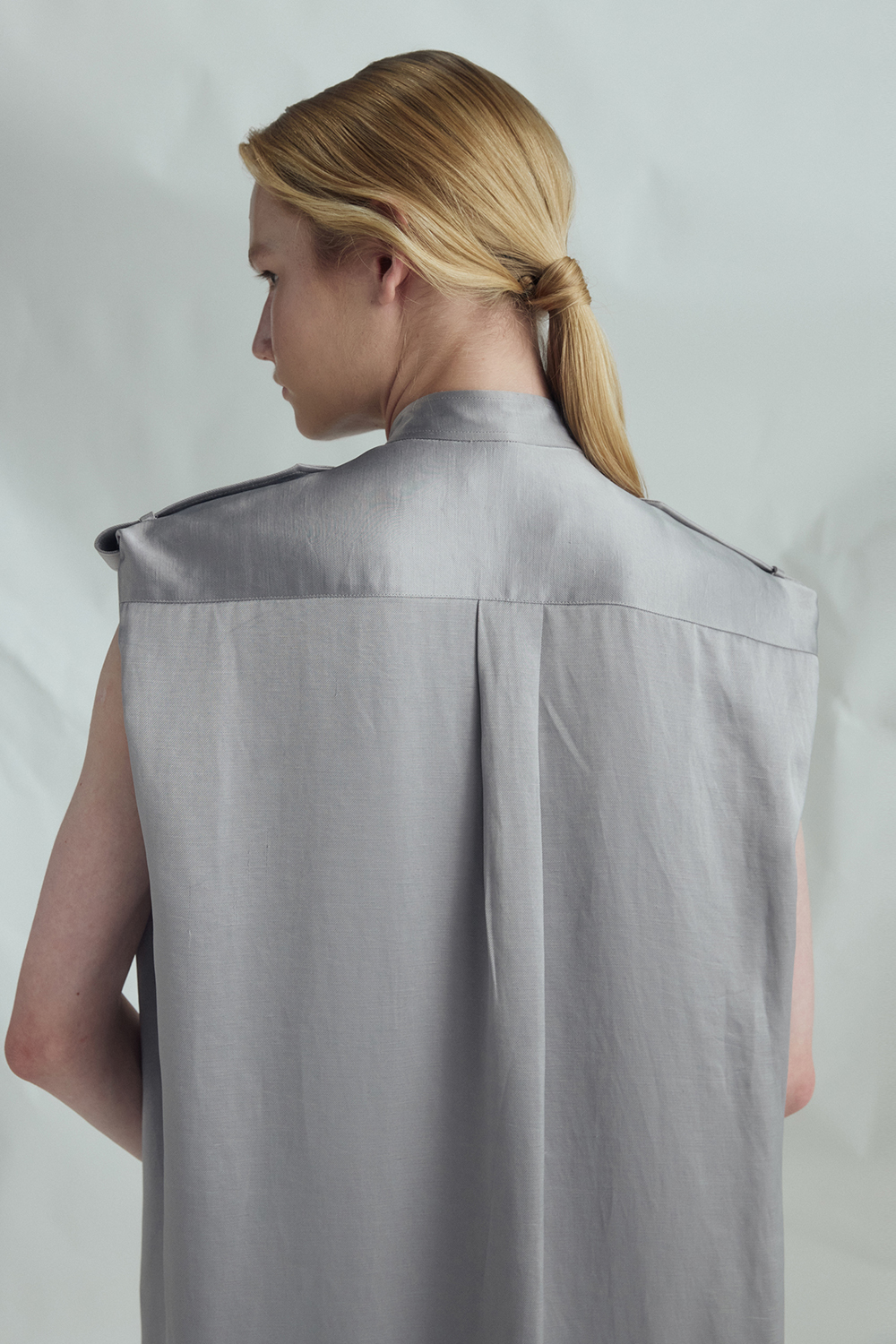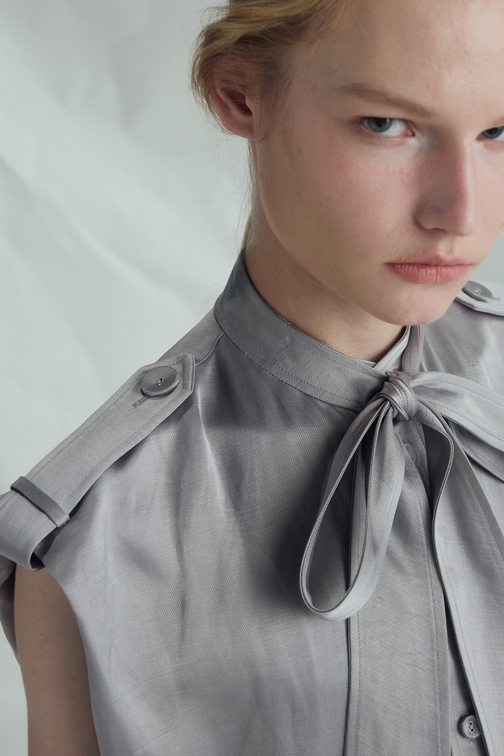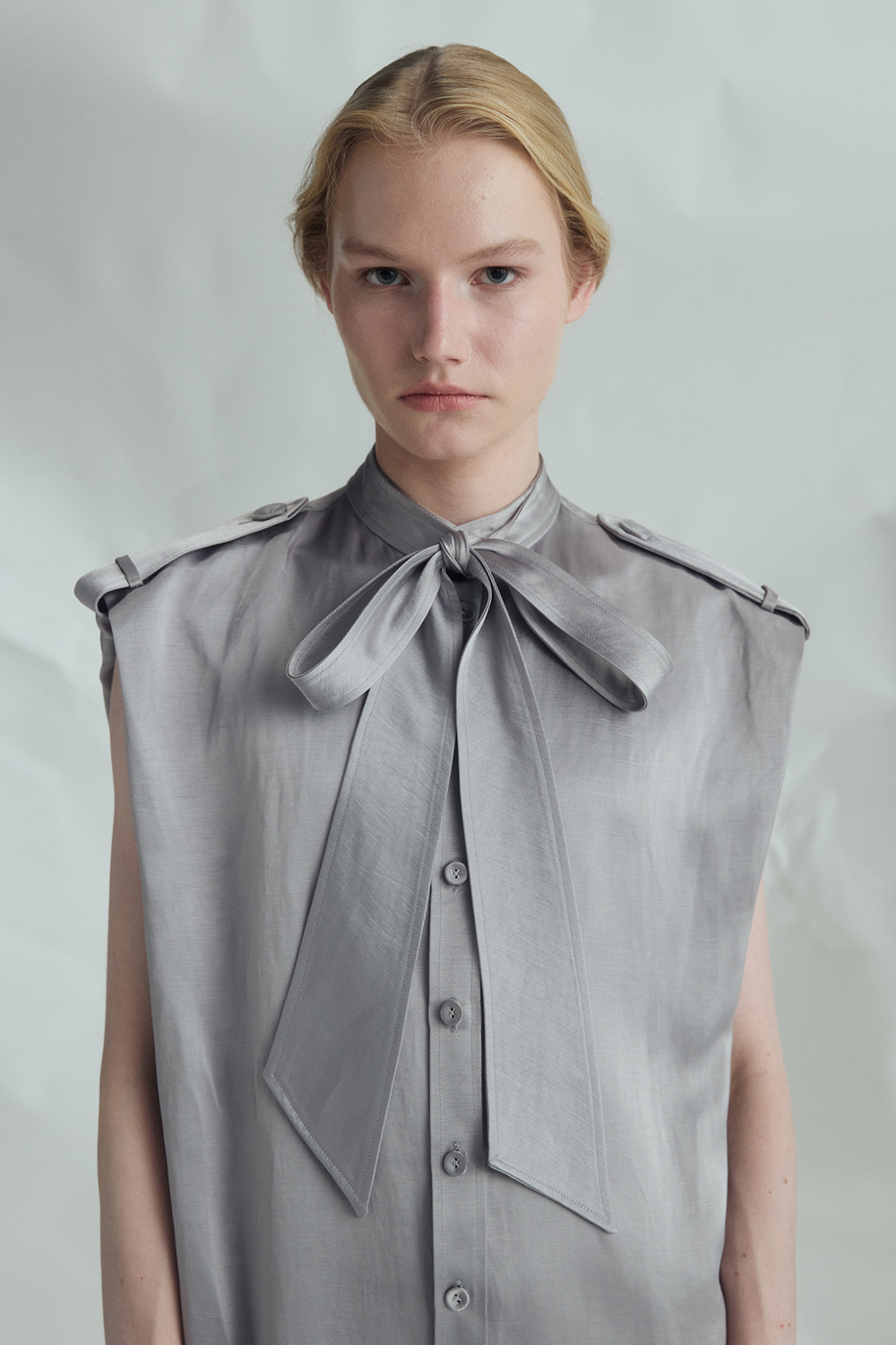 VICKTEERUT Sleeveless Shift Dress with Pussy-Bow Detail เดรสแขนกุด ทรงตรง คอตกแต่งโบว์