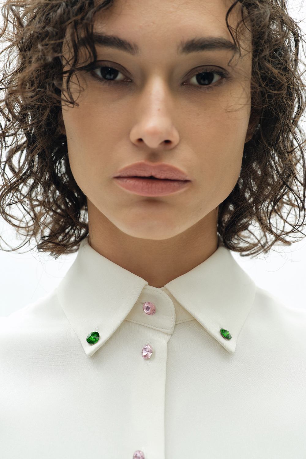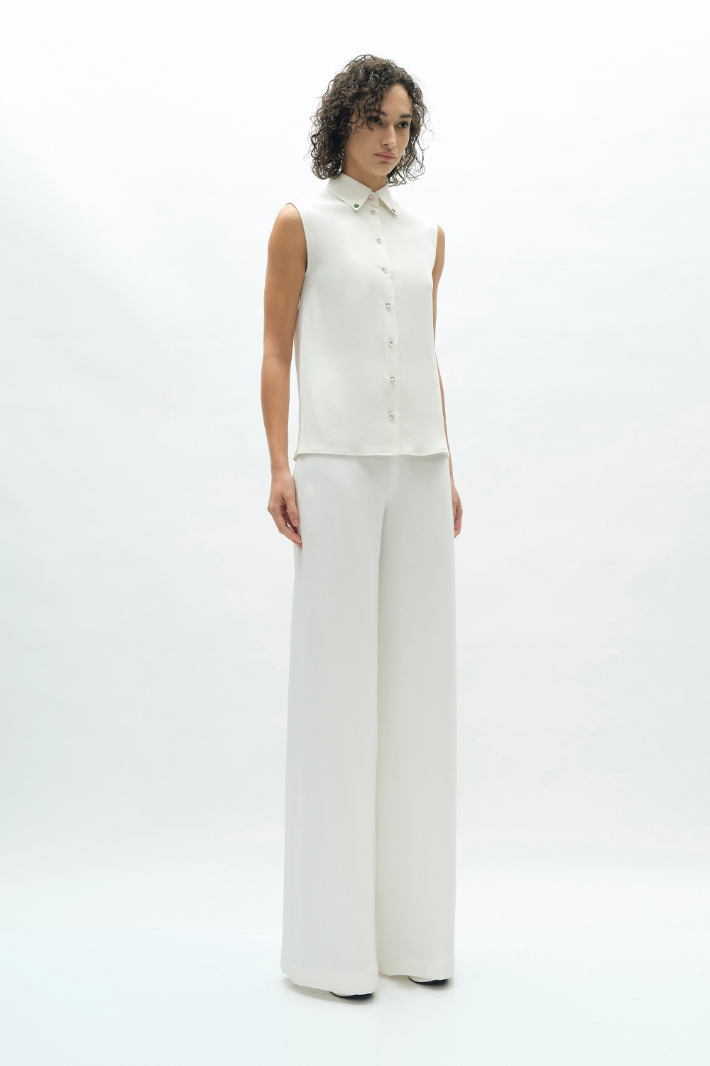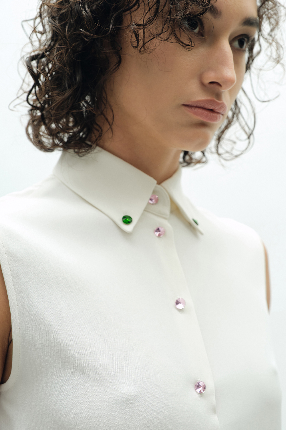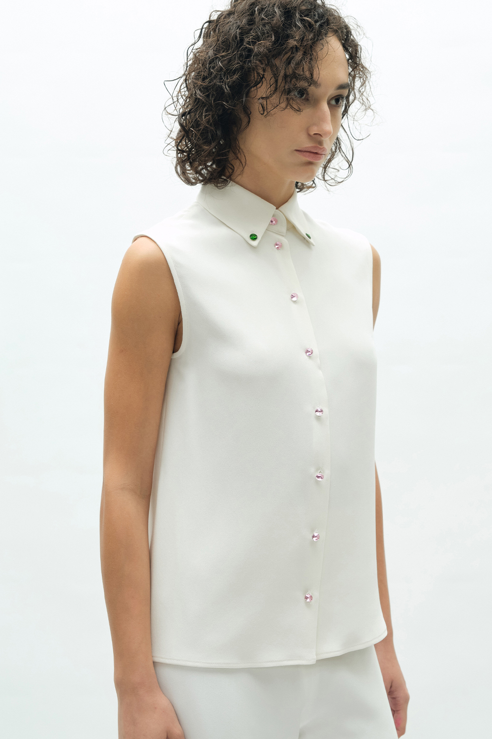 VICKTEERUT Sleeveless Shirt with Crystal Buttons เสื้อเชิ้ต แขนกุด ตกแต่งกระดุมคริสตัล