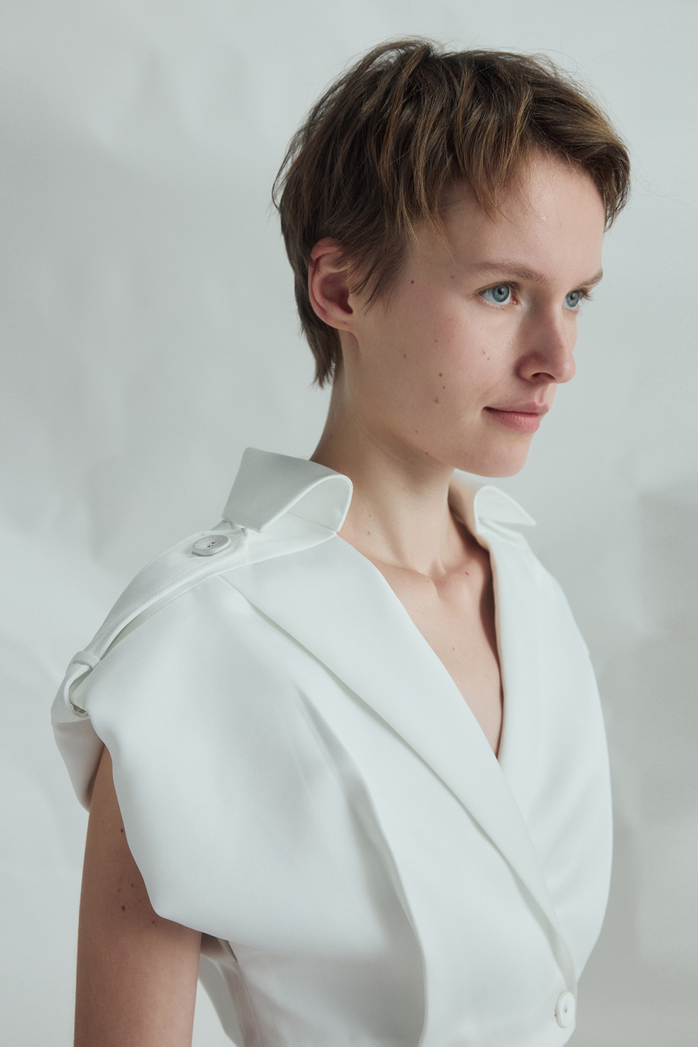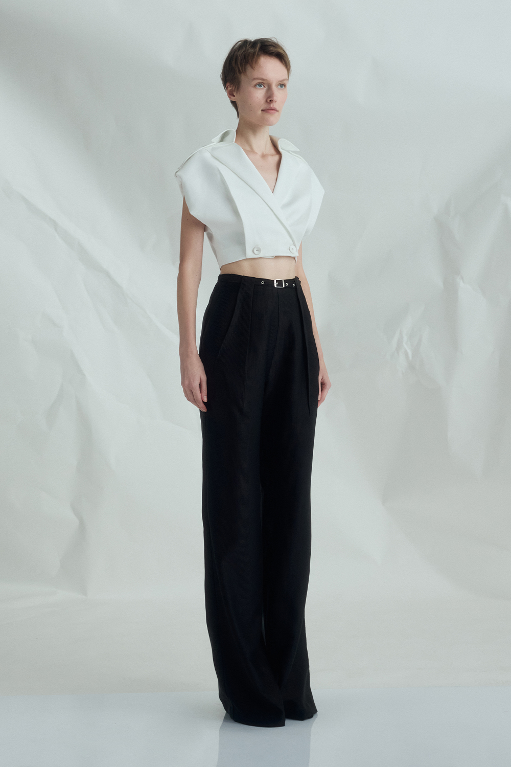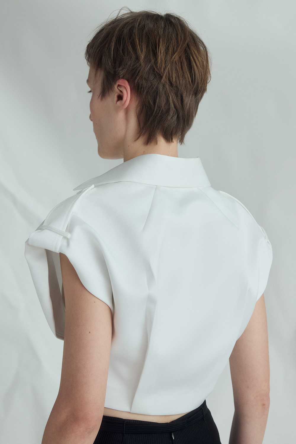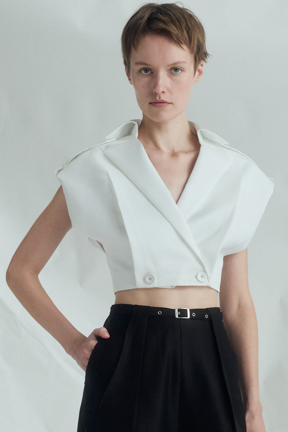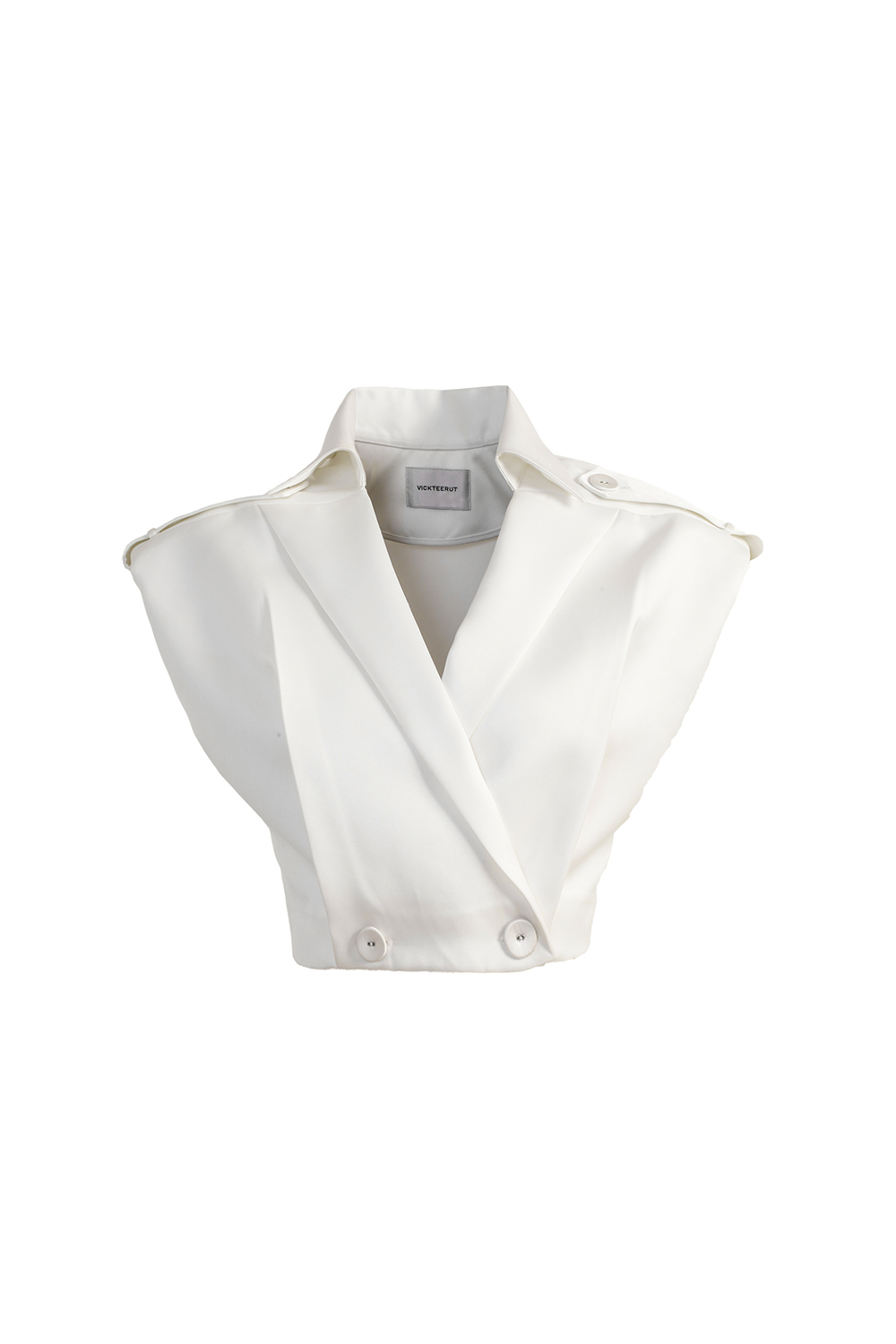 VICKTEERUT Suit Collar Cropped Blouse เสื้อตัวสั้น แขนเต่อ ปกสูท