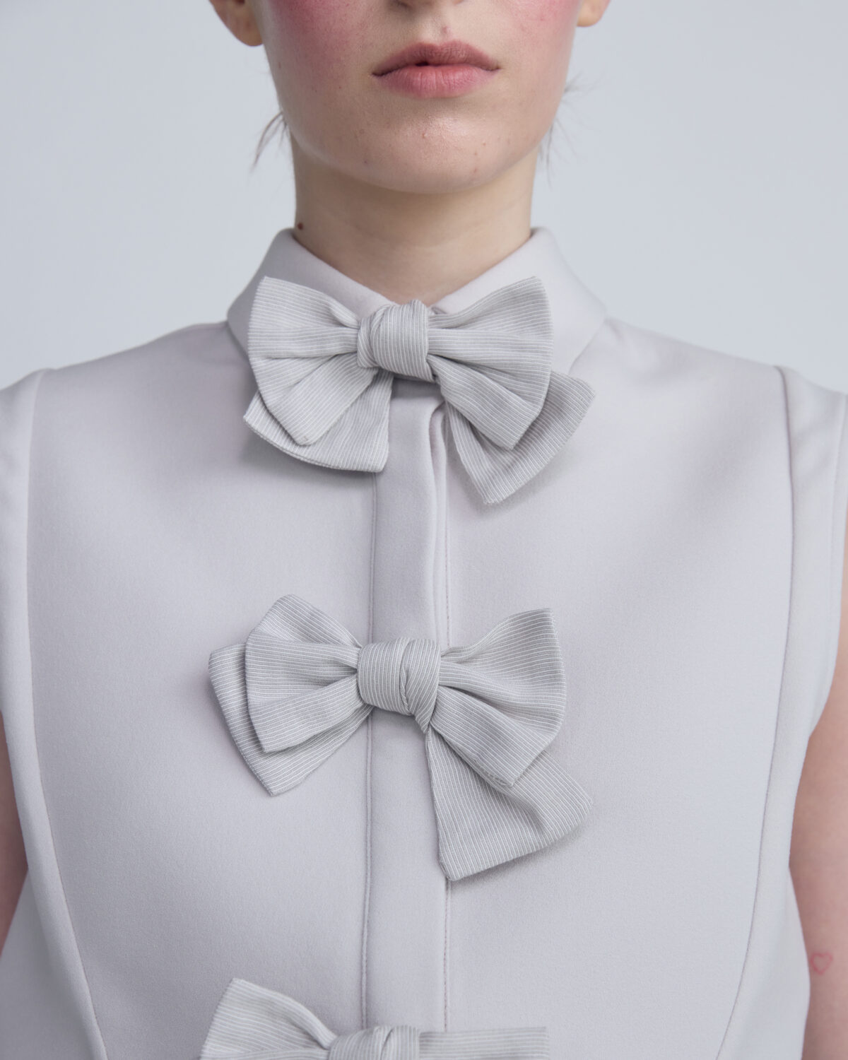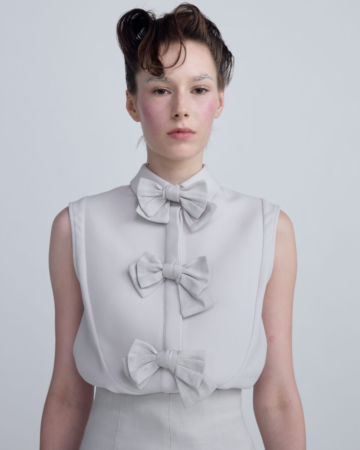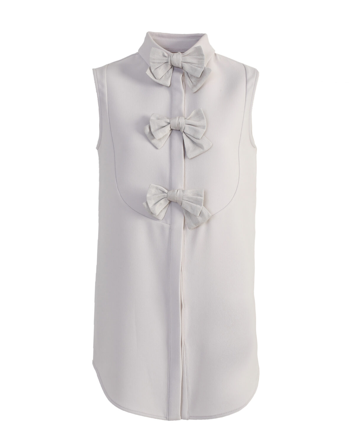 VICKTEERUT Tuxedo Bib Sleeveless Shirt with Bow Detail เสื้อเชิ้ต แขนกุด ตกแต่งโบว์