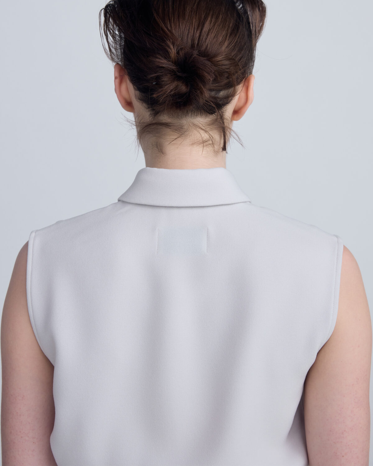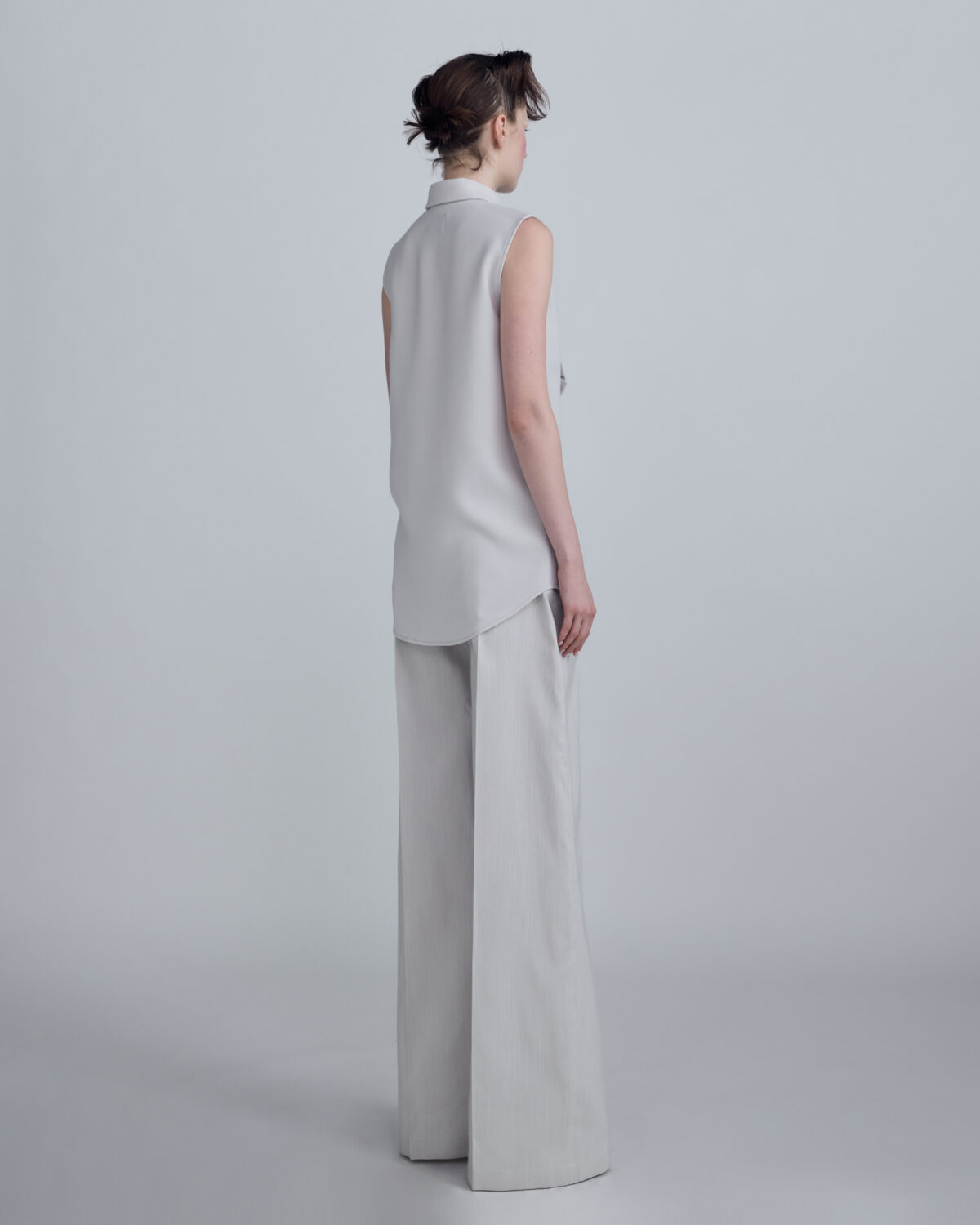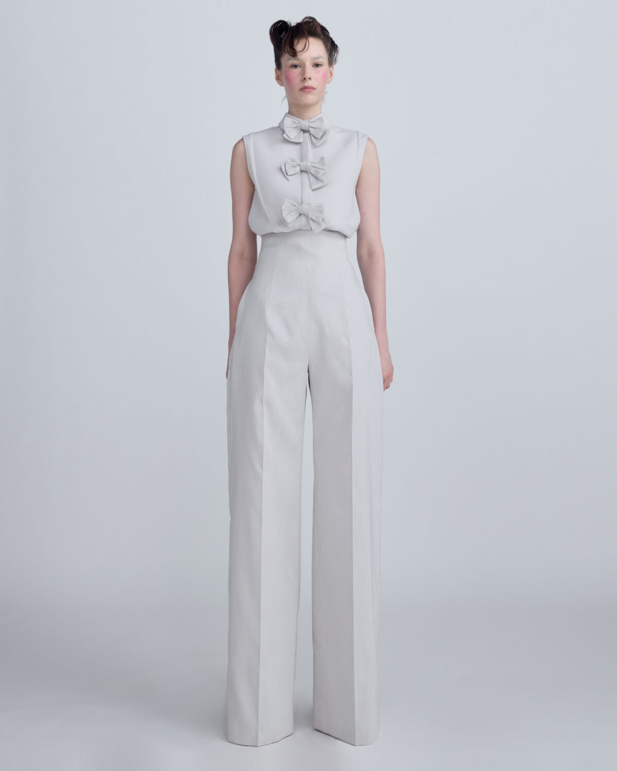 VICKTEERUT Tuxedo Bib Sleeveless Shirt with Bow Detail เสื้อเชิ้ต แขนกุด ตกแต่งโบว์