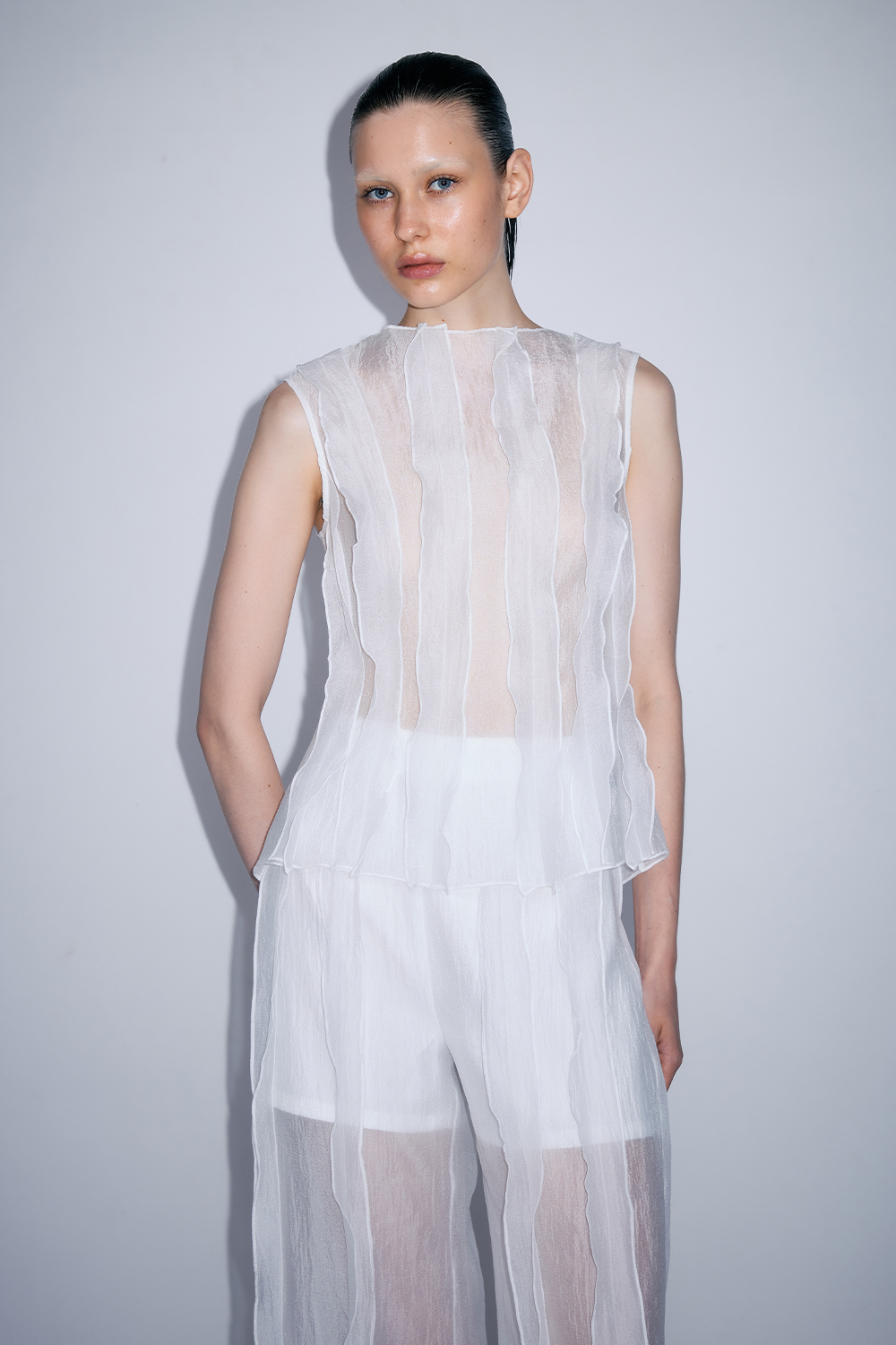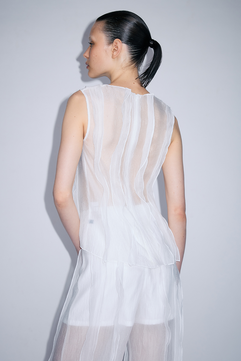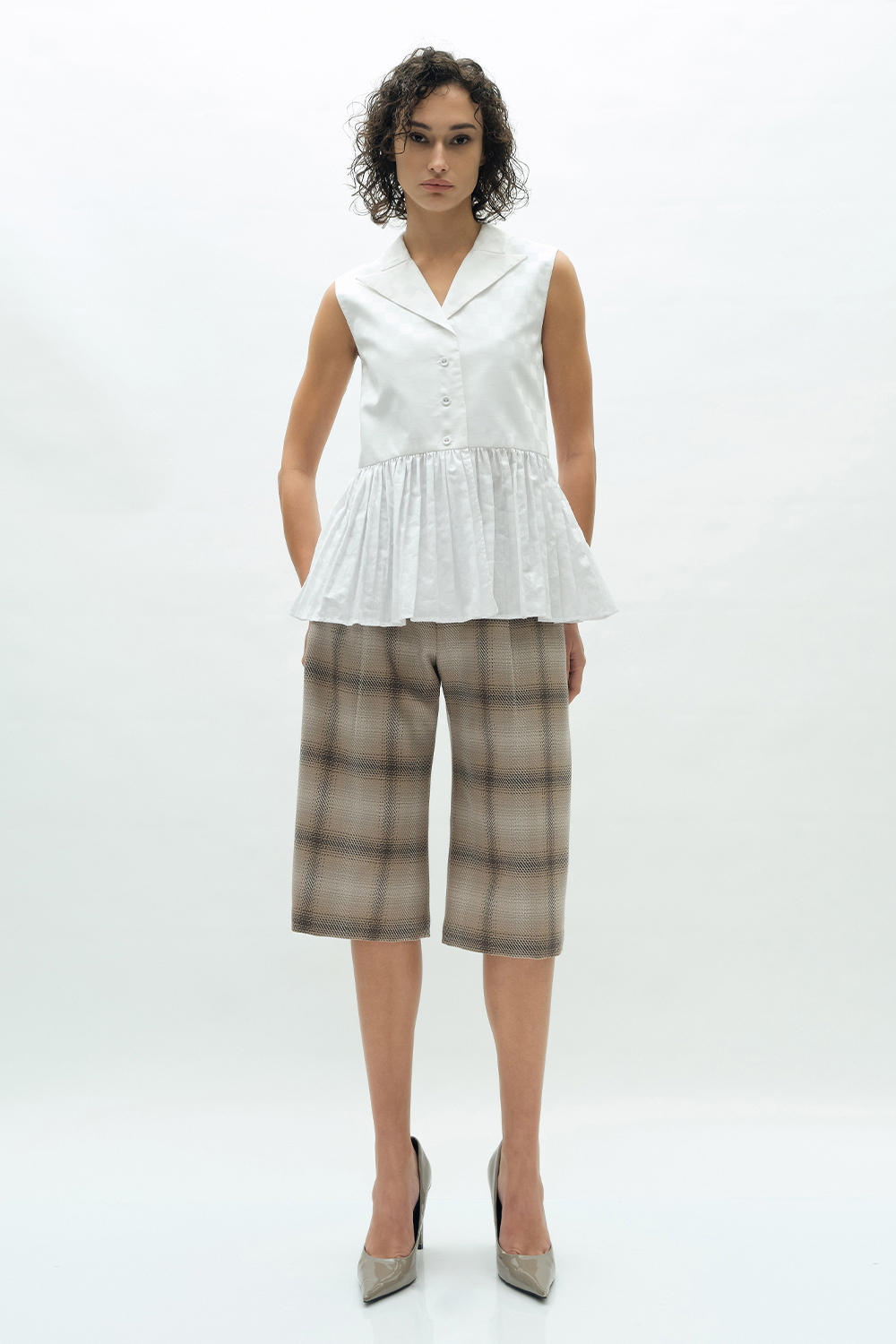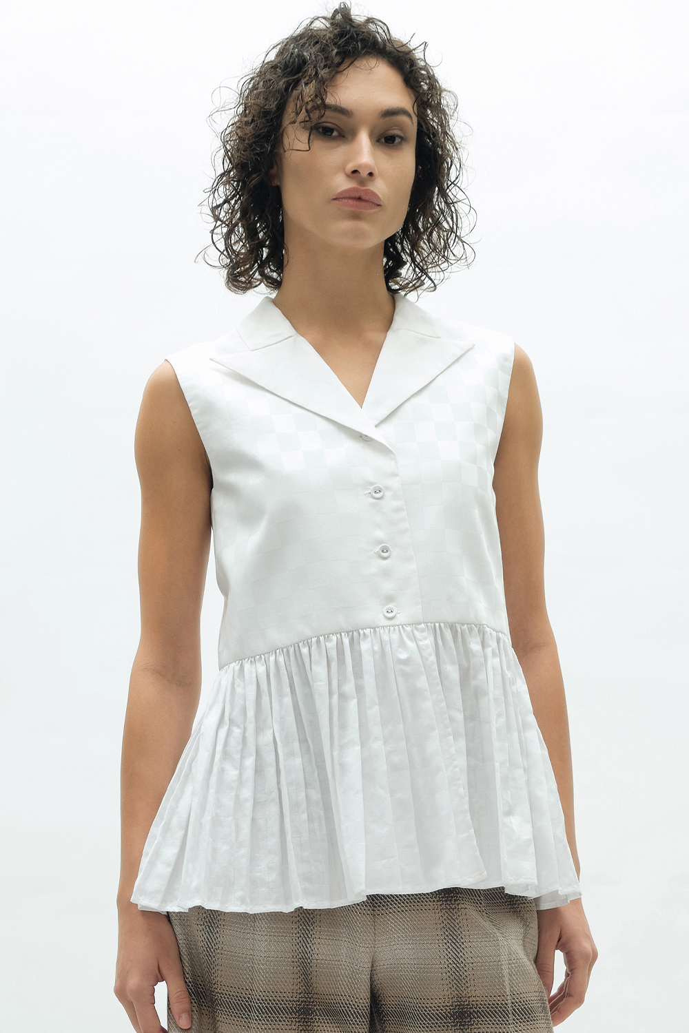 NEWVICKTEERUT Sleeveless Blouse with Suit Collar and Pleated Hem เสื้อแขนกุด ปกสูท ชายระบายอัดพลีท