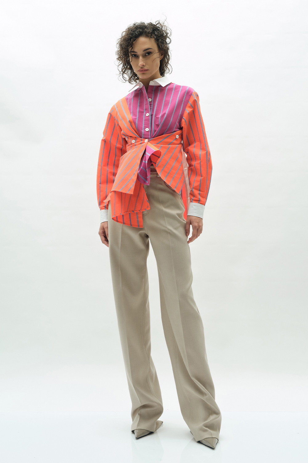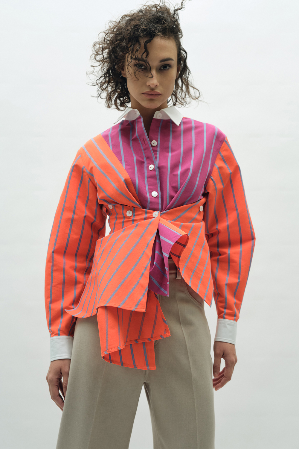 NEWVICKTEERUT Long Sleeve Deconstructed Stripe Shirt เสื้อเชิ้ต แขนยาว ลายทาง ดีคอนสตรัคชั่น