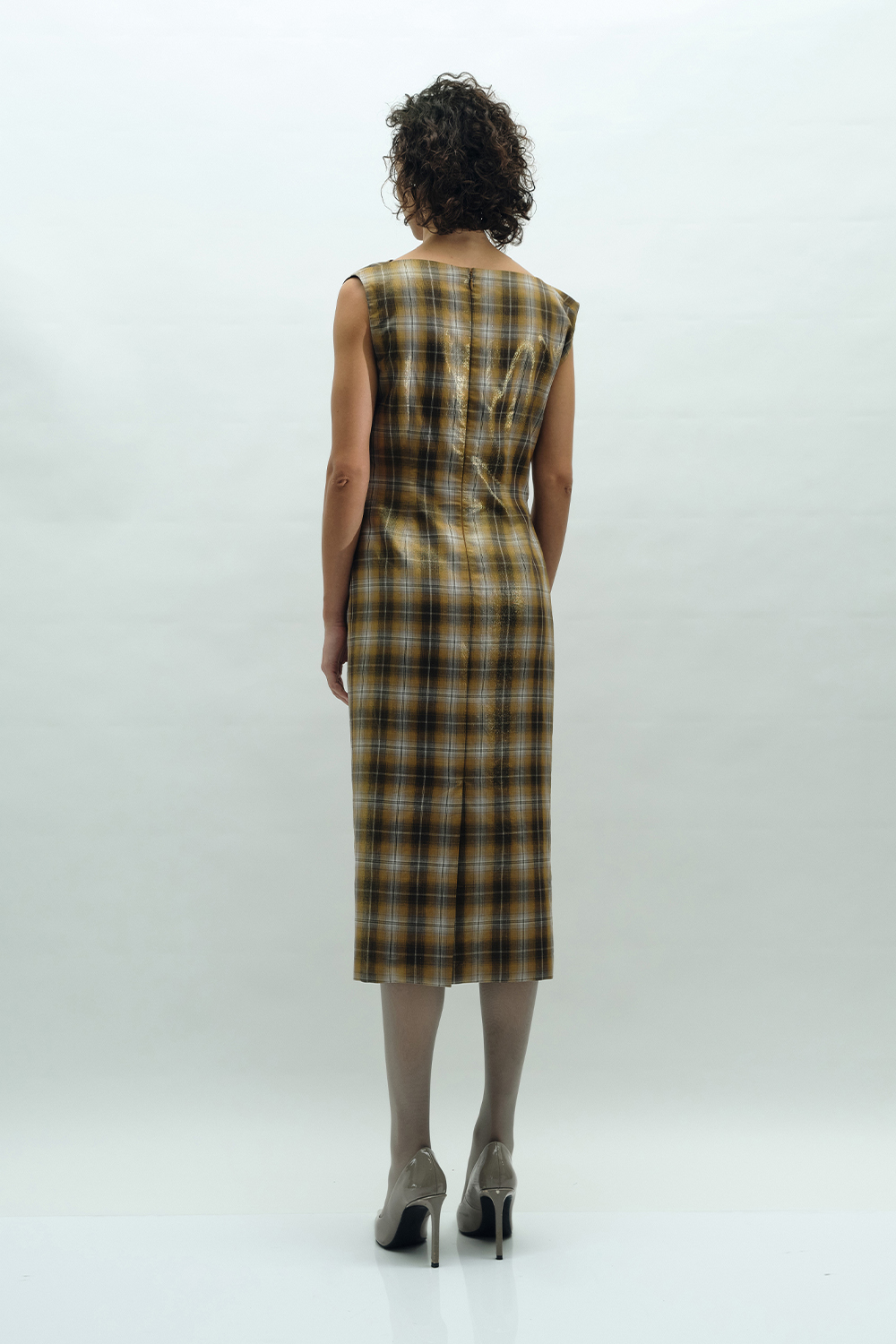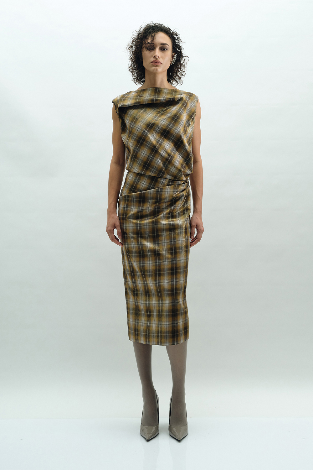 NEWVICKTEERUT Draped Plaid Sheath Dress เดรสแขนกุด จับเดรป ผ้าลายตาราง