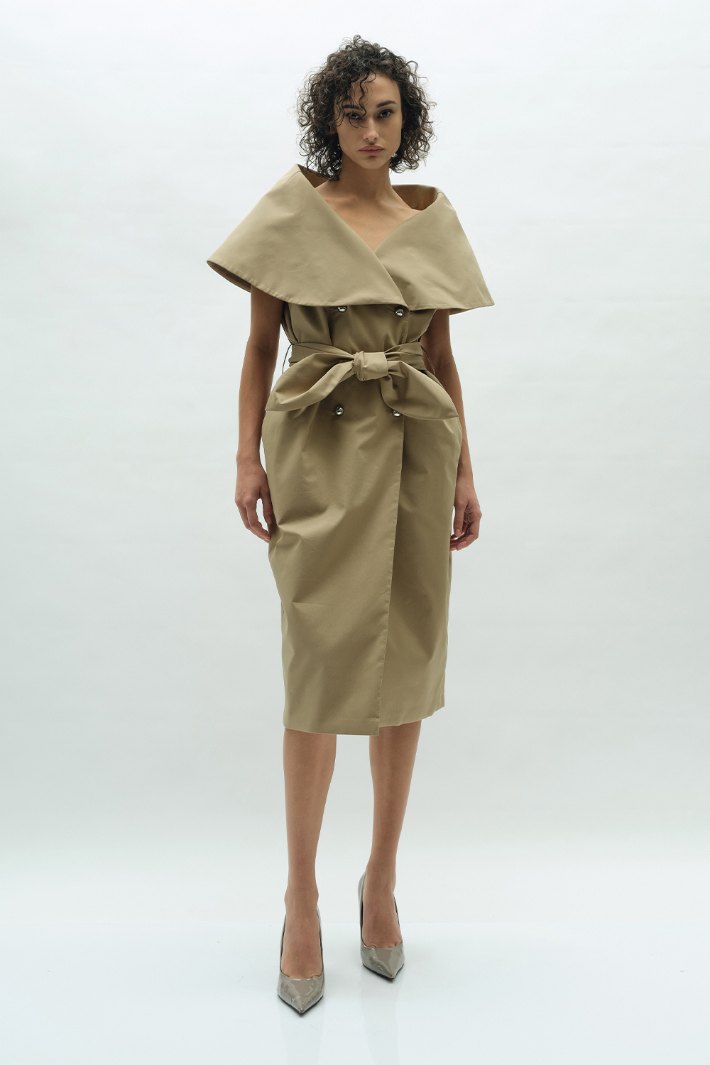 NEWVICKTEERUT Cape Collar Dress with Belt Detail เดรสปกเคป พร้อมเข็มขัด