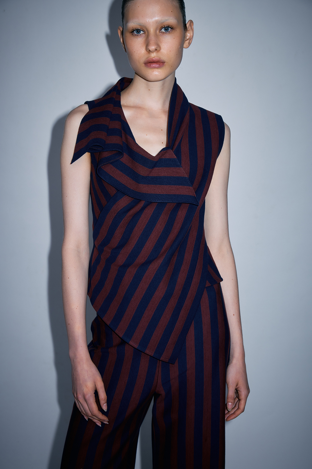 NEWVICKTEERUT Sleeveless Draped Striped Blouse เสื้อแขนกุด ลายทาง จับเดรป